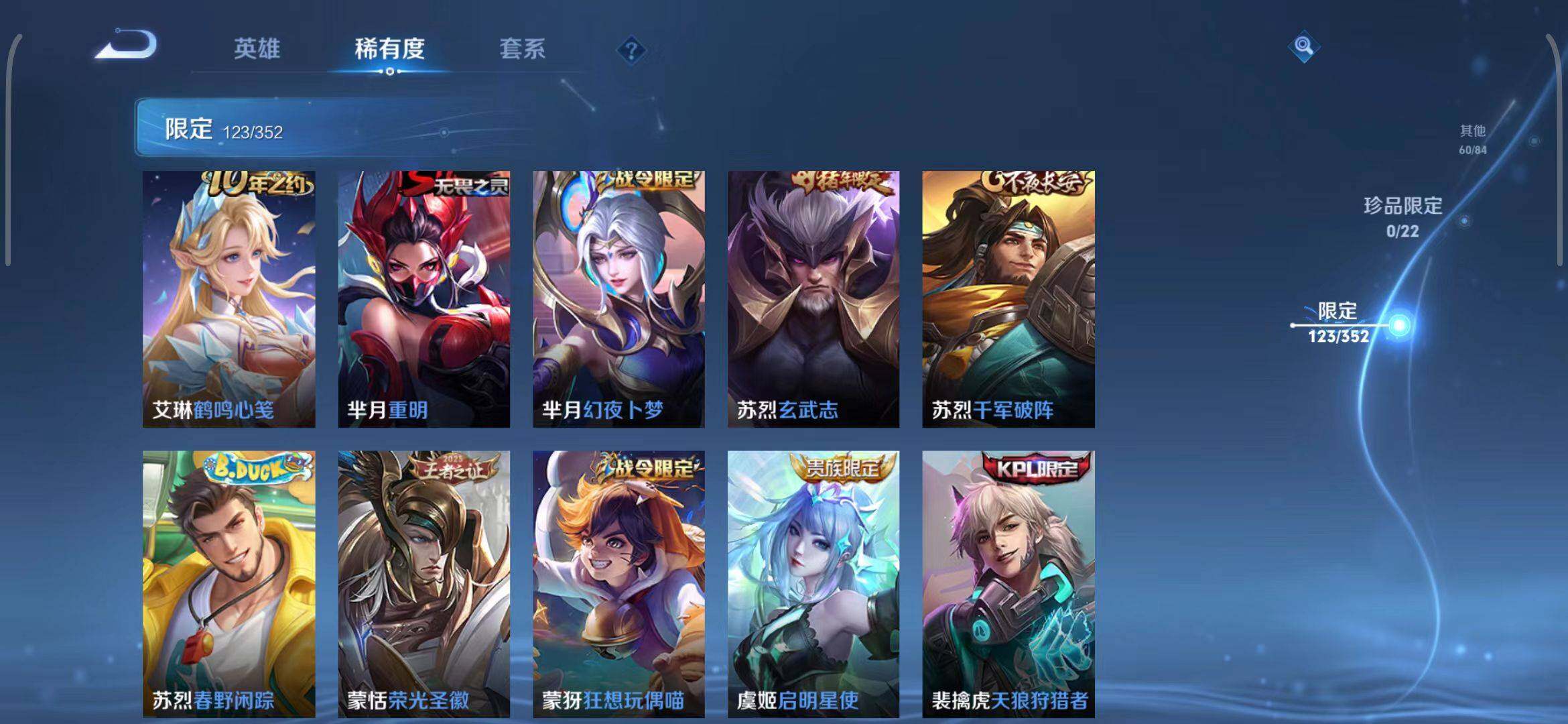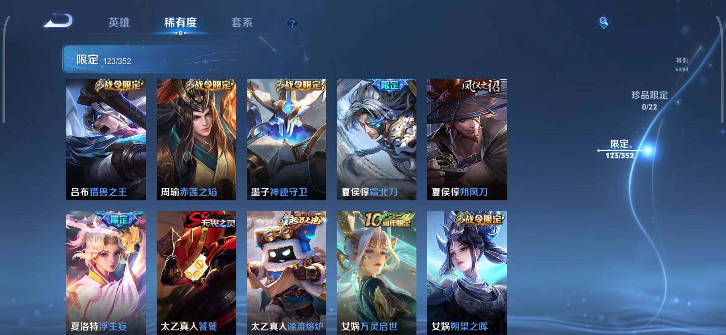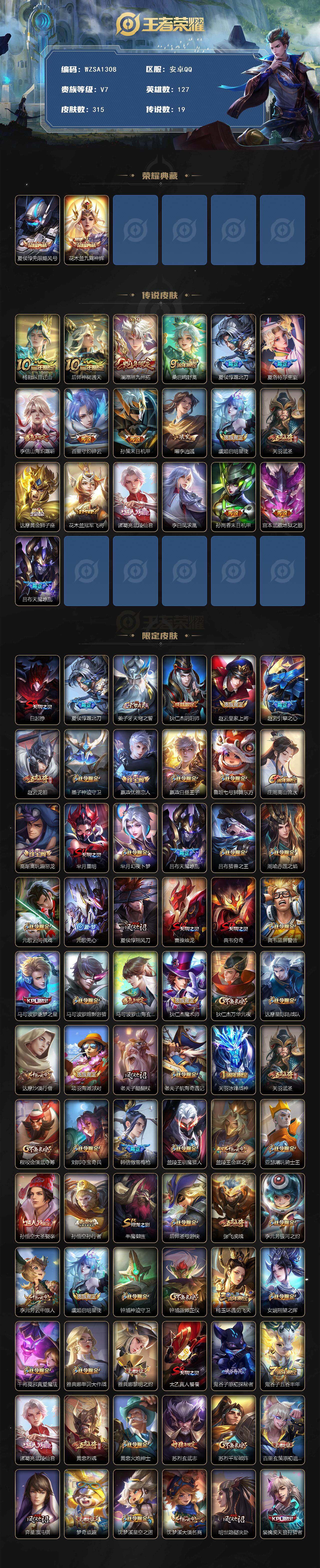 127英雄-315皮肤-【wzsa1308】贵族7/皮肤315/典藏2/传说19/史诗90/英雄127/达摩全皮/孙权全皮/钟馗全皮/苏烈全皮/金蝉全皮/空空儿全皮/夏侯惇-无限飓风号/花木兰-九霄神辉/杨戬纵目迁山/后羿神树通天/澜愿照九州拓/桑启鸣野蒿/夏侯惇霜北刀/夏洛特-浮生妄/李信-山海·炽霜斩/百里守约-碎云/孙策-末日机甲/曜-李/虞姬-启明星使/关羽-武圣/达摩-黄金狮子座/花木兰-冠军飞将/诸葛