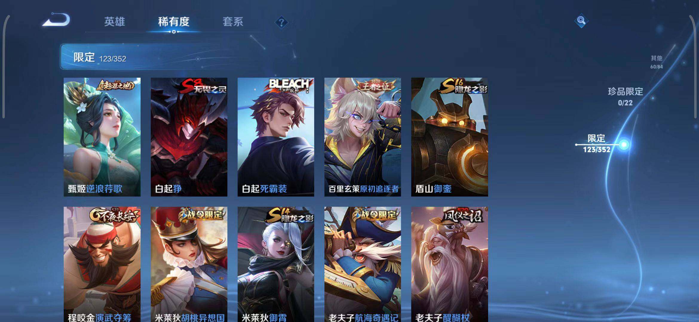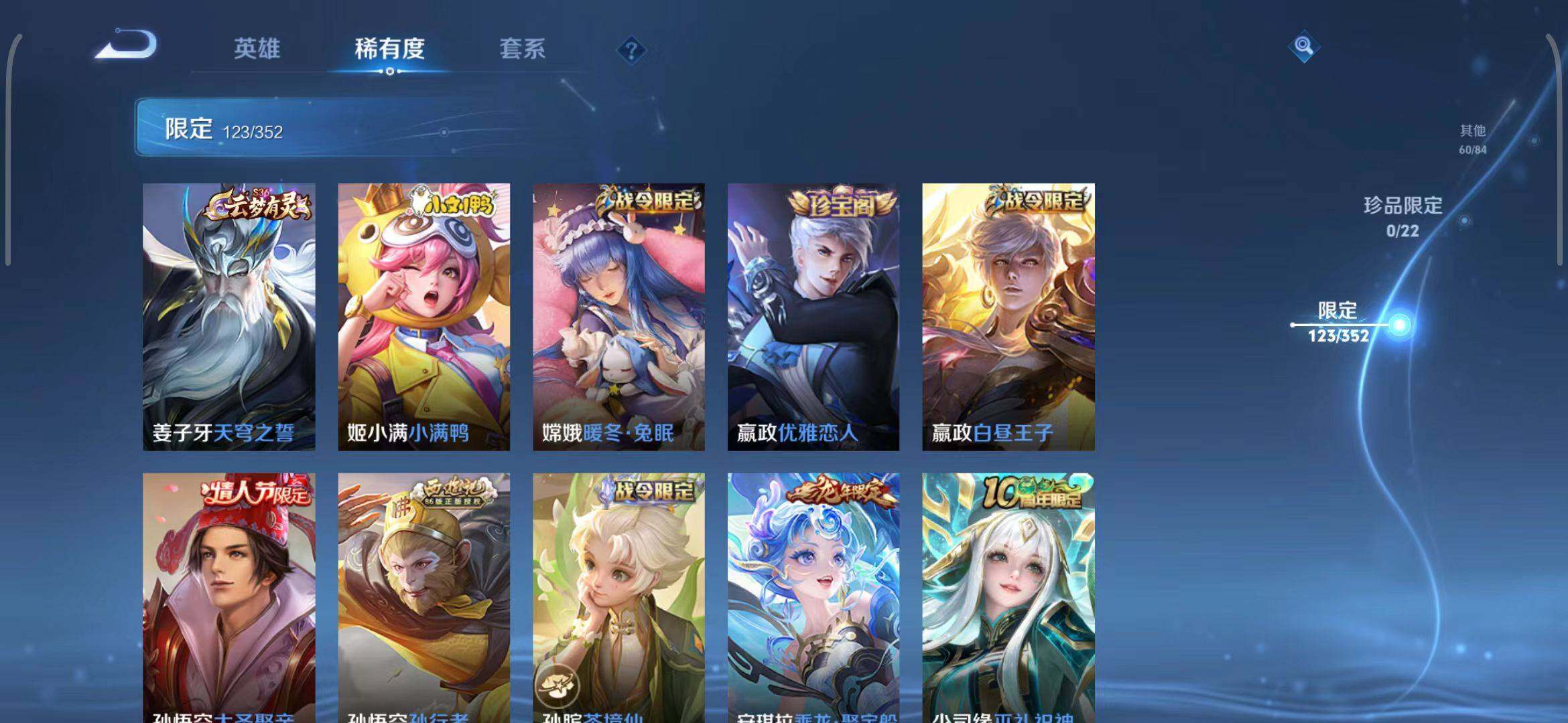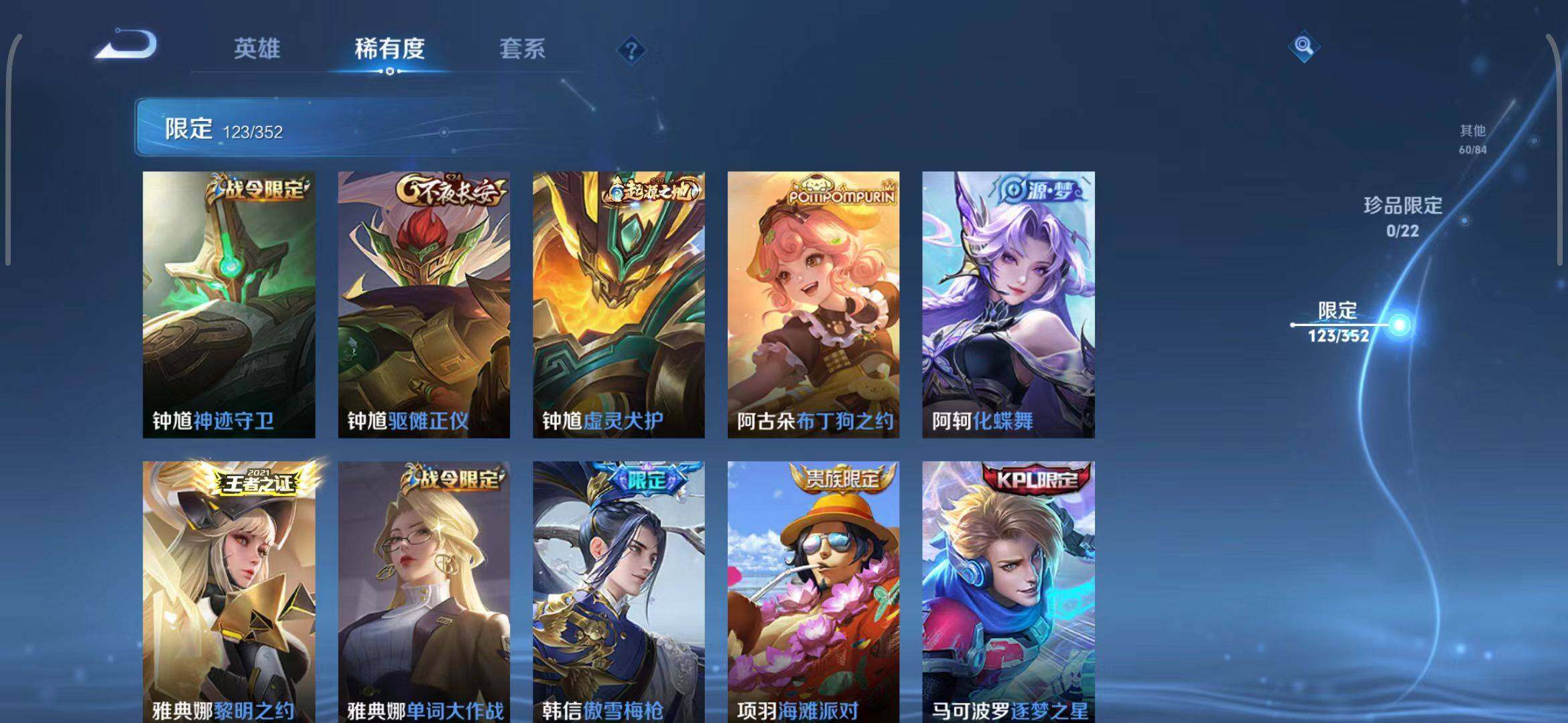 127英雄-315皮肤-【wzsa1308】贵族7/皮肤315/典藏2/传说19/史诗90/英雄127/达摩全皮/孙权全皮/钟馗全皮/苏烈全皮/金蝉全皮/空空儿全皮/夏侯惇-无限飓风号/花木兰-九霄神辉/杨戬纵目迁山/后羿神树通天/澜愿照九州拓/桑启鸣野蒿/夏侯惇霜北刀/夏洛特-浮生妄/李信-山海·炽霜斩/百里守约-碎云/孙策-末日机甲/曜-李/虞姬-启明星使/关羽-武圣/达摩-黄金狮子座/花木兰-冠军飞将/诸葛