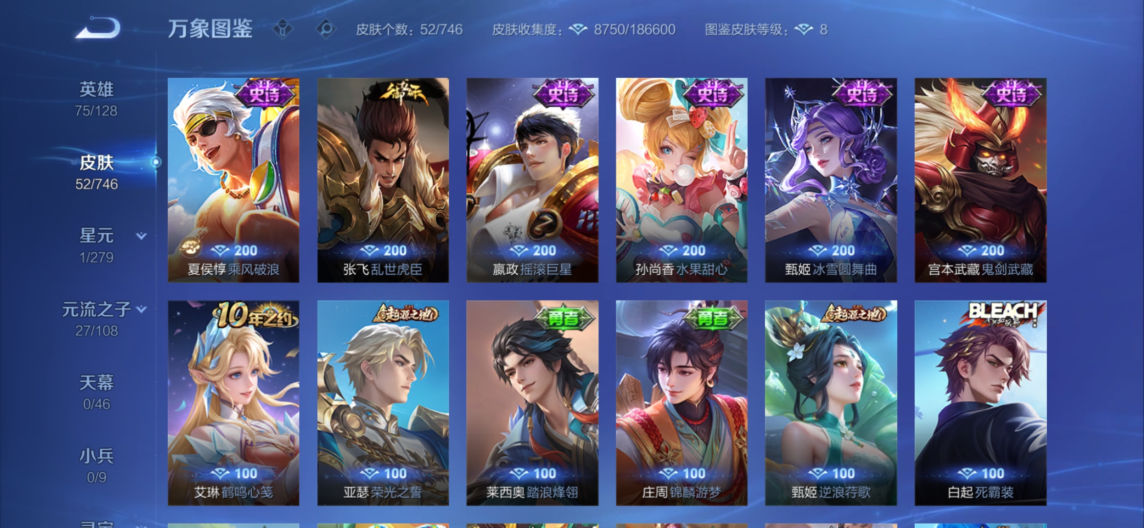 75英雄-52皮肤-【福利号拾光映像】安卓qq-75英雄-52皮肤【1水晶】 拾光映像【传说皮肤】 愿照·福禄聚 胖达荣荣 鸣野蒿【史诗皮肤】猫狗日记 鬼剑武藏 水果甜心 乘风破浪 缤纷独角兽 冰冠公主 摇滚巨星 遇见神鹿 乱世虎臣 冰雪圆舞曲【勇者皮肤】哥特玫瑰 乓乓大师 红桃皇后 虹云星官 天使之翼 海滩派对 爱心护理 玩偶对对碰 拳王 少女阿狸 阴阳师 营地id: