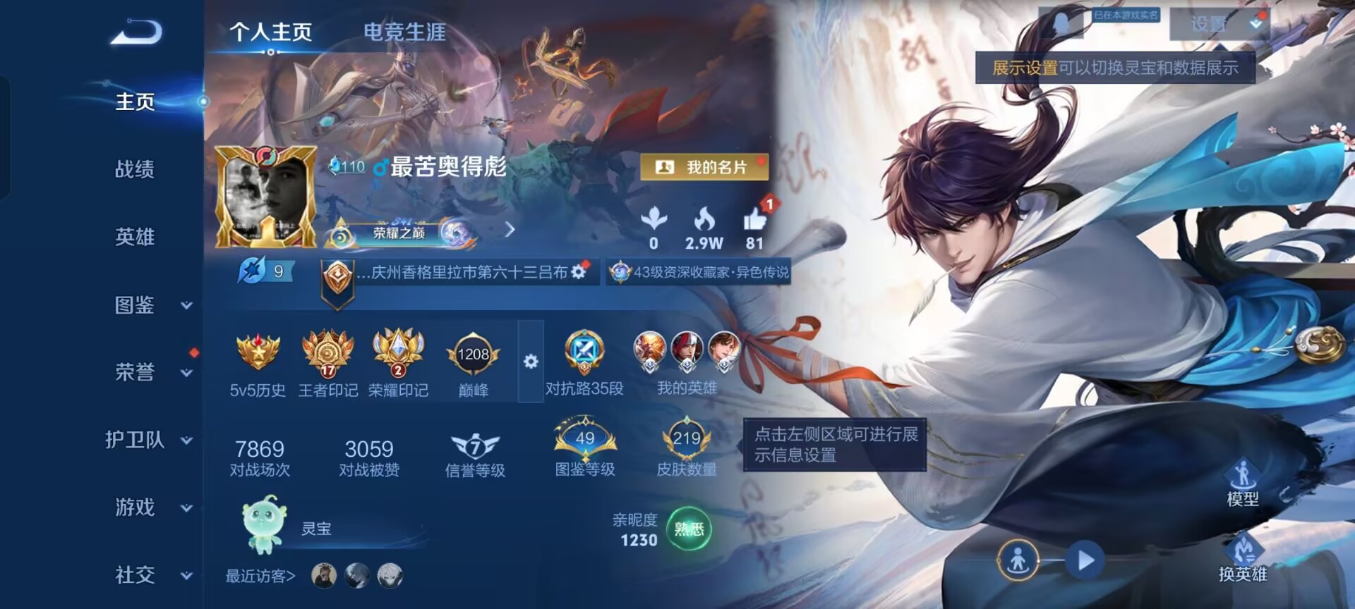 安卓qq/荣耀王者/222皮肤/124英雄/1典藏/0珍品无双/0无双/0珍品传说/6传说/64史诗/8稀有英雄【1 典藏皮肤】星域神启 诸葛亮【6 传说皮肤】云鹰飞将 曜诗剑行 李白末日机甲 孙策一念神魔 李信淬星耀世 赵云鸣野蒿 桑启【64 史诗皮肤】电玩小子 鲁班七号末日机甲 吕布高山流水 庄周妄想食味 姬小满心灵战警 亚瑟五谷丰年 鬼谷子无心