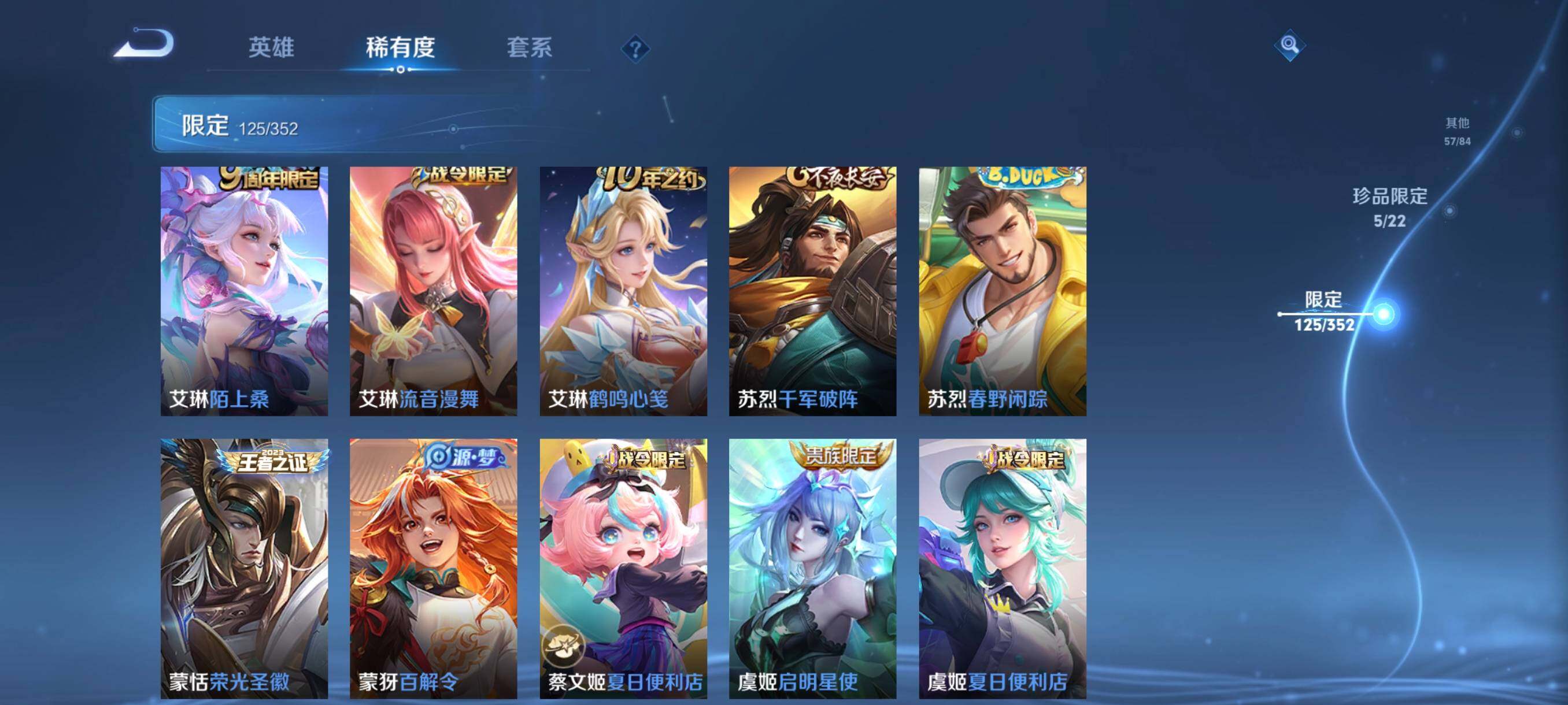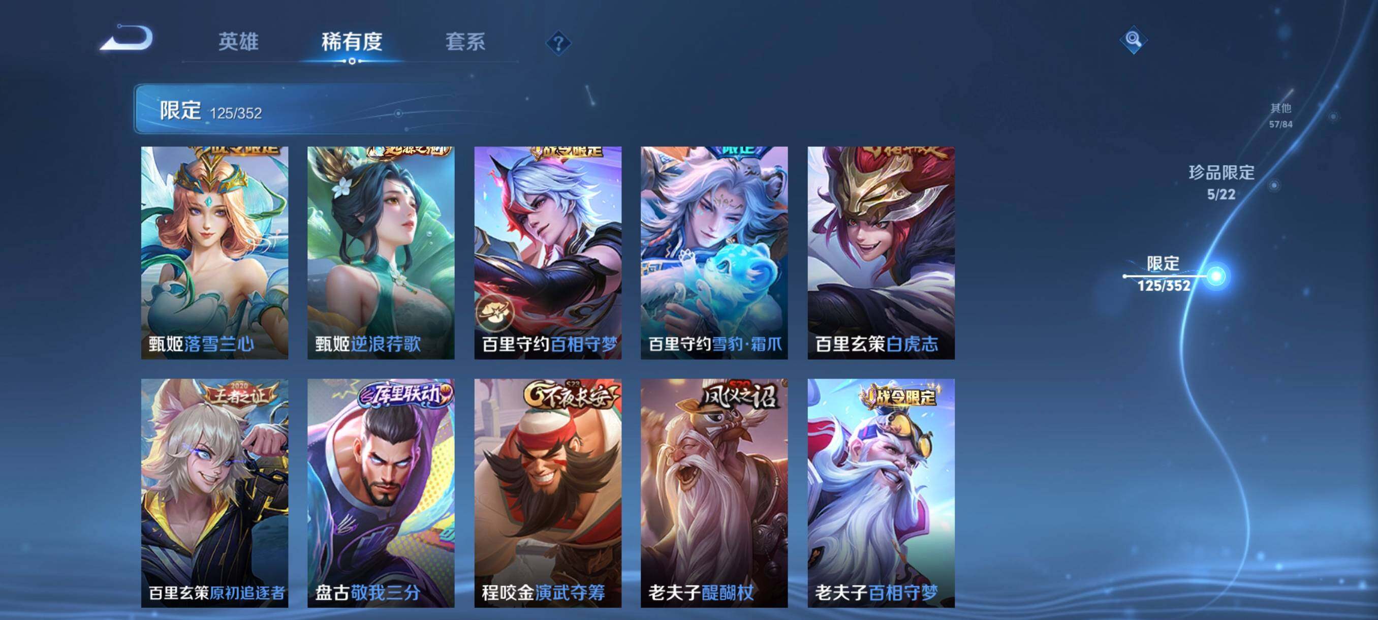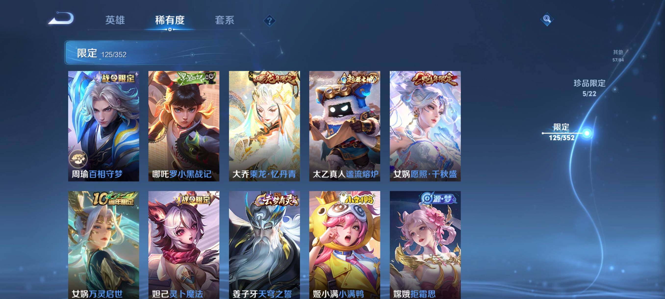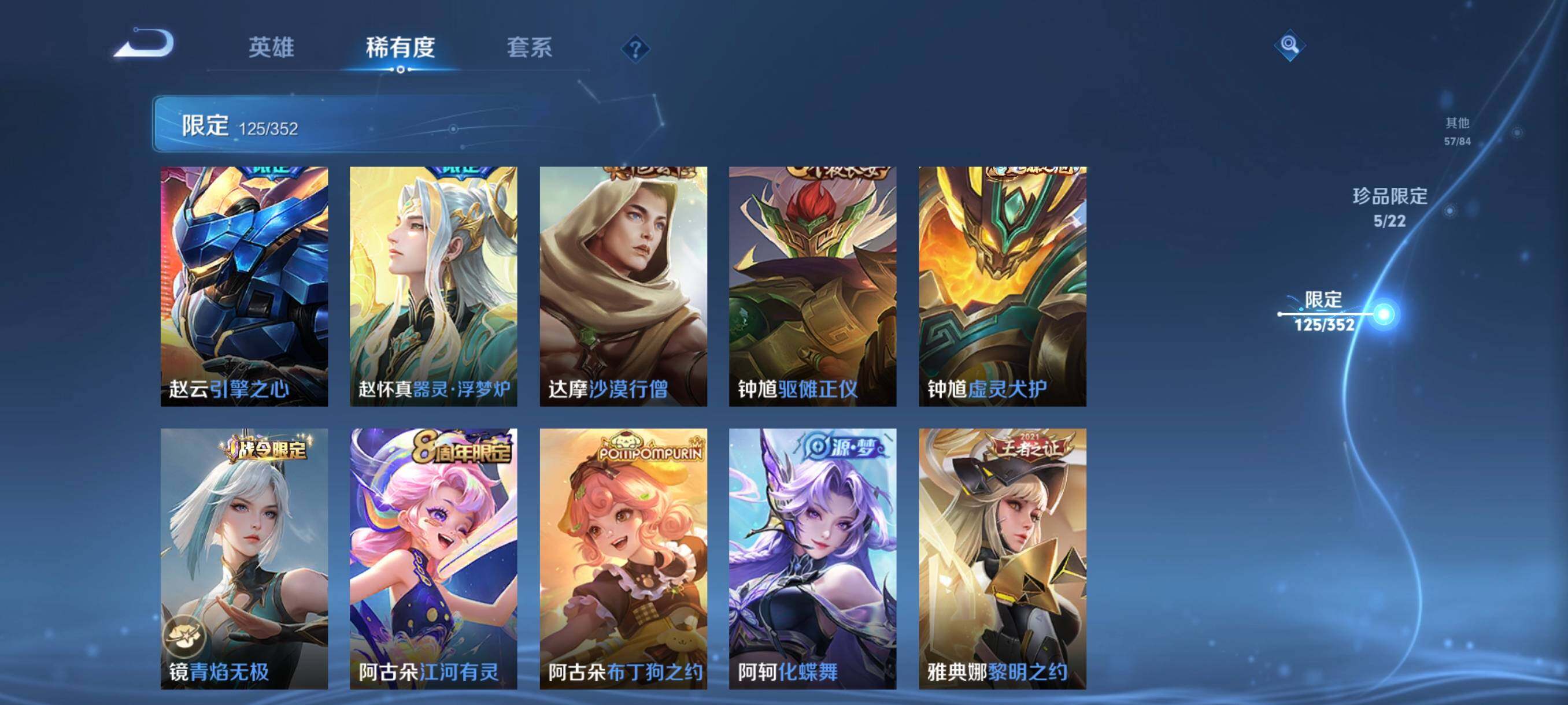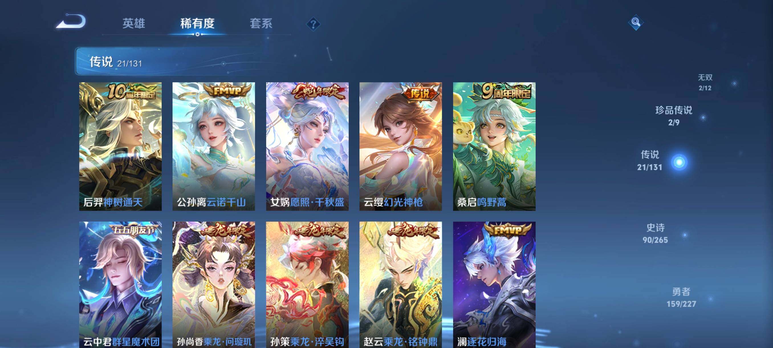 127英雄-334皮肤-账号亮点:34按键 孙悟空全息碎影,诸葛亮星域神启 貂蝉馥梦繁花 李白碎月剑心,韩信群星魔术团 马可波罗怪盗基德,鲁班七号江户川柯南 后羿神树通天,公孙离云诺千山,女娲愿照千秋盛,云缨幻光神呛,桑启鸣野蒿,云中君群星魔术团,孙尚香乘龙问璇玑,孙策乘龙淬吴钩,赵云乘龙铭钟鼎,澜逐花归海,诸葛亮鹤羽星尊,李信山海炽霜斩,马超无双飞将,曜李 ,镜炽阳神光,虞姬启明星使,李信一念神魔,干将莫邪久胜
