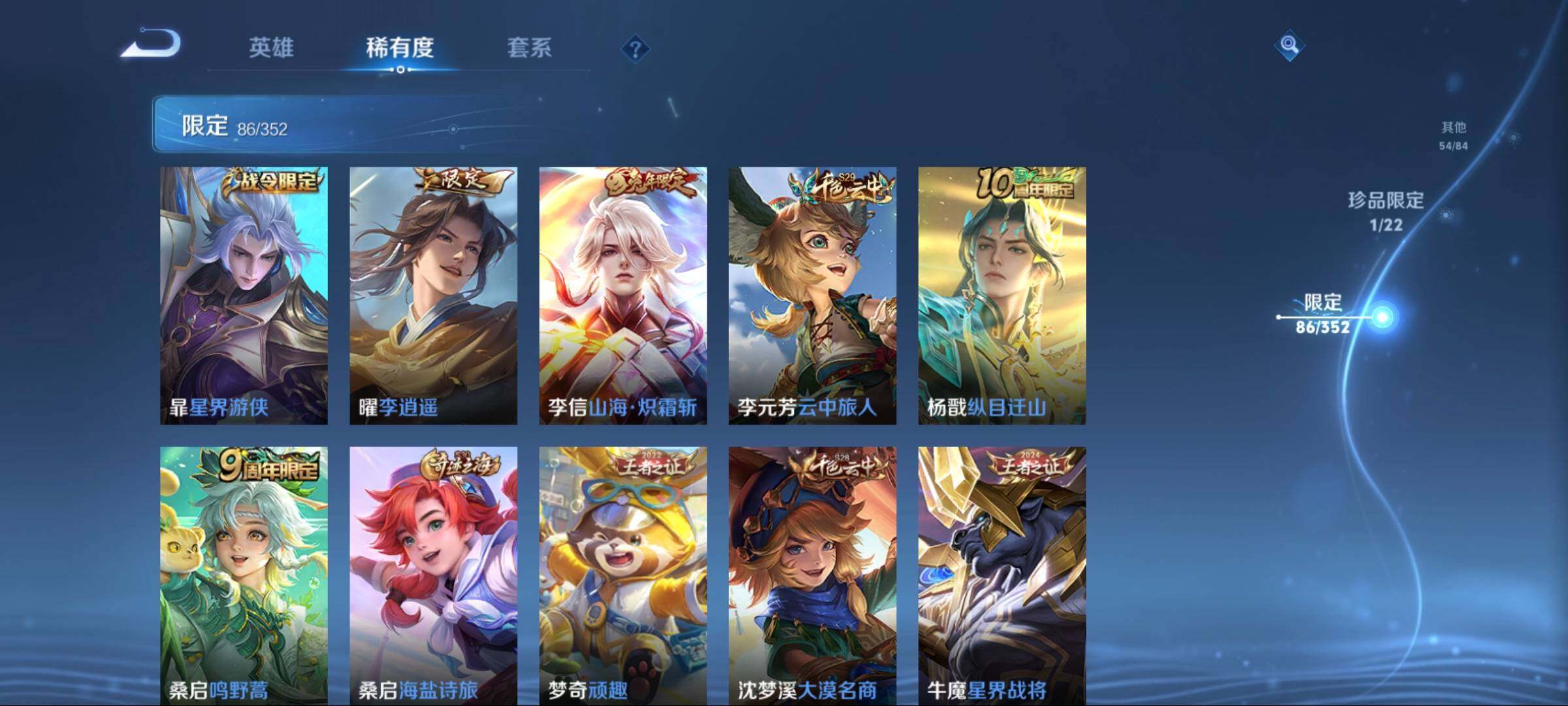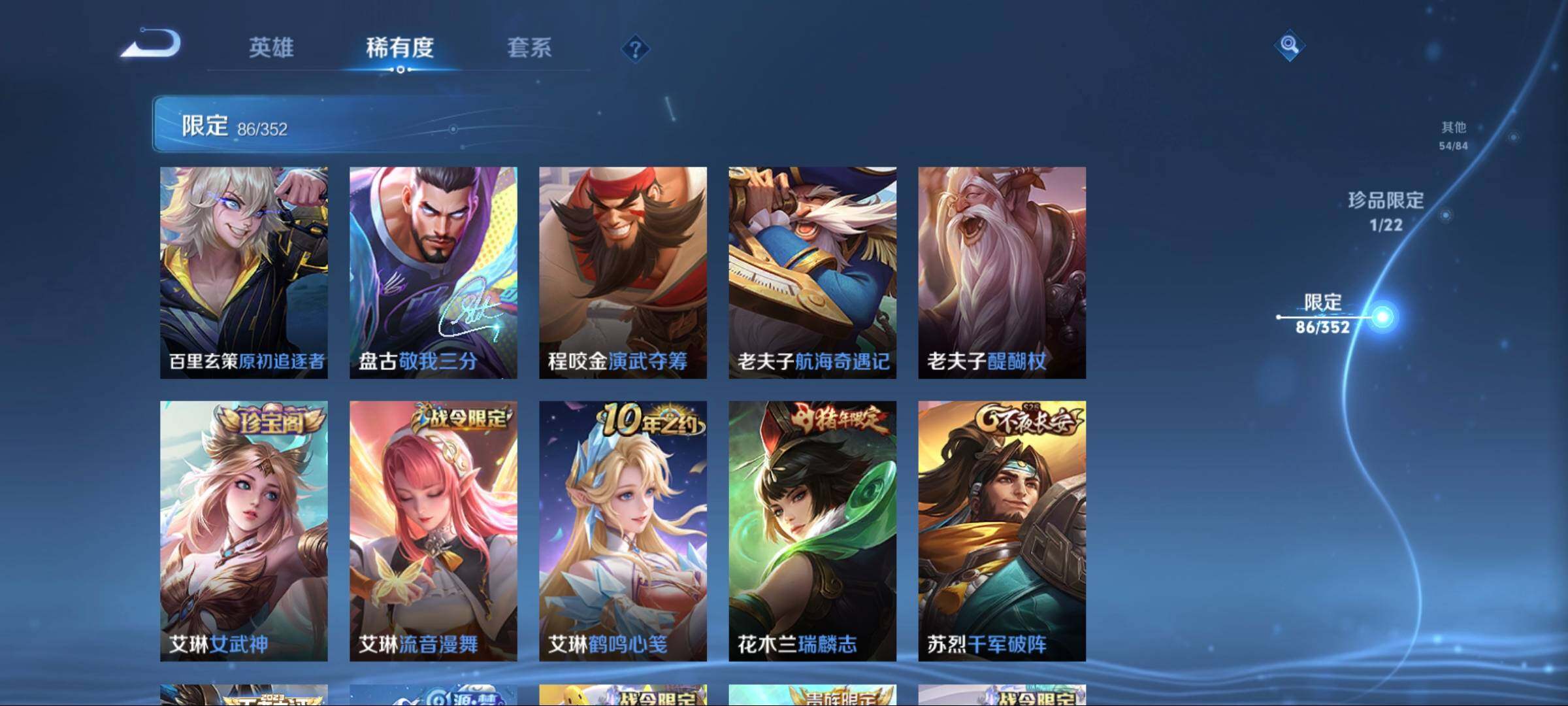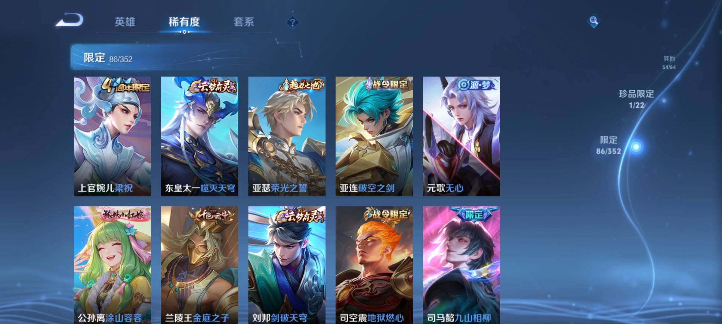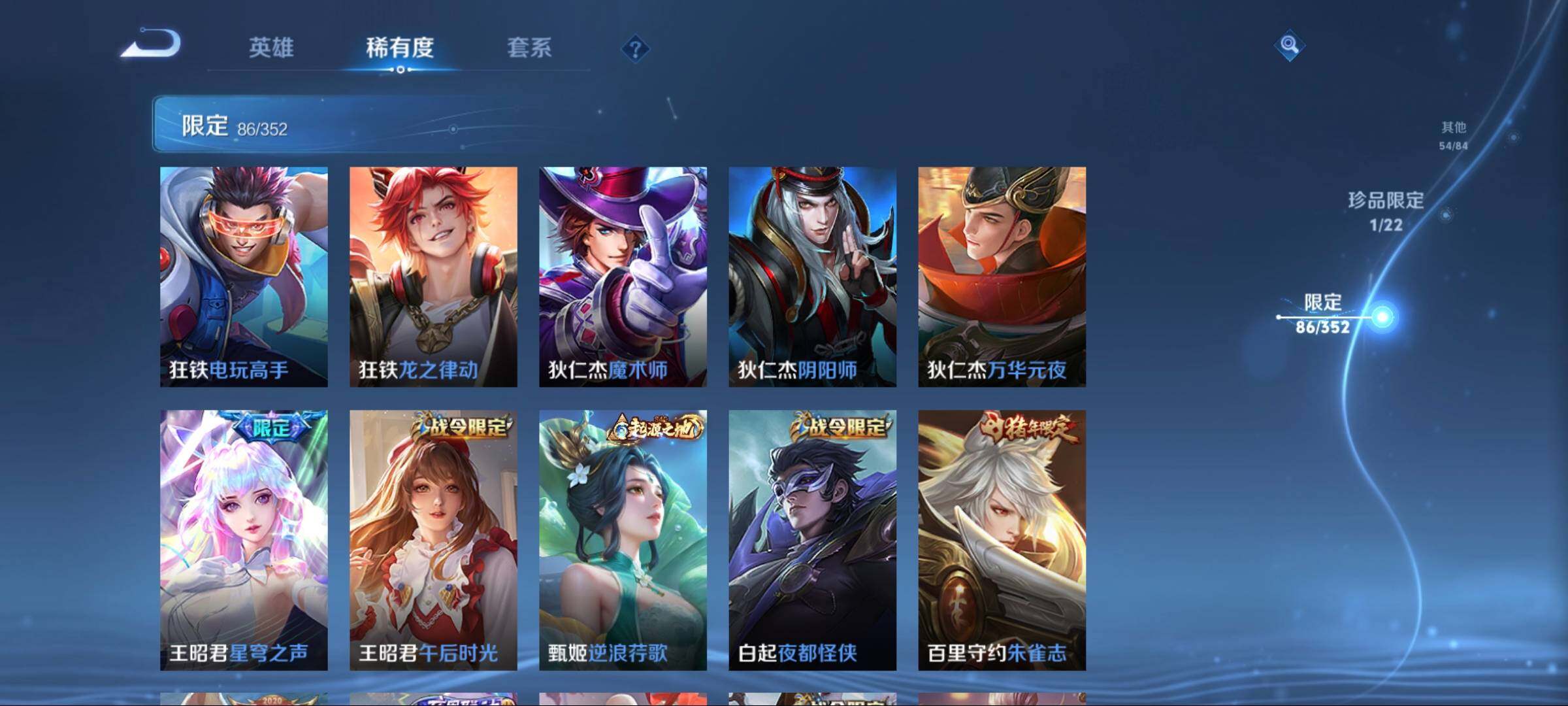 127英雄-257皮肤-账号亮点:连体号 韩信弑呛猎影 曜器灵螭龙剑 杨戬纵目迁山,后羿神树通天,司马懿九山相柳,桑启鸣野蒿,马超琥珀纪元,澜逐花归海,露娜霜月吟,李信山海炽霜斩,王昭君星穹之声,娜可露露前尘镜,孙尚香音你闪耀,马超无双飞将,孙尚香异界灵契,曜李 ,镜炽阳神光,虞姬启明星使,刘备时之恋人,貂蝉猫影幻舞,干将莫邪久胜战神,达摩黄金狮子座,孙尚香末日机甲,宫本武藏地狱之眼619-5 【英雄全皮】:蒙恬