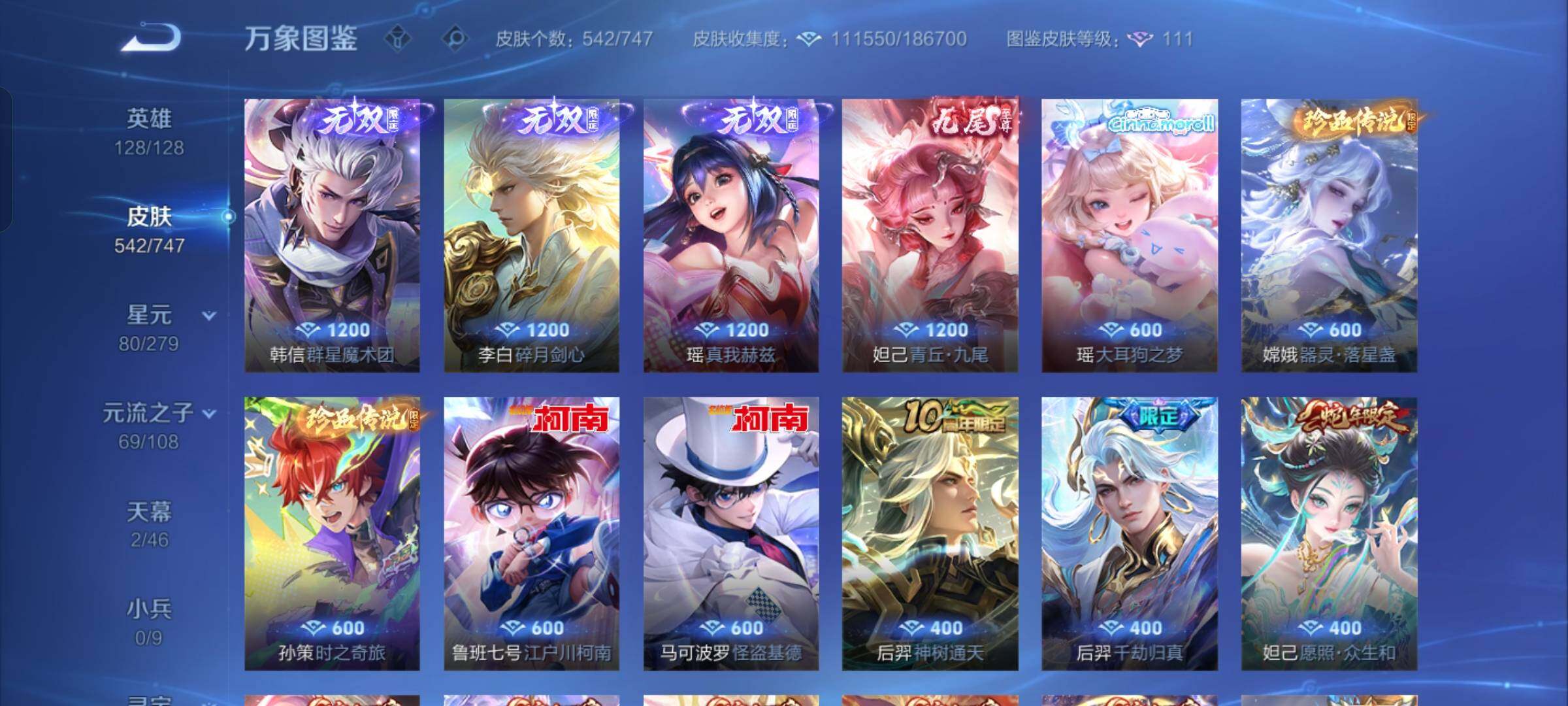 【店长推荐v10·11典藏·6无双·怪盗基德·江户川柯南·孙策时之奇旅·器灵落星盏·大耳狗之梦·蛇年全限定·虎年全限定·李白全皮·韩信全皮·玉鸾吟·紫瑶·48段发育·1.1w金标百里守约·春日相逢天幕·可二次】w7723-安卓q-128英雄-542皮肤-30王者印记-300铭文-贵族积分35w【贵族10】【11典藏·6无双·5珍品传说·7星传说·62传说·2天幕·14按键·98个性戳戳·2