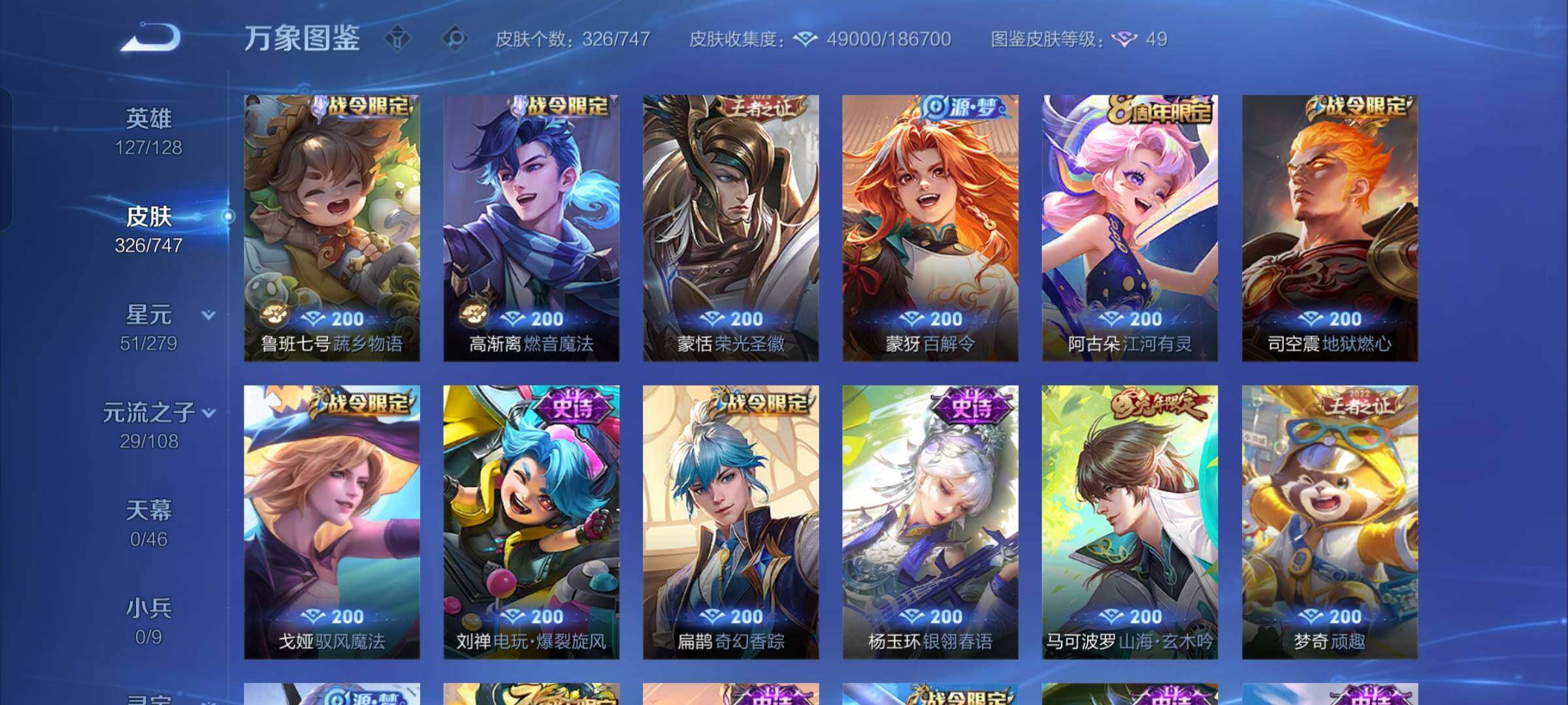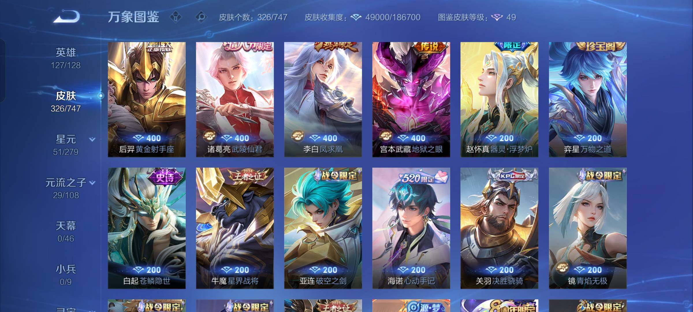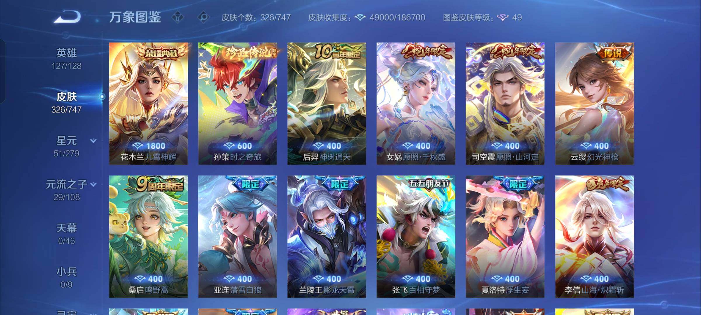 【店长推荐·九霄神辉·孙策时之奇旅·愿照山河定·愿照千秋盛·白虎志·落雪白狼·影龙天霄·山海炽霜斩·枫霜尽·兰陵王默契交锋·一念神魔·云鹰飞将·怒海麟威·飞衡·神威·烈魂,山海玄木吟·可二次】w7725-安卓q-127英雄-326皮肤-18王者印记-300铭文-贵族积分8w【贵族8】【1典藏·1珍品传说·1星传说·26传说·11按键】【因赛季更新游戏段付以上号为准!】 【英雄全皮】:橘右京