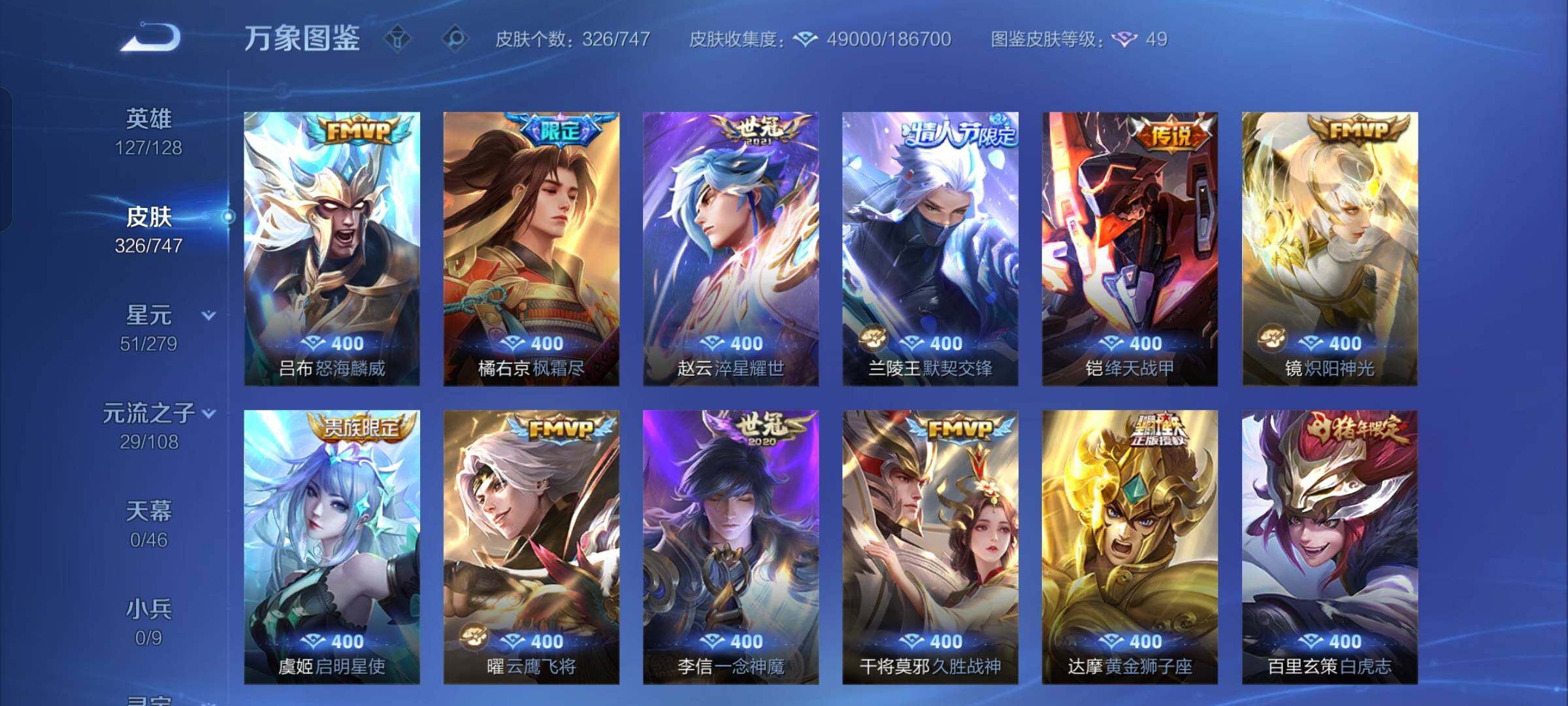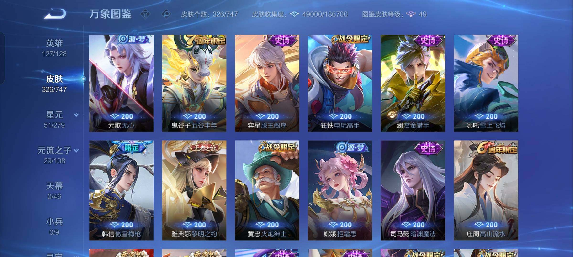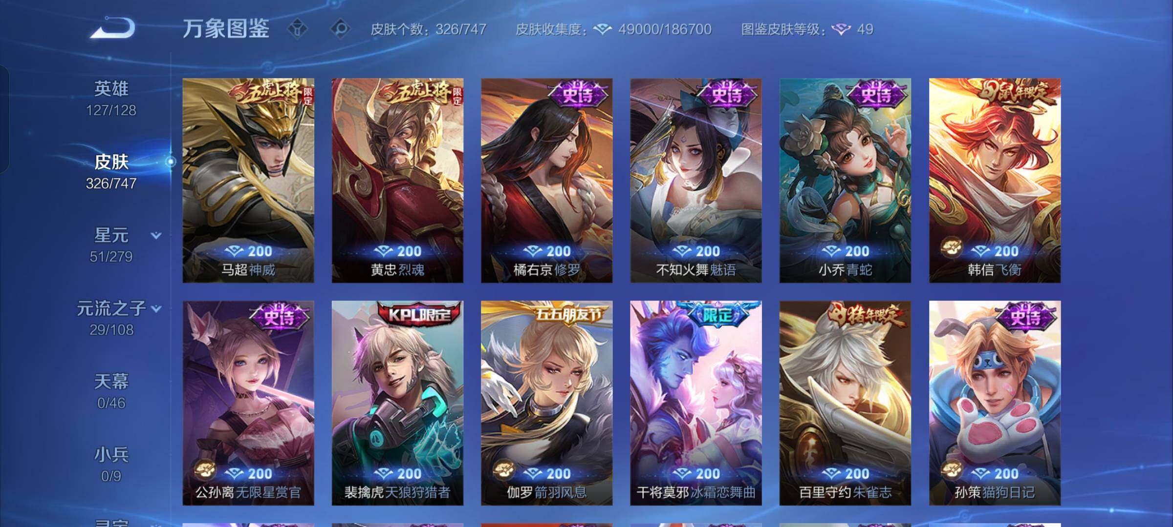 【店长推荐·九霄神辉·孙策时之奇旅·愿照山河定·愿照千秋盛·白虎志·落雪白狼·影龙天霄·山海炽霜斩·枫霜尽·兰陵王默契交锋·一念神魔·云鹰飞将·怒海麟威·飞衡·神威·烈魂,山海玄木吟·可二次】w7725-安卓q-127英雄-326皮肤-18王者印记-300铭文-贵族积分8w【贵族8】【1典藏·1珍品传说·1星传说·26传说·11按键】【因赛季更新游戏段付以上号为准!】 【英雄全皮】:橘右京