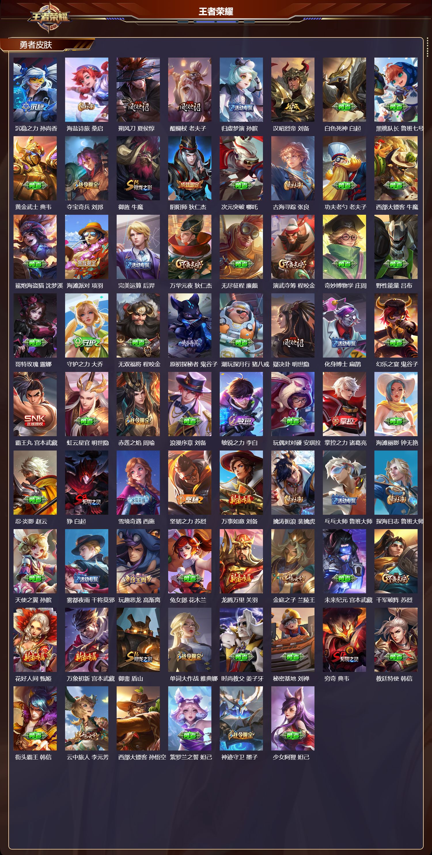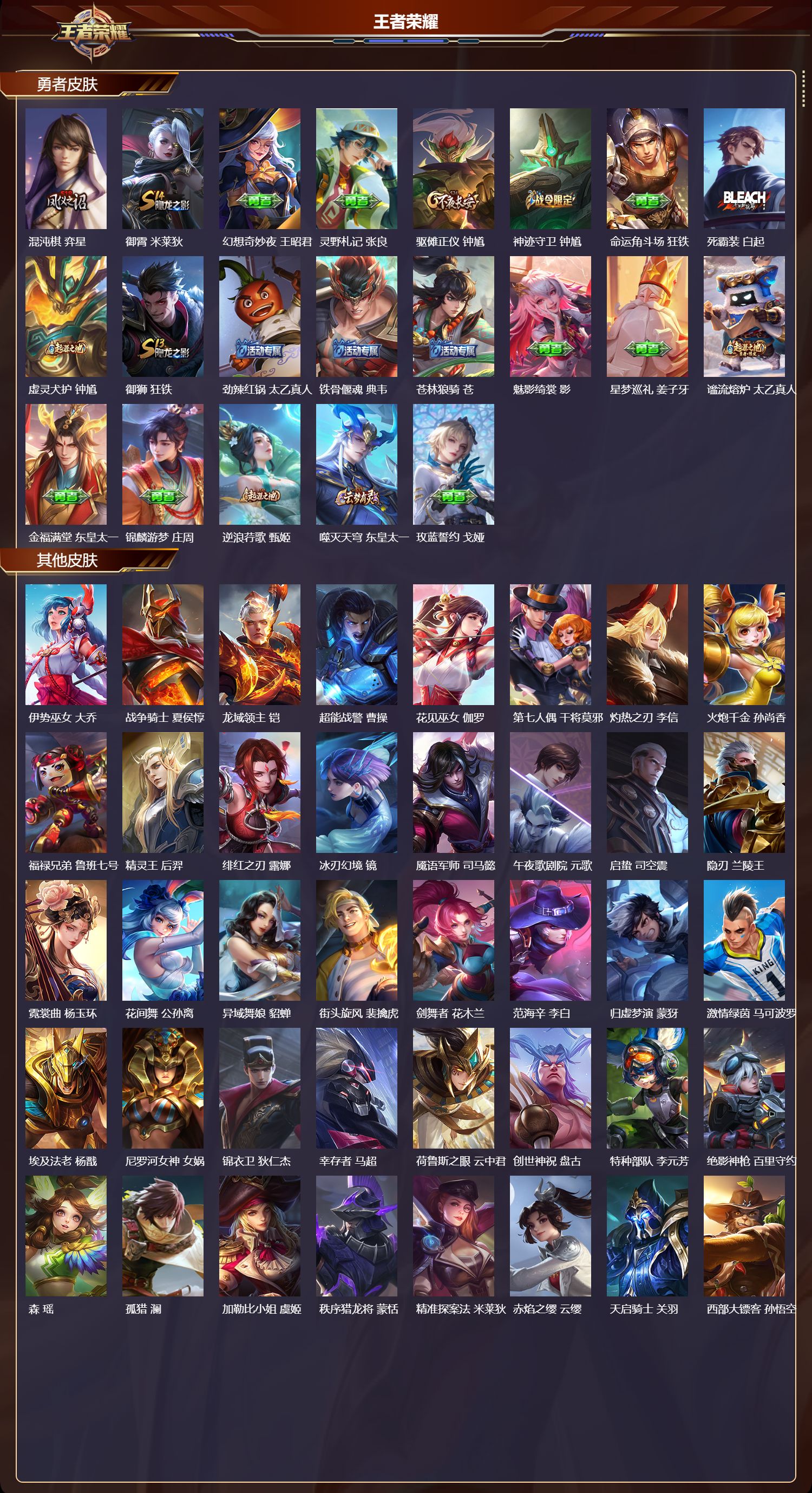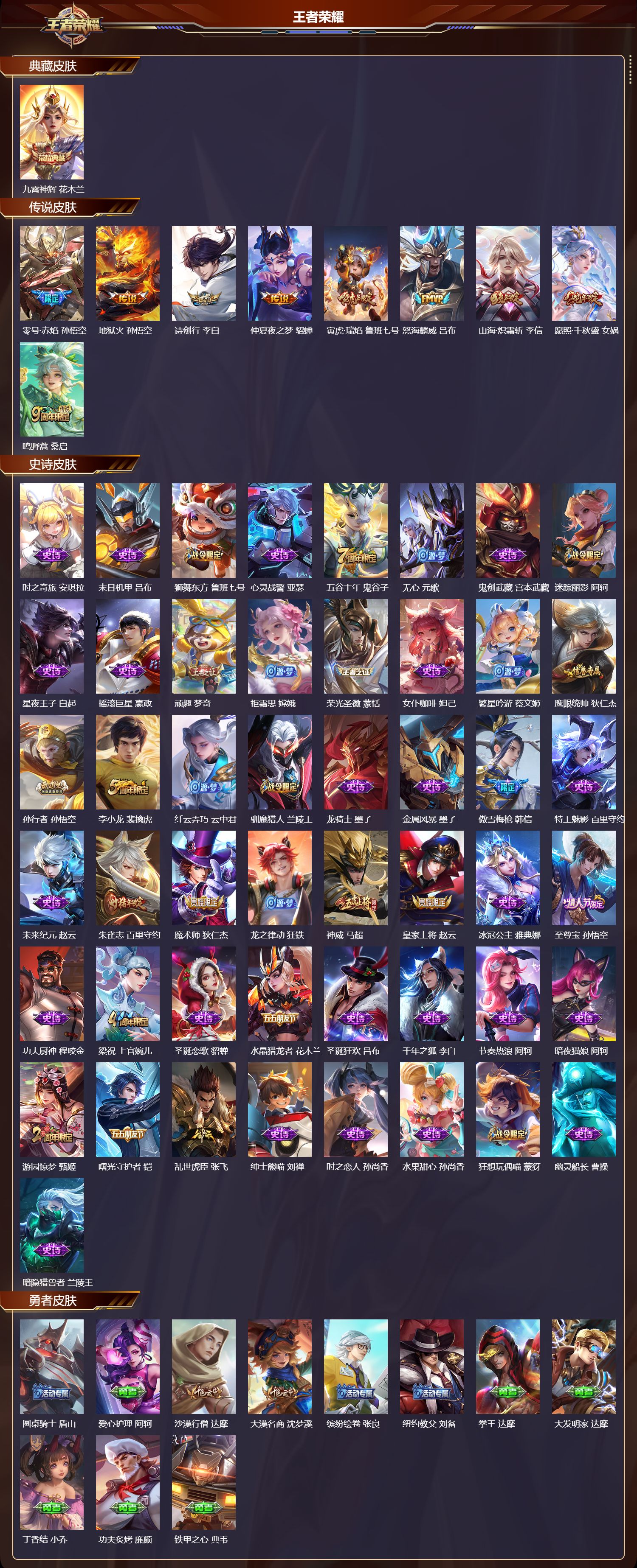 苹果qq/永恒钻石/200皮肤/123英雄/1典藏/0珍品无双/0无双/0珍品传说/9传说/49史诗/7稀有英雄【1 典藏皮肤】九霄神辉 花木兰【9 传说皮肤】零号·赤焰 孙悟空地狱火 孙悟空诗剑行 李白仲夏夜之梦 貂蝉寅虎·瑞焰 鲁班七号怒海麟威 吕布山海·炽霜斩 李信愿照·千秋盛 女娲鸣野蒿 桑启【49 史诗皮肤】时之奇旅 安琪拉末日机甲 吕布狮舞东