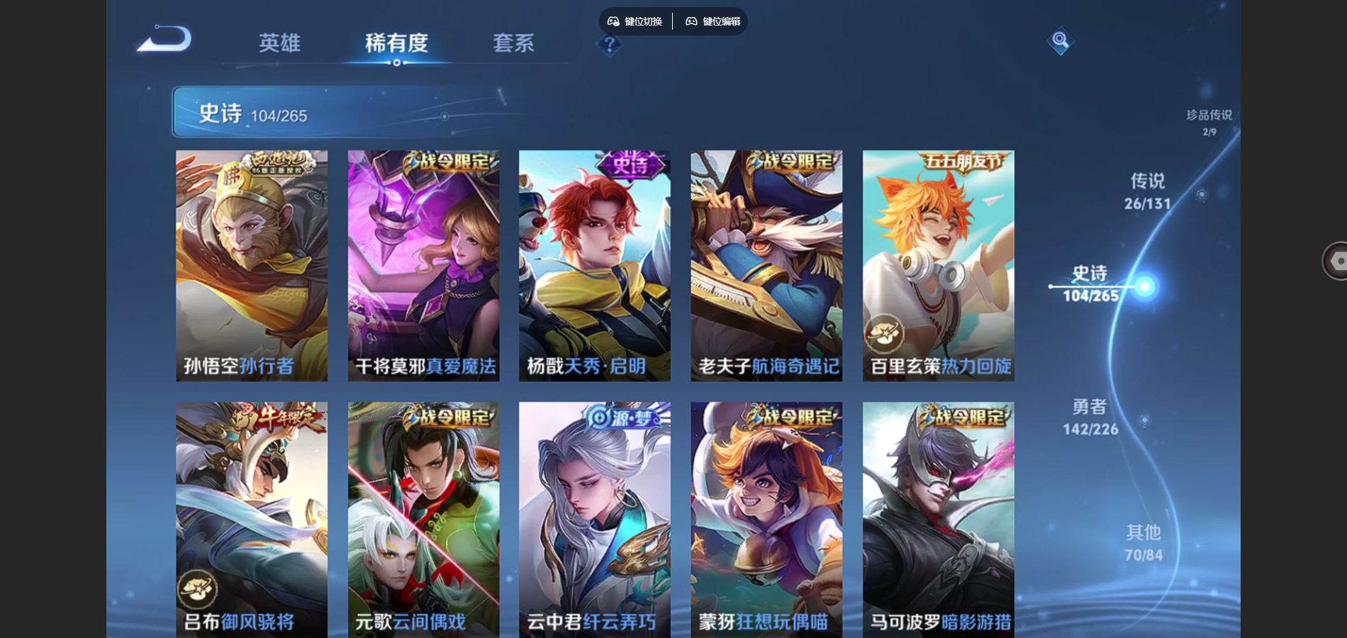2258931-v8-348皮肤4典藏2珍品传说26传说 对抗路30段 金标猪八戒 3星传说 无限倾慕 玉鸾吟 幽冥之眼【全皮英雄】 李信全皮 夏洛特全皮 猪八戒全皮 影全皮 【典藏】 拾光映像 天鹅之梦 九霄神辉 银白咏叹调 【珍品传说】 时之奇旅孙策 怪盗基德 【传说】 凤求凰 星之鸣奏 幻光神呛 愿照九州拓 鸣野蒿 白虎志 启明星使 时雨天司 祈雪灵祝 山海苍雷引 山海琳琅生 山海炽霜