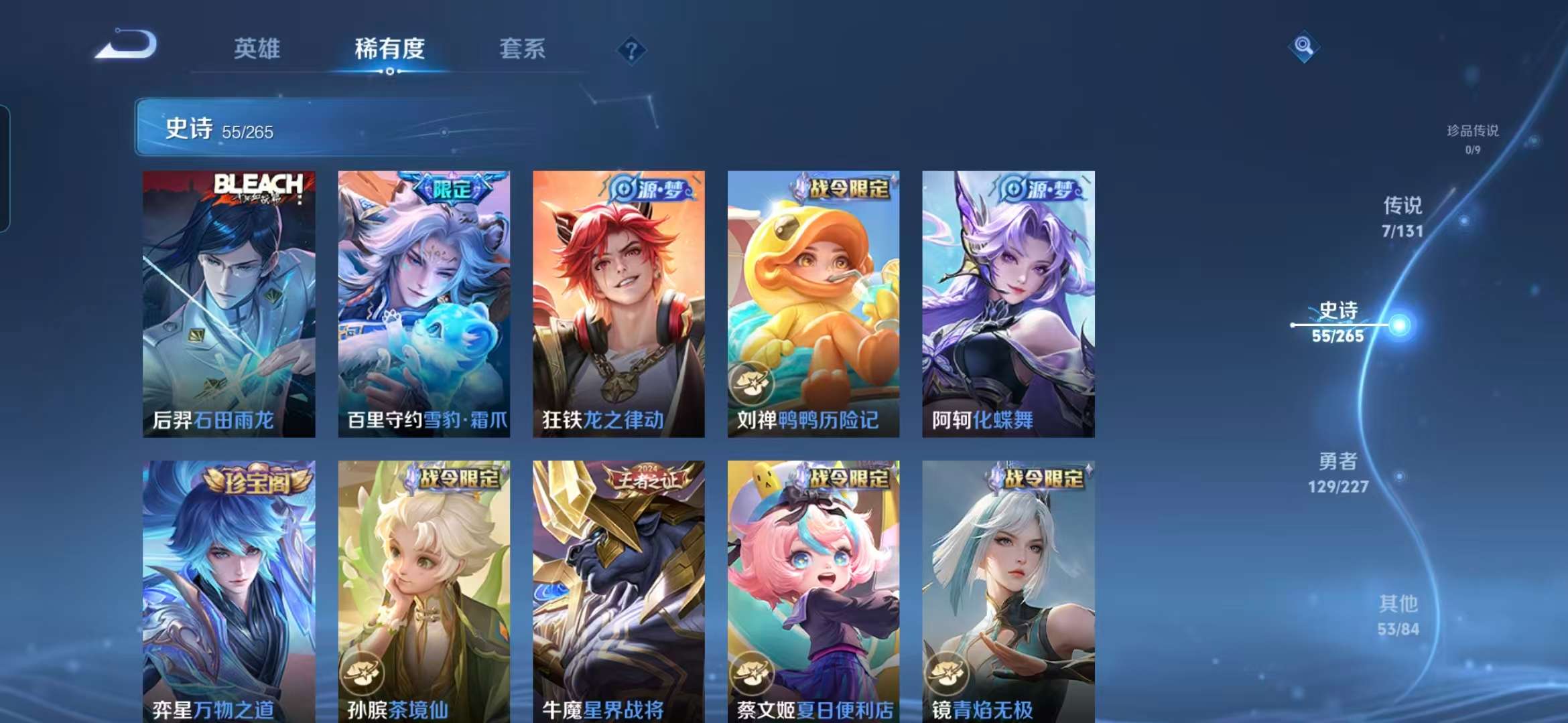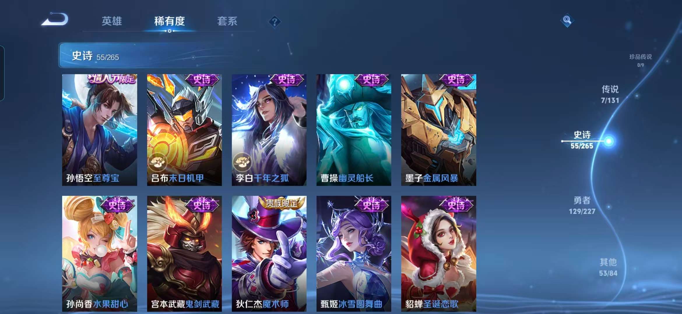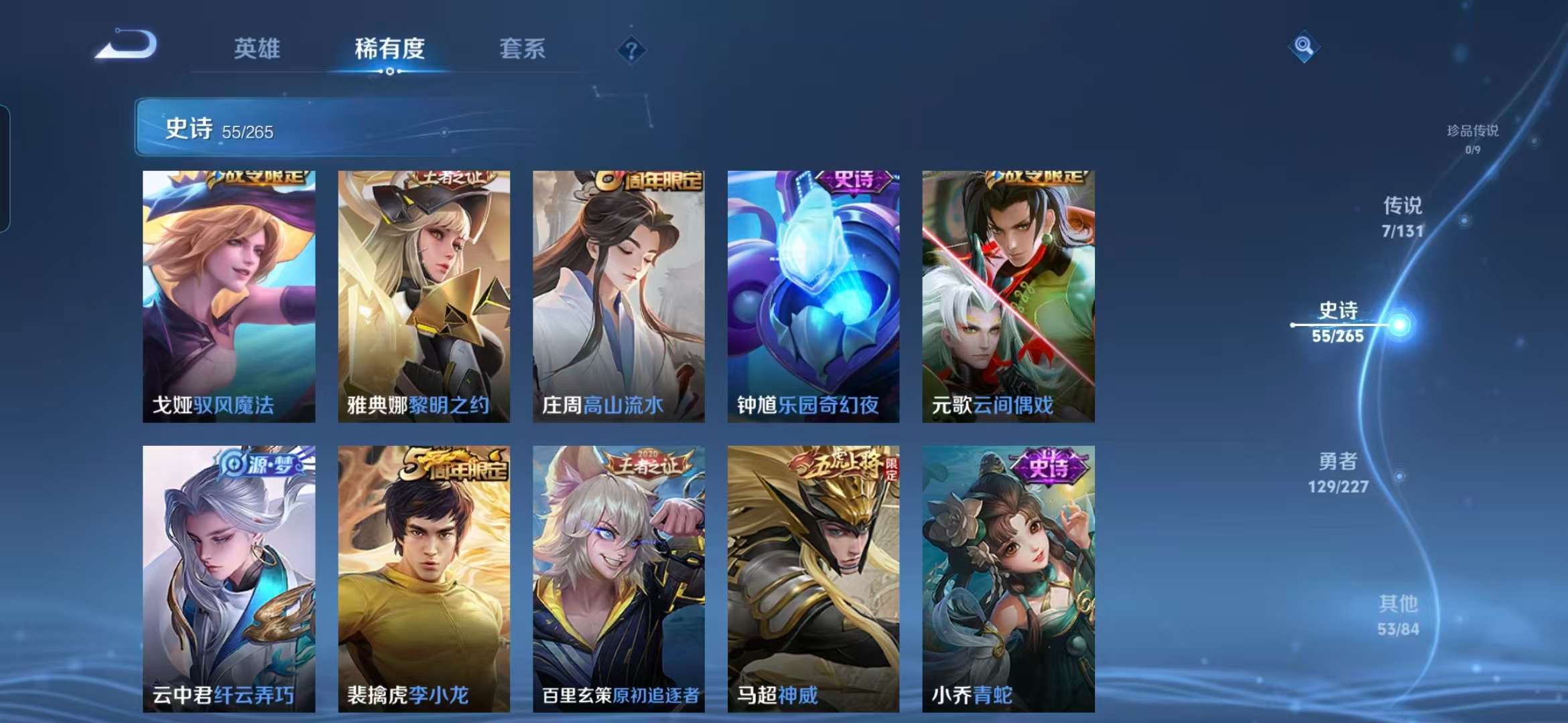 124英雄-244皮肤-【v6 小国标猴子12190战力 7传说 白虎志凤求凰至尊宝 12个王者印记 水晶夺宝273次】安卓q-244皮肤-124英雄 【传说皮肤】 鸣野蒿 前尘镜 白虎志 地狱之眼 凤求凰 末日机甲 云鹰飞将 【史诗皮肤】 茶境仙 星界战将 逐梦之影 神威 大圣娶亲 至尊宝 青焰无极 雪豹·霜爪 逐霄战戟 敬我三分 夏日便利店 苍威无极 完美运算 龙之律动 化蝶舞 驭风魔法 幽灵船长