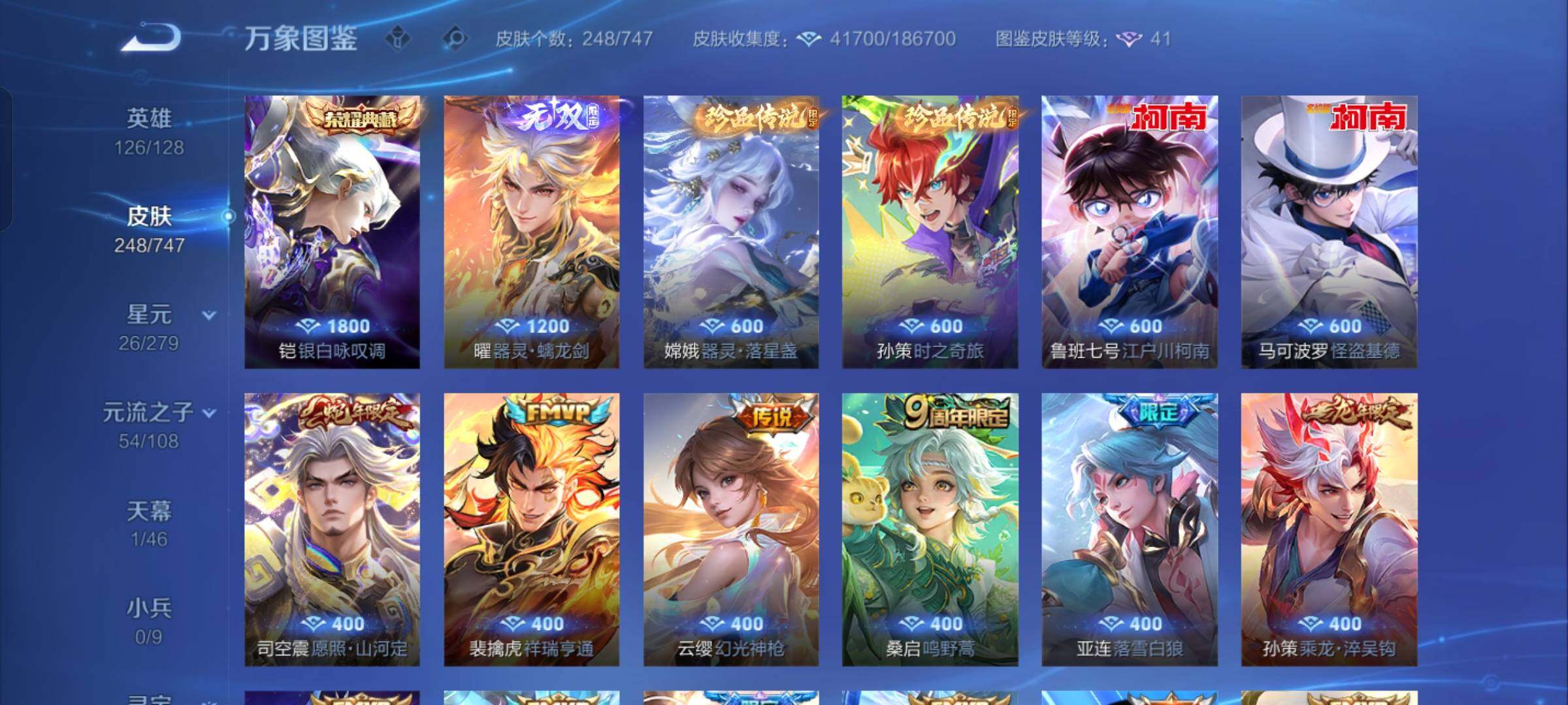 【店长推荐·精品v8·银白咏叹调·器灵螭龙剑·怪盗基德·江户川柯南·孙策时之奇旅·器灵落星盏·愿照山河定·永曜之星·乘龙淬吴钩·落雪白狼·前尘镜·逐花归海·朱雀志·挚爱童话天幕·可二次】w7728-安卓q-126英雄-248皮肤-9王者印记-110铭文-贵族积分7w【贵族8】【1典藏·1无双·4珍品传说·1星传说·24传说·1天幕·12按键】【因赛季更新游戏段付以上号为准!】 【英雄全皮】