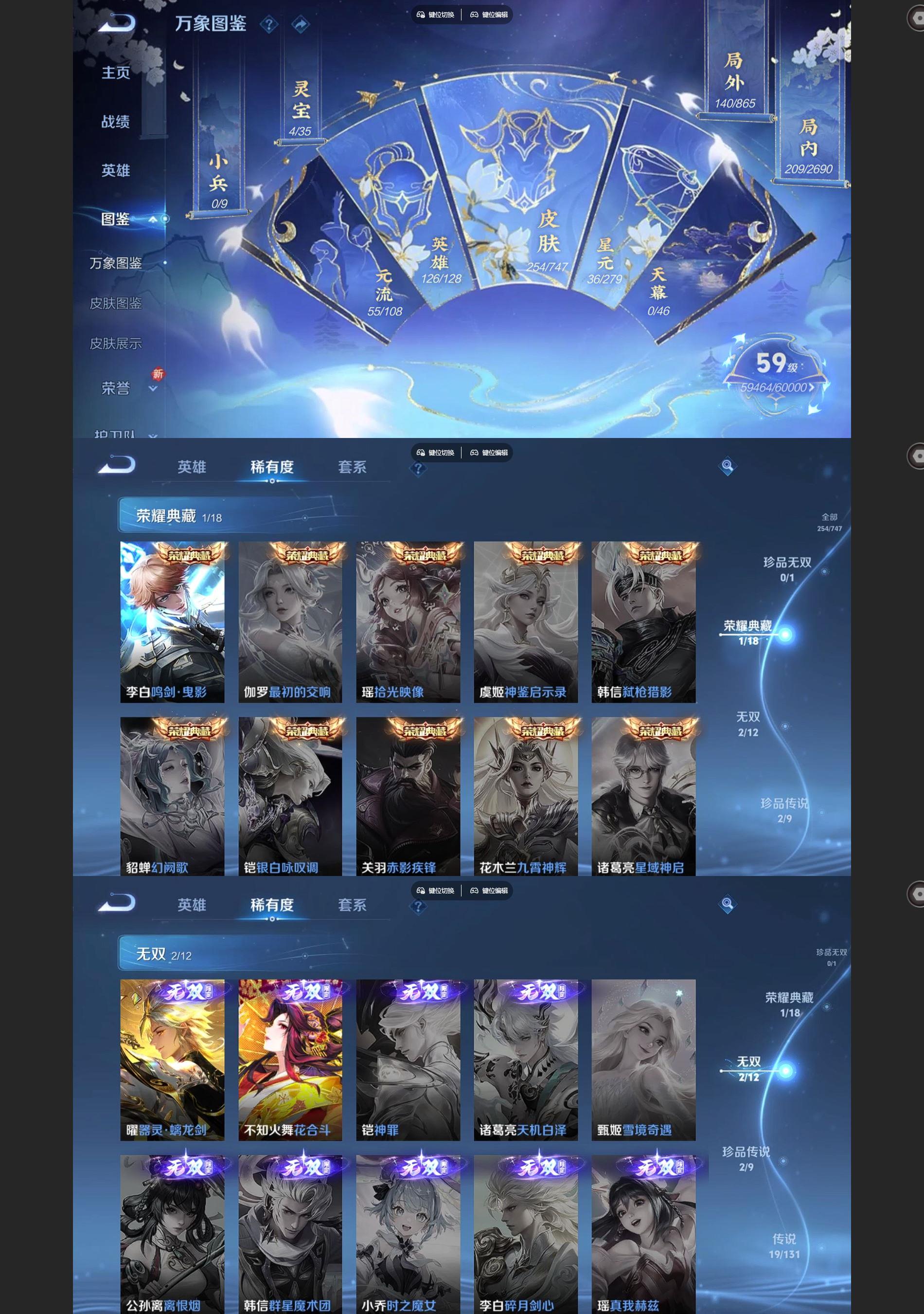 苹果q-v8-254皮肤1典藏2无双2珍品传说19传说1星元60史诗86限定-1422紫星币 【全皮英雄】 影全皮 【典藏】 鸣剑曳影 【无双】 器灵螭龙剑 花合斗 【珍品传说】 时之奇旅孙策 怪盗基德 【星元】 时之思念 【传说】 逐花归海 幻光神呛 祥瑞亨通 愿照千秋盛 愿照九州拓 鸣野蒿 启明星使 寅虎赤拳 李 启示之音 挚爱之约 妄想实况 绛天战甲 无双飞将 怒海麟威 炽阳