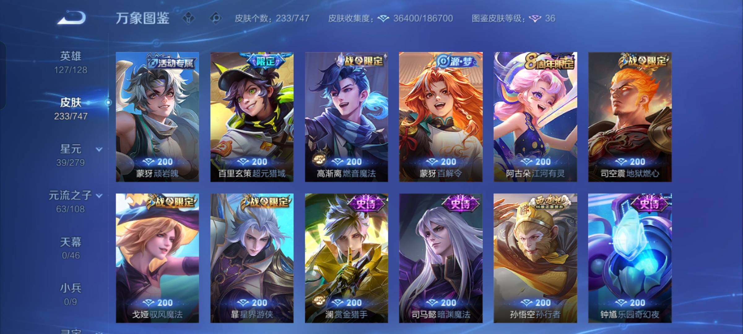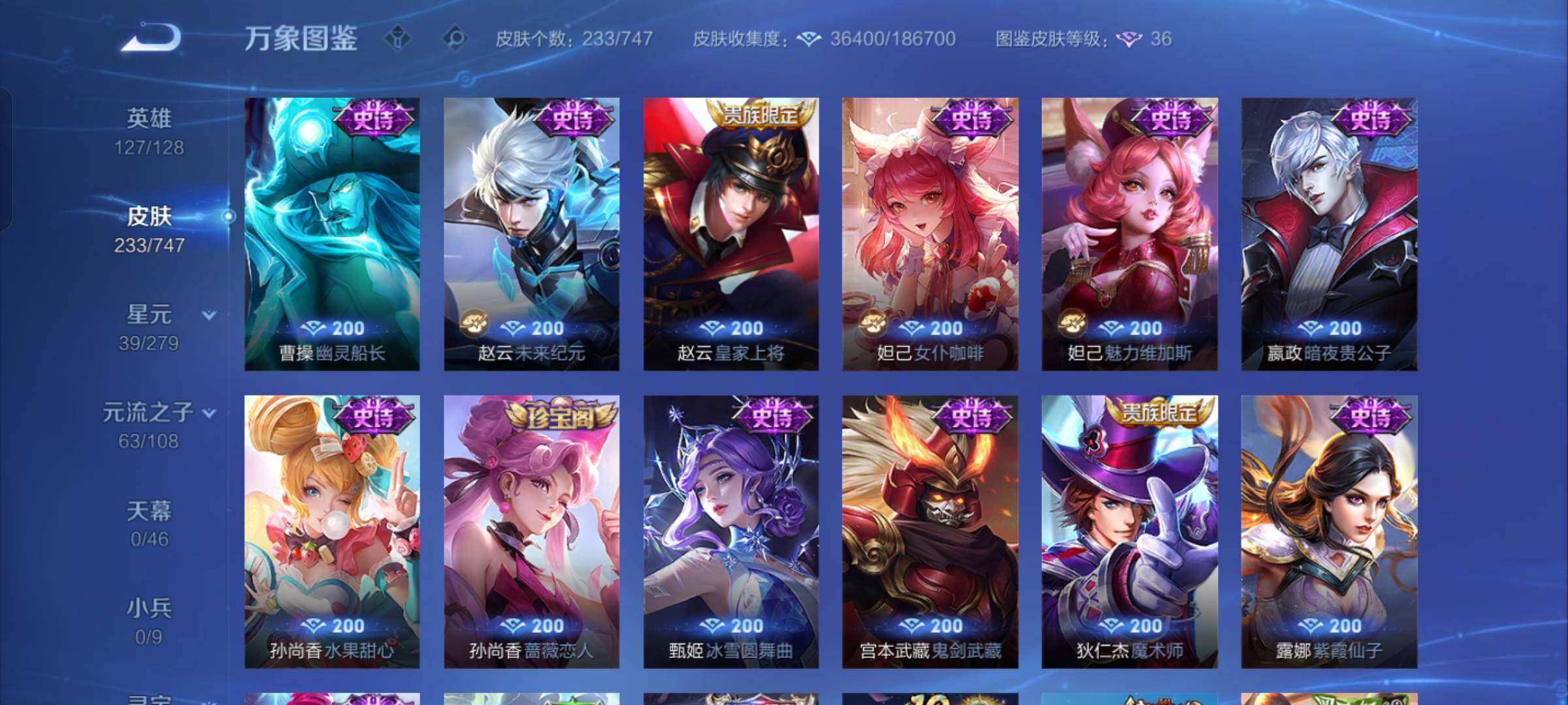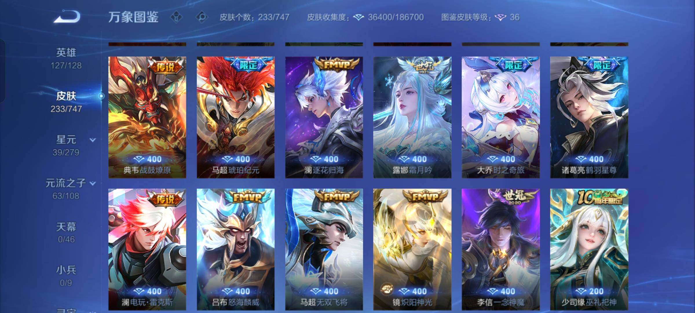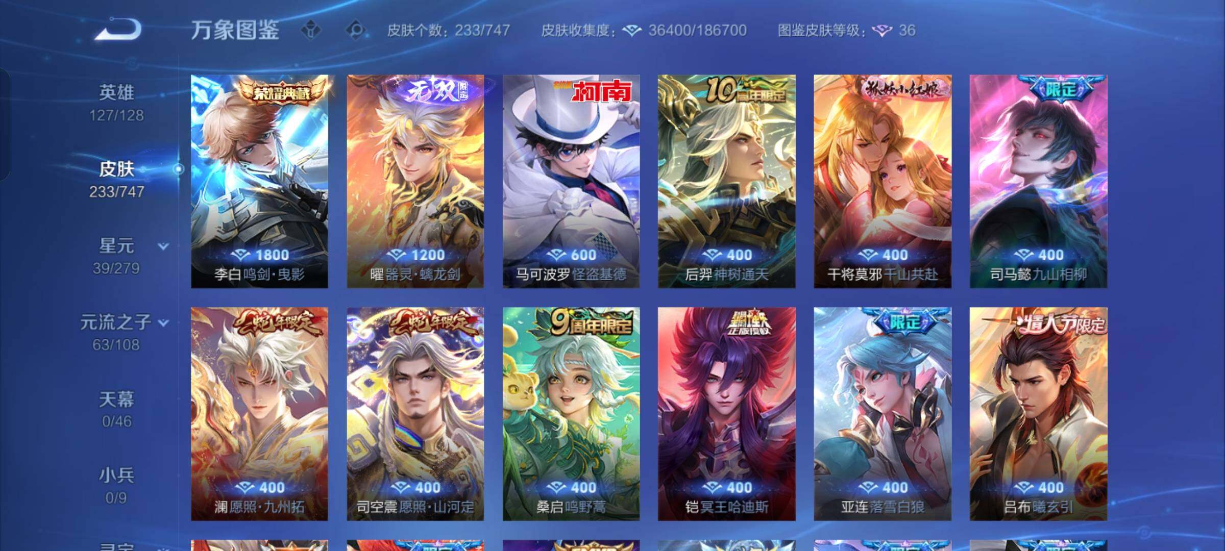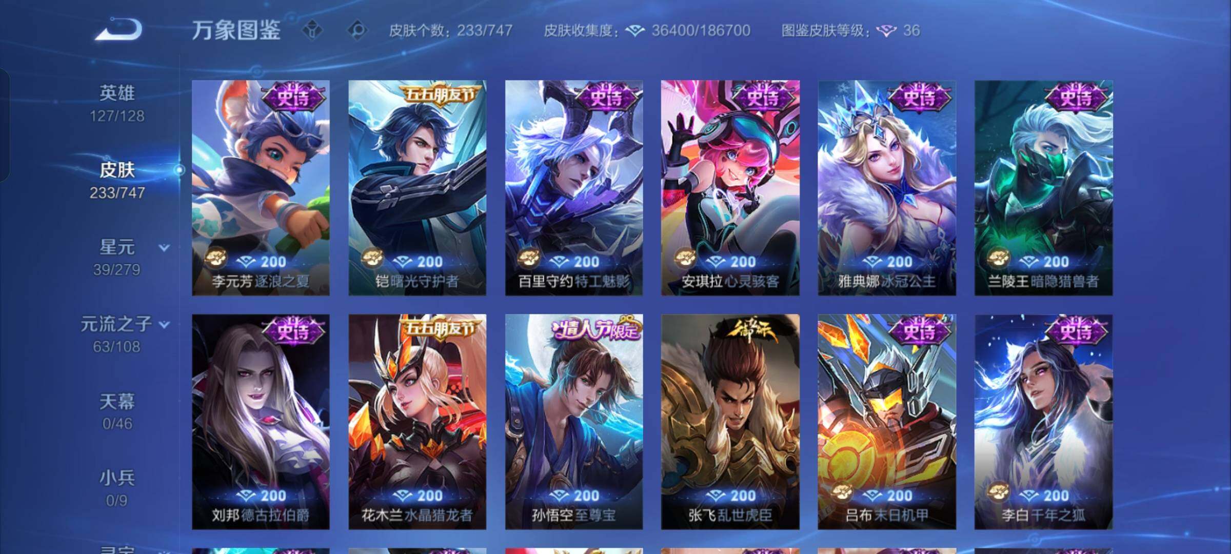 【精氪质量v7·万战金标李白·金标吕布·澜全皮·冥王哈迪斯·器灵螭龙剑·怪盗基德·鸣剑曳影·千山共赴·九山相柳·马超琥珀纪元·至尊宝·谪仙醉月·可二次】w7746-安卓q-127英雄-233皮肤-3王者印记-70铭文-贵族积分4w【贵族7】【1典藏·1无双·1珍品传说·2星传说·20传说·20按键】【因赛季更新游戏段付以上号为准!】 【英雄全皮】:司马懿全皮,澜全皮,司空震全皮,戈娅全皮,