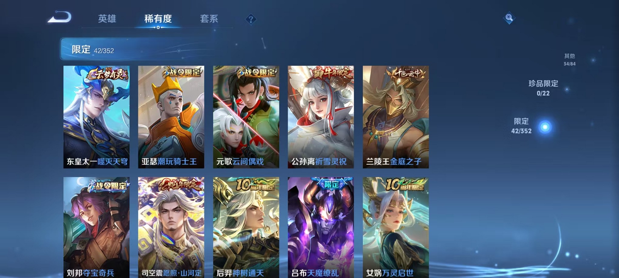 126英雄-174皮肤-【3典藏19传说 可秒换绑】安卓q-126英雄【3水晶】武则天 鸣剑·曳影 无限飓风号【19传说】天魔缭乱 神树通天 鸣野蒿 幻光神呛 愿照·山河定 愿照·九州拓 祈雪灵祝 地狱之眼 海洋之心 黄金狮子座 超时空战士 猫影幻舞 黄金射手座 末日机甲 地狱火 云霓雀翎 启明星使 黄金白羊座 时雨天司【51史诗】万灵启世 巫礼祀神 神威 至尊宝 万物之道 魅语 幽灵船长 功夫厨神