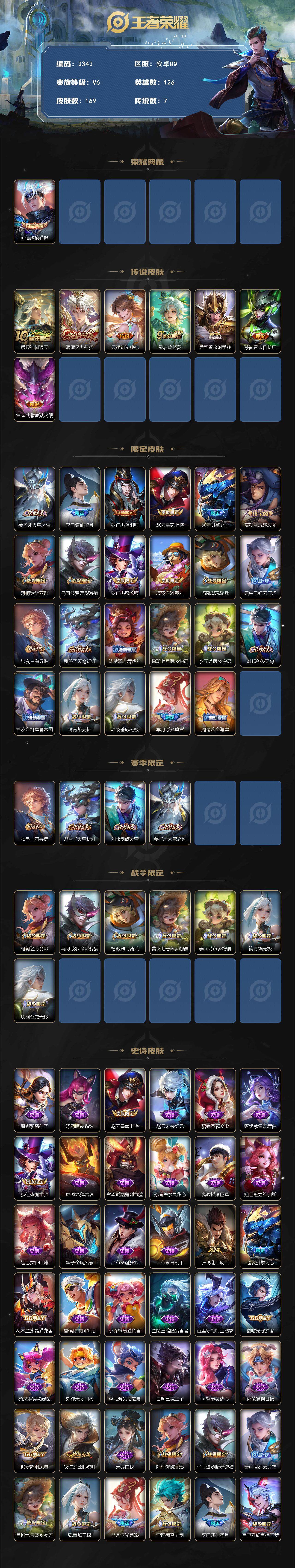 [14483051]安卓q-v6-永恒钻石iv段位-126英雄-169皮肤-1典藏皮肤-7传说-53史诗 【英雄全皮】:阿轲全皮,空空儿全皮,影全皮 【荣耀典藏】:韩信弑呛猎影 【传说皮肤】:后羿神树通天,澜愿照九州拓,云缨幻光神呛,桑启鸣野蒿,后羿黄金射手座,孙尚香末日机甲,宫本武藏地狱之眼 【限定皮肤】:姜子牙天穹之誓,李白谪仙醉月,狄仁杰阴阳师,赵云皇家上将,赵云引擎之心,高渐离玩趣恶龙,阿轲迷踪丽影,马可波罗暗影游猎,狄仁杰魔术师,项羽海滩派对,杨戬潮玩骑兵,云中君纤云弄巧,张良古海寻踪,鬼谷子天穹祈灯,沈梦溪龙舞盛年,鲁班七号蔬乡物语,李元芳蔬乡物语,刘邦剑破天穹,程咬金群星魔术团,镜青焰无极,项羽苍威无极,芈月浮光幕影,周瑜熔金海岸 【赛季限定】:张良古海寻踪,鬼谷子天穹祈灯,刘邦剑破天穹,姜子牙天穹之誓 【战令限定】:阿轲迷踪丽影,马可波罗暗影游猎,杨戬潮玩骑兵,鲁班七号蔬乡物语,李元芳蔬乡物语,镜青焰无极,项羽苍威无极 【史诗皮肤】:露娜紫霞仙子,阿轲暗夜猫娘,赵云皇家上将,赵云未来纪元,貂蝉圣诞恋歌,甄姬冰雪圆舞曲,狄仁杰魔术师,廉颇地狱岩魂,宫本武藏鬼剑武藏,孙尚香水果甜心,嬴政摇滚巨星,妲己魅力维加斯,妲己女仆咖啡,墨子金属风暴,吕布圣诞狂欢,吕布末日机甲,张飞乱世虎臣,赵云引擎之心,花木兰水晶猎龙者,夏侯惇乘风破浪,小乔缤纷独角兽,兰陵王暗隐猎兽者,百里守约特工魅影,铠曙光守护者,蔡文姬舞动绿茵,刘禅天才门将,李元芳逐浪之夏,白起星夜王子,阿轲节奏热浪,孙策猫狗日记,伽罗箭羽风息,狄仁杰鹰眼统帅,大乔白蛇,阿轲迷踪丽影,马可波罗暗影游猎,云中君纤云弄巧,鲁班七号蔬乡物语,镜青焰无极,芈月浮光幕影,亚连破空之剑,李白谪仙醉月,百里守约百相守梦,牛魔星界战将,孙膑茶境仙,赵怀真器灵浮梦炉,阿轲化蝶舞,刘禅鸭鸭历险记,狂铁龙之律动,周瑜百相守梦,黄忠百相守梦,公孙离涂山容容,百里玄策罗小黑战记,女娲万灵启世 【其他皮肤】:项羽海滩派对,露娜哥特玫瑰,阿轲致命风华,阿轲爱心护理,达摩大发明家,白起白色死神,宫本武藏未来纪元,妲己少女阿狸,典韦黄金武士,亚瑟死亡骑士,甄姬花好人间,刘备万事如意,后羿阿尔法小队,狄仁杰阴阳师,刘备纽约教父,关羽龙腾万里,孙尚香沉稳之力,李白敏锐之力,鬼谷子幻乐之宴,明世隐虹云星官,小乔丁香结,高渐离玩趣恶龙,哪吒次元突破,鲁班七号黑桃队长