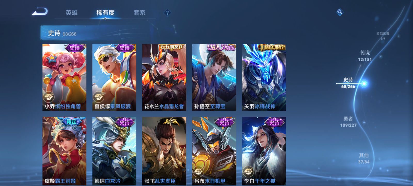 【王者荣耀】【lywz23042】珍品无双0 典藏0 无双0 珍品传说0 传说12 史诗67 英雄125 皮肤226 贵族3级 传说皮肤:鸣野蒿|仲夏夜之梦|黄金狮子座|狄仁杰-超时空战士|黄金射手座|猫影幻舞|刘备-时之恋人|一念神魔|冠军飞将|白虎志|时雨天司|武圣__稀有限定:御风骁将|至尊宝|朱雀志|虞姬-霸王别姬|蜜橘之夏|李小龙|梁祝|拒霜思|暗影游猎|冰锋战神|冰霜恋舞曲|大漠名商|繁星吟游|高山流水|古海寻踪|海滩派对|海盐诗旅|航海奇遇记|胡桃异想国|皇家上将|混沌棋|剑破天穹|江河有灵|金庭之子|狂想玩偶喵|黎明之约|迷踪丽影|魔术师|女武神|千军破阵|擒涛扼浪|驱傩正仪|荣光圣徽|沙漠行僧|朔风刀|探海日志|醍醐杖|天狼溯光者|天穹祈灯|玩趣恶龙|万华元夜|无心|五谷丰年|纤云弄巧|驯魔猎人|演武夺筹|疑决卦|阴阳师|游园惊梦|云间偶戏|逐梦之光|暗隐猎兽者|白龙吟|缤纷独角兽|冰雪圆舞曲|乘风破浪|大乔-猫狗日记|鬼剑武藏|黄金分割率|金属风暴|乐园奇幻夜|吕布-末日机甲|魅力维加斯|魅语|偶像歌手|圣诞狂欢|圣诞恋歌|鲁班七号-蔬乡物语|水果甜心|水晶猎龙者|天才门将|星夜王子|摇滚巨星|鹰眼统帅|幽灵船长|紫霞仙子|噬灭天穹|敬我三分|天穹之誓|修罗|曙光守护者|心灵战警|千年之狐|孙尚香-时之恋人|特工魅影|心灵骇客|谧流熔炉|原初探秘者|云中旅人|单词大作战|达摩-星际陆战队|夺宝奇兵|墨子-神迹守卫|刘禅-鸭鸭历险记|沈梦溪-鸭鸭历险记|灵蛊蚀心|龙之律动|布丁狗之约|虚灵犬护|石田雨龙|逆浪荇歌__优质皮肤:尼罗河女神|一千零一夜|创世神祝|孤猎|熊喵少女|午夜歌剧院|激情绿茵|碧珀绯影|秩序猎龙将|锦衣卫|冰刃幻境|维京掠夺者|绯红之刃|踏雪寻梅|启蛰|画中游|威尼斯狂欢|芝加哥教父|绝影神呛|荷鲁斯之眼|幸存者|赤焰之缨|福禄兄弟|前尘|特种部队|花间舞|魇语军师|棒球奇才|东海龙王|灼热之刃|圣殿之光|神奇女侠|万圣前夜|功夫炙烤|聚星闪耀|潮玩探月行|瓷语鉴心|秘密基地|次元突破|鲨炮海盗猫|丁香结|奇妙博物学|虹云星官|科学大爆炸|守护之力|坚韧之力|幻乐之宴|功夫老勺|海滩丽影|阿尔法小队|兔女郎|死亡骑士|黄金武士|少女阿狸|玩偶对对碰|宫本武藏-未来纪元|东方不败|忍·炎影|爱心护理|街头霸王|教廷特使|西部游侠|重装意志|次元傲视|无尽征程|黑桃队长|拳王|时尚教父|白色死神|爱与正义|白执事|大发明家|哥特玫瑰|星梦巡礼|猪八戒-西部大镖客|缤纷绘卷|雾都夜雨|逐霄战戟|龙腾万里|霸王丸|乱世虎臣|敏锐之力|西施-归虚梦演|孙悟空-西部大镖客|牛魔-西部大镖客|热血海滩|龙舞盛年|汉昭烈帝|乓乓大师|五福同心|盾山-圆桌骑士|蒙犽-归虚梦演|太乙真人-圆桌骑士|赤莲之焰|完美运算|化身博士|花好人间|熔金海岸|潮玩骑士王|苍林狼骑|蔚蓝守将|劲辣红锅|特工战影|炽热元素使|春野闲踪|灵野札记|玫蓝誓约|命运加冕|小满鸭|死霸装|无双福将__贵族等级:贵族3级__王者段位:永恒钻石【精美皮肤号】多热门传说 至尊宝 冰封战神