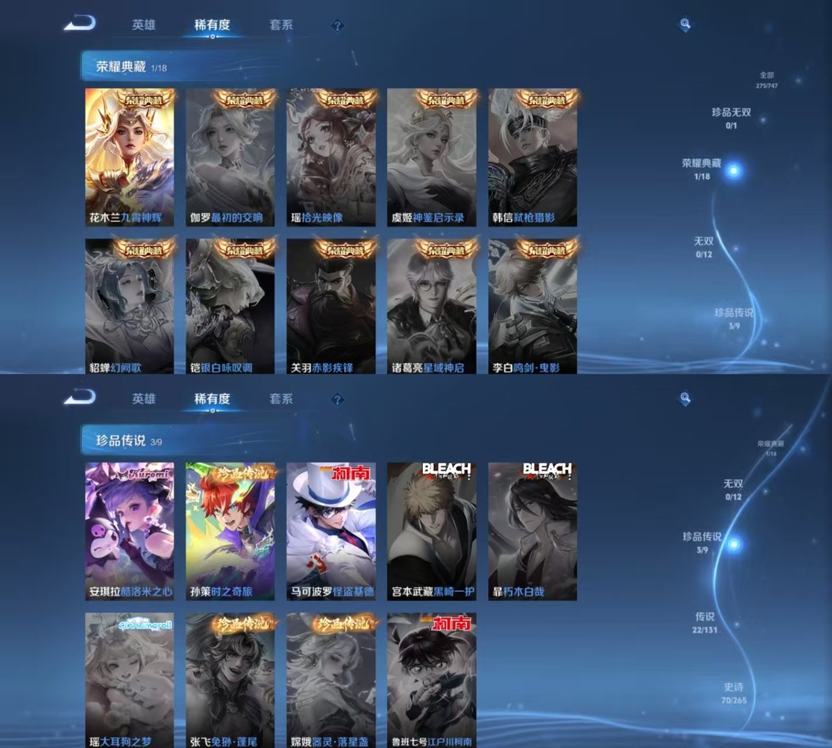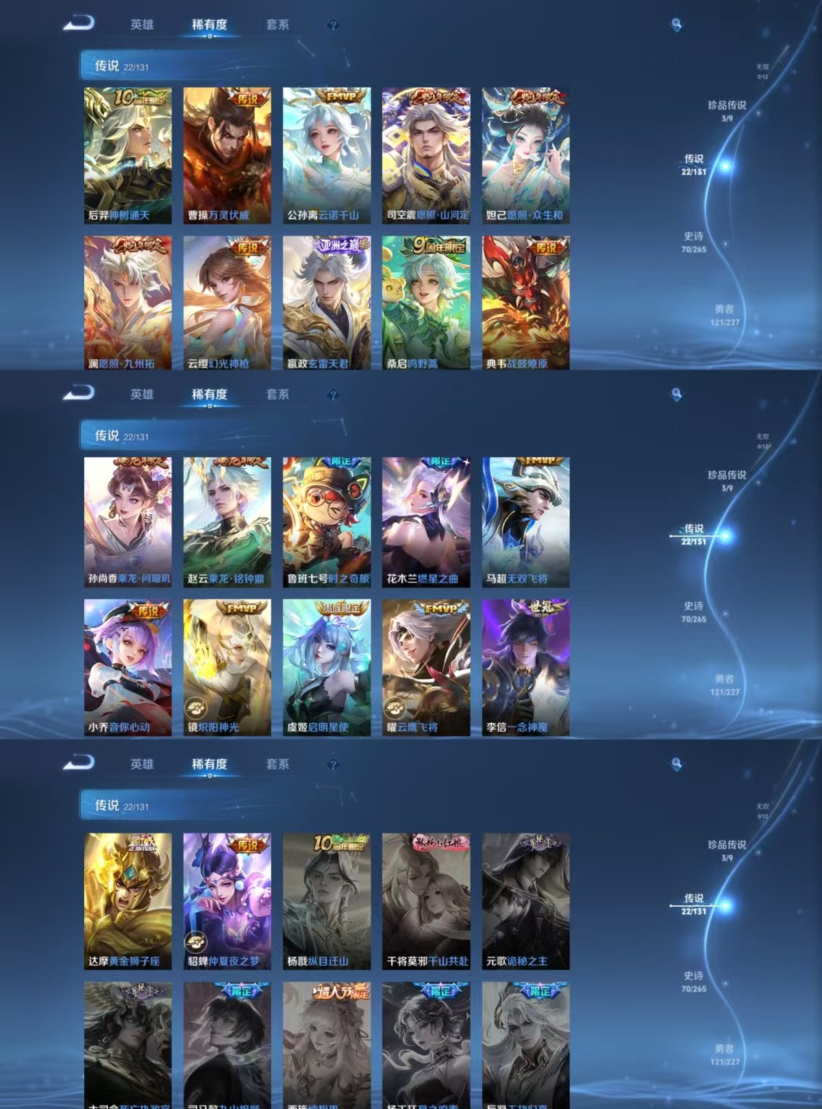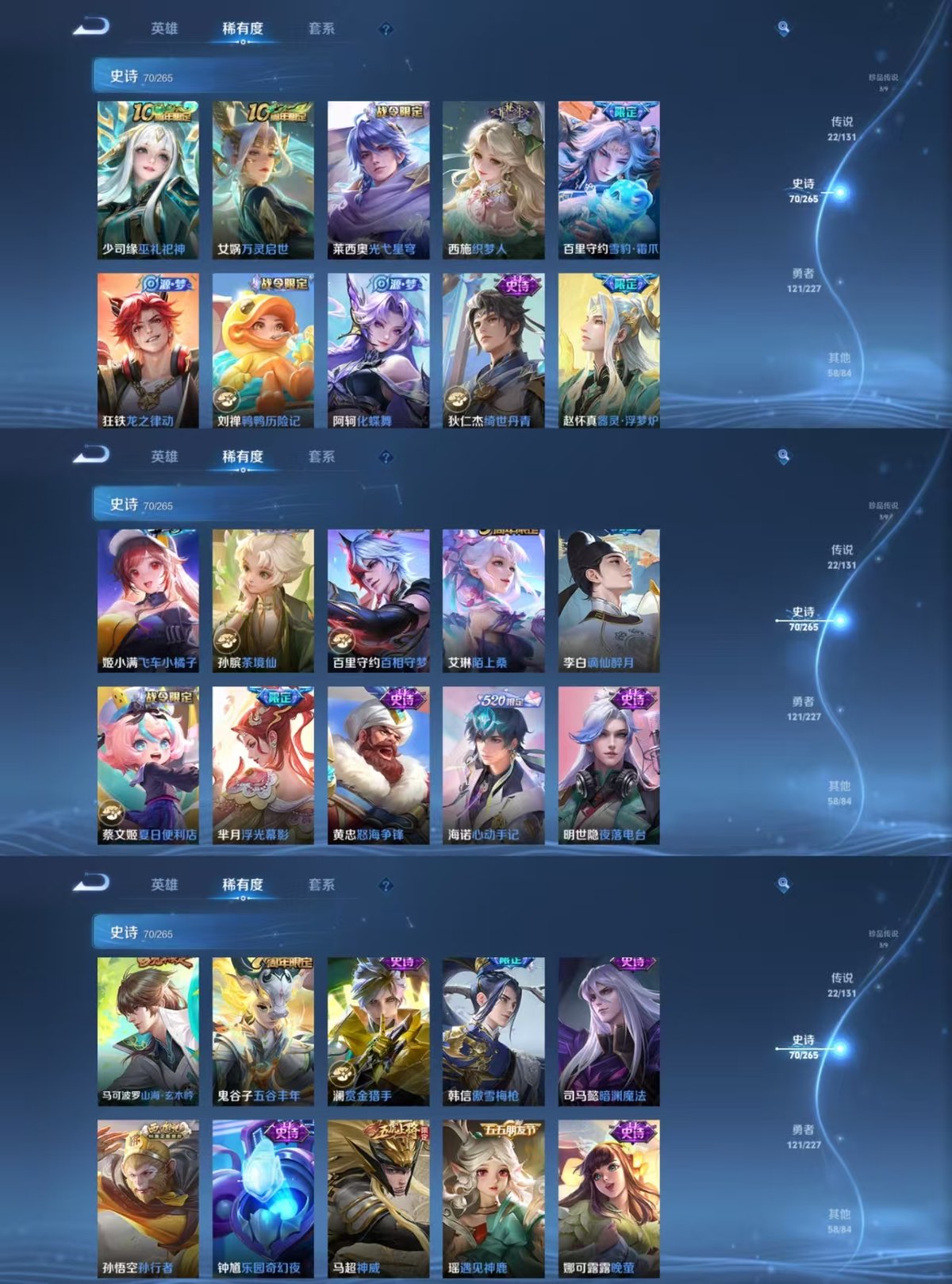 _2300459-实名:可修改贵族等级:v8英雄数:127皮肤数:275荣耀水晶:九霄神辉珍品传说:怪盗基德时之奇旅-孙策酷洛米之心传说皮:黄金狮子座云鹰飞将炽阳神光一念神魔仲夏夜之梦音你心动-小乔无双飞将燃星之曲鲁班七号-时之奇旅乘龙·问璇玑乘龙·铭钟鼎典韦战鼓燎原玄雷天君幻光神呛云诺千山万灵伏威神树通天限定皮:神威至尊宝孙行者傲雪梅呛五谷丰年山海·玄木吟山海·碧波行鸣野蒿陌上桑逐霄战戟愿照·众生和愿照·山河定愿照·九州拓