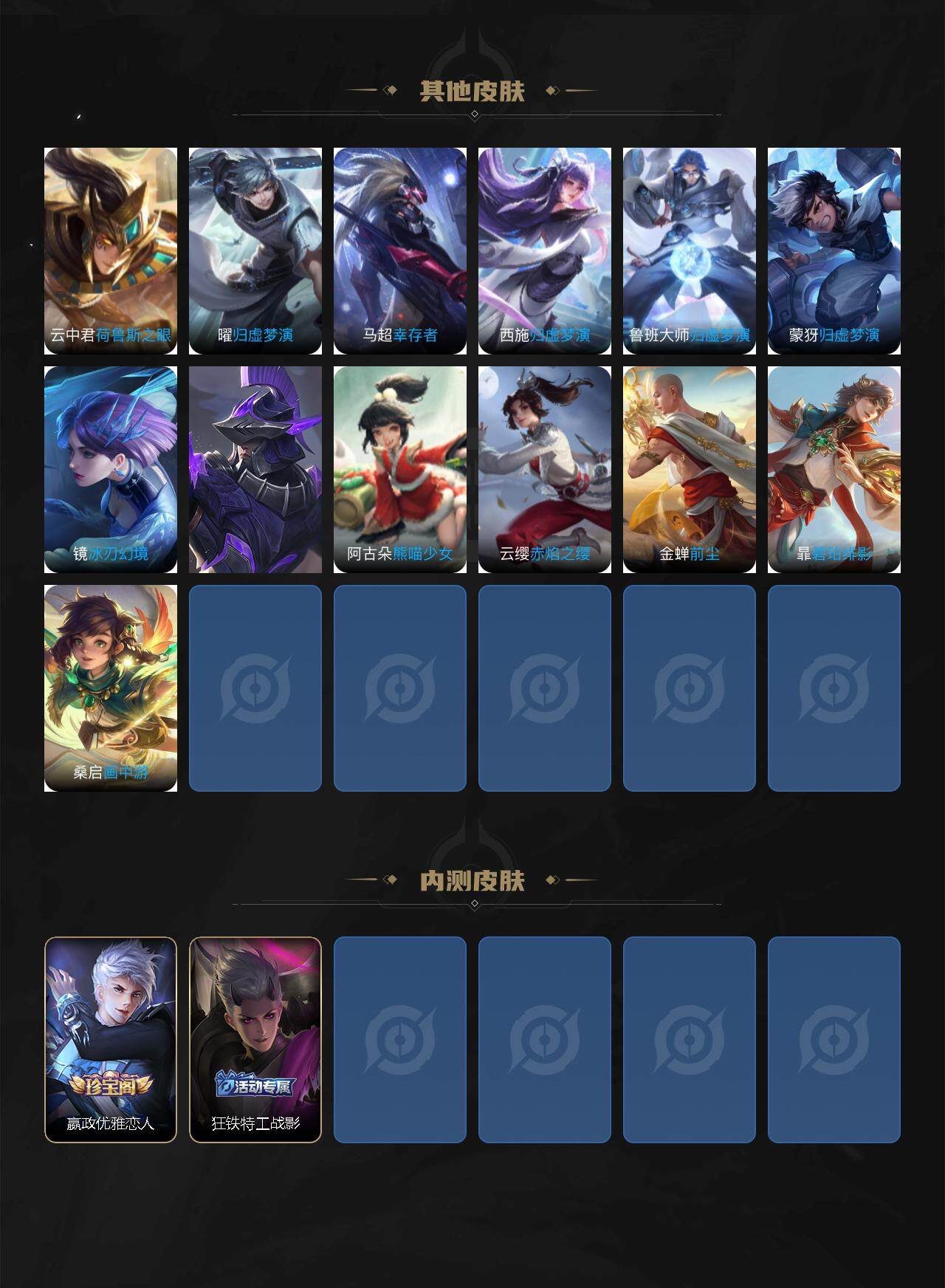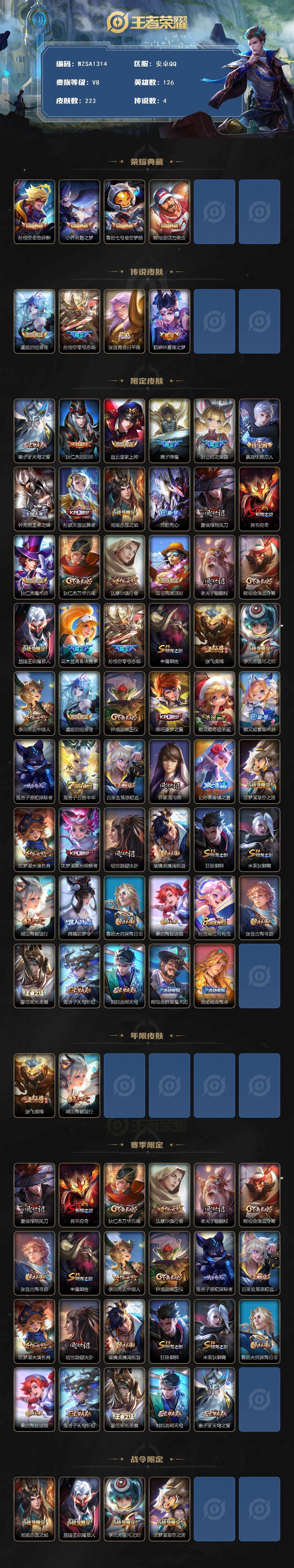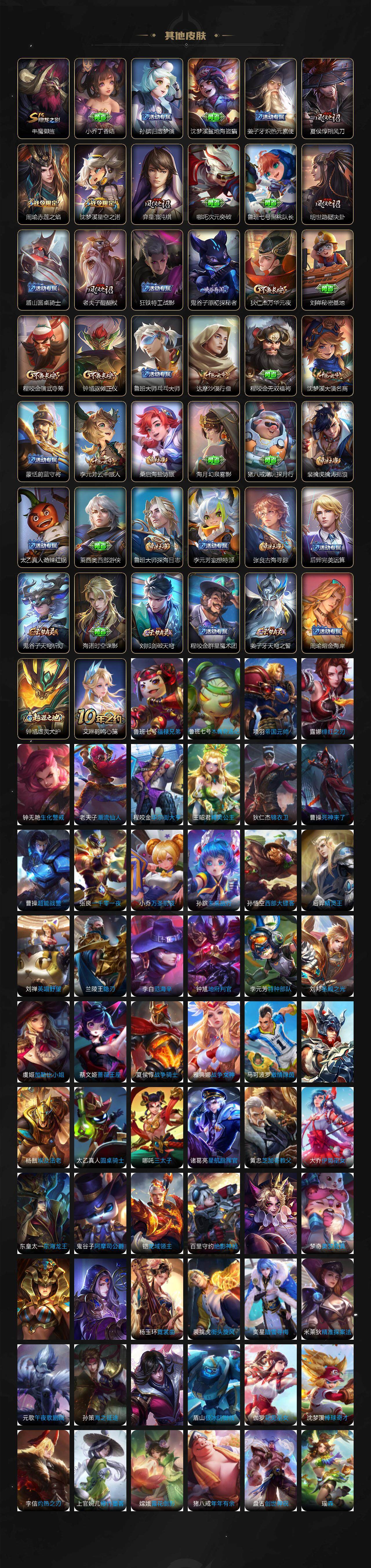 【wzsa1314】贵族8/皮肤223/典藏4/传说4/史诗58/英雄126/蒙恬全皮/孙悟空全息碎影/小乔天鹅之梦/鲁班七号星空梦想/程咬金活力突击/虞姬启明星使/孙悟空零号赤焰/张良黄金白羊座/貂蝉仲夏夜之梦/姜子牙天穹之誓/狄仁杰阴阳师/赵云皇家上将/墨子降魔/妲己时之彼端/嬴政优雅恋人/钟无艳王者之锤/孙膑天狼运算者/周瑜赤莲之焰/元歌无心/夏侯惇朔风刀/典韦穷奇/狄仁杰魔术师/狄仁杰万华元夜/达摩沙漠行僧/项羽海滩派对/老夫子醍醐杖/程咬金演武夺筹/兰陵王驯魔猎人/花木兰青春决赛季/牛魔御旌/张飞虎魄/李元芳银河之约/李元芳云中旅人/钟馗驱傩正仪/哪吒逐梦之翼/蔡文姬奇迹圣诞/蔡文姬繁星吟游/鬼谷子原初探秘者/鬼谷子五谷丰年/百里玄策原初追逐者/弈星混沌棋/公孙离蜜橘之夏/沈梦溪星空之诺/沈梦溪大漠名商/沈梦溪匿光破解者/明世隐疑决卦/裴擒虎擒涛扼浪/狂铁御狮/米莱狄御霄/瑶山海碧波行/嫦娥如梦令/鲁班大师探海日志/桑启海盐诗旅/阿古朵江河有灵/张良古海寻踪/蒙恬荣光圣徽/鬼谷子天穹祈灯/刘邦剑破天穹/程咬金群星魔术团/周瑜熔金海岸/鲁班七号电玩小子/赵云未来纪元/貂蝉圣诞恋歌/甄姬冰雪圆舞曲/廉颇地狱岩魂/宫本武藏鬼剑武藏/孙尚香水果甜心/嬴政摇滚巨星/妲己魅力维加斯/墨子金属风暴/吕布圣诞狂欢/曹操幽灵船长/吕布末日机甲/张飞乱世虎臣/夏侯惇乘风破浪/小乔缤纷独角兽/兰陵王暗隐猎兽者/亚瑟心灵战警/雅典娜冰冠公主/安琪拉心灵骇客/百里守约特工魅影/铠曙光守护者/蔡文姬舞动绿茵/刘禅天才门将/李元芳逐浪之夏/程咬金功夫厨神/阿轲节奏热浪/孙策猫狗日记/大乔猫狗日记/狄仁杰鹰眼统帅/小乔青蛇/瑶遇见神鹿/钟馗乐园奇幻夜/庄周天秀幻梦/刘禅电玩爆裂旋风/韩信教廷特使/露娜哥特玫瑰/阿轲爱心护理/达摩大发明家/赵云忍炎影/程咬金星际陆战队/程咬金爱与正义/白起白色死神/牛魔西部大镖客/扁鹊化身博士/庄周鲤鱼之梦/安琪拉玩偶对对碰/孙膑天使之翼/姜子牙时尚教父/典韦黄金武士/亚瑟死亡骑士/达摩拳王/花木兰兔女郎/张飞五福同心/甄姬花好人间/刘备万事如意/宫本武藏万象初新/李元芳黑猫爱糖果/关羽龙腾万里/墨子进击墨子号/钟无艳海滩丽影/王昭君幻想奇妙夜/狂铁命运角斗场/老夫子功夫老勺/李白敏锐之力/鬼谷子幻乐之宴/安琪拉如懿/苏烈坚韧之力/大乔守护之力/项羽科学大爆炸/明世隐虹云星官/庄周奇妙博物学/小乔丁香结/孙膑归虚梦演/沈梦溪鲨炮海盗猫/姜子牙炽热元素使/哪吒次元突破/鲁班七号黑桃队长/盾山圆桌骑士/狂铁特工战影/刘禅秘密基地/鲁班大师乓乓大师/程咬金无双福将/蒙恬蔚蓝守将/海月幻泉雾影/猪八戒潮玩探月行/太乙真人劲辣红锅/莱西奥西部游侠/李元芳妄想特派/后羿完美运算/海诺时空谍影/钟馗虚灵犬护/艾琳鹤鸣心笺/鲁班七号福禄兄弟/鲁班七号木偶奇遇记/项羽帝国元帅/露娜绯红之刃/钟无艳生化警戒/老夫子潮流仙人/程咬金华尔街大亨/王昭君精灵公主/狄仁杰锦衣卫/曹操死神来了/曹操超能战警/张良一千零一夜/小乔万圣前夜/孙膑未来旅行/孙悟空西部大镖客/后羿精灵王/刘禅英喵野望/兰陵王隐刃/李白范海辛/钟馗地府判官/李元芳特种部队/刘邦圣殿之光/虞姬加勒比小姐/蔡文姬蔷薇王座/夏侯惇战争骑士/雅典娜战争女神/马可波罗激情绿茵/苍维京掠夺者/杨戬埃及法老/太乙真人圆桌骑士/哪吒三太子/诸葛亮星航指挥官/黄忠芝加哥教父/大乔伊势巫女/东皇太一东海龙王/鬼谷子阿摩司公爵/铠龙域领主/百里守约绝影神呛/百里玄策威尼斯狂欢/梦奇美梦成真/女娲尼罗河女神/明世隐占星师/杨玉环霓裳曲/裴擒虎街头旋风/弈星踏雪寻梅/米莱狄精准探案法/元歌午夜歌剧院/孙策海之征途/司马懿魇语军师/盾山极冰防御线/伽罗花见巫女/沈梦溪棒球奇才/李信灼热之刃/上官婉儿修竹墨客/嫦娥露花倒影/猪八戒年年有余/盘古创世神祝/瑶森/云中君荷鲁斯之眼/曜归虚梦演/马超幸存者/西施归虚梦演/鲁班大师归虚梦演/蒙犽归虚梦演/镜冰刃幻境/蒙恬秩序猎龙将/阿古朵熊喵少女/云缨赤焰之缨/金蝉前尘/暃碧珀绯影/桑启画中游