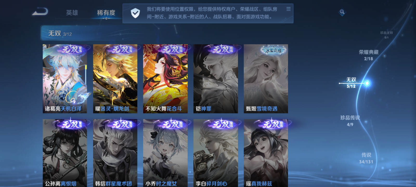 【王者荣耀】【lywz23038】珍品无双0 典藏2 无双3 珍品传说4 传说34 史诗131 英雄128 皮肤395 贵族9级 荣耀典藏:杀手不太冷|武则天|弑呛猎影__无双皮肤:花合斗|器灵·螭龙剑|天机白泽__珍品传说:怪盗基德|兔狲·蓬尾|朽木白哉|黑崎一护__传说皮肤:鸣野蒿|无尽星芒|无双飞将|绛天战甲|炽阳神光|启明星使|胖达荣荣|地狱之眼|海洋之心|孙策-末日机甲|久胜战神|狄仁杰-超时空战士|黄金白羊座|刘备-时之恋人|一念神魔|飞鸢探春|乞巧织情|淬星耀世|鹤羽星尊|齐天大圣|金乌负日|马超-琥珀纪元|周瑜-音你心动|山海·炽霜斩|云中君-群星魔术团|幻光神呛|愿照·九州拓|愿照·千秋盛|九山相柳|死亡执政官|诡秘之主|神树通天|纵目迁山__稀有限定:寅虎·御盾|御风骁将|白晶晶|至尊宝|虞姬-霸王别姬|大圣娶亲|岱宗|烈魂|李小龙|梁祝|狮舞东方|暗影游猎|白昼王子|冰锋战神|超元猎域|地狱燃心|电玩高手|繁星吟游|高山流水|古海寻踪|海滩派对|海盐诗旅|航海奇遇记|胡桃异想国|皇家上将|混沌棋|剑破天穹|决胜骁骑|凯尔特女王|狂想玩偶喵|蓝屏警告|黎明之约|迷踪丽影|魔术师|奇幻香踪|青焰无极|穷奇|驱傩正仪|朔风刀|死亡摇滚|醍醐杖|天狼溯光者|天穹祈灯|玩趣恶龙|万华元夜|纤云弄巧|演武夺筹|疑决卦|阴阳师|遇见飞天|御旌|御銮|御狮|云间偶戏|暗夜贵公子|暗夜猫娘|暗隐猎兽者|暗渊魔法|白龙吟|白蛇|缤纷独角兽|冰冠公主|冰雪圆舞曲|苍穹之光|乘风破浪|大乔-猫狗日记|德古拉伯爵|地狱岩魂|电玩·爆裂旋风|电玩小子|功夫厨神|鬼剑武藏|黄金分割率|箭羽风息|节奏热浪|金属风暴|乐园奇幻夜|李元芳-蔬乡物语|龙骑士|吕布-末日机甲|魅力维加斯|魅语|女仆咖啡|偶像歌手|奇遇舞章|赏金猎手|上官婉儿-群星魔术团|绅士熊喵|圣诞狂欢|圣诞恋歌|诗语江南|鲁班七号-蔬乡物语|水果甜心|水晶猎龙者|孙策-猫狗日记|天才门将|天秀·启明|完美假期|晚萤|赵云-未来纪元|星夜王子|摇滚巨星|鹰眼统帅|永昼|幽灵船长|月团寄思|钟无艳-超时空战士|逐浪之夏|紫霞仙子|百里守约-百相守梦|老夫子-百相守梦|噬灭天穹|敬我三分|破空之剑|战舞者|东方月初|霜北刀|埋骨钱|顽岩魄|蔡文姬-夏日便利店|虞姬-夏日便利店|天穹之誓|浮光幕影|海诺-心动手记|修罗|曙光守护者|心灵战警|千年之狐|孙尚香-时之恋人|无限星赏官|舞动绿茵|特工魅影|心灵骇客|飞车小橘子|茶境仙|星界战将|谧流熔炉|苍鳞隐世|万物之道|器灵·浮梦炉|糖绘人间|狼魂孤将|绮世丹青|化蝶舞|御霄|狰|烛龙|原初探秘者|重明|单词大作战|朔望之晖|钟馗-神迹守卫|孙悟空-神迹守卫|达摩-星际陆战队|访茗客|苍威无极|墨子-神迹守卫|死神来了|华尔街大亨|刘禅-鸭鸭历险记|沈梦溪-鸭鸭历险记|灵蛊蚀心|藏狐·褐绒|雪豹·霜爪|龙之律动|布丁狗之约|虚灵犬护|石田雨龙|逆浪荇歌|孙策-百相守梦|周瑜-百相守梦|黄忠-百相守梦|织梦人|守夜人|涂山容容|光弋星穹|往忆晖光|百里玄策-罗小黑战记|荣光之誓|巫礼祀神|鹤鸣心笺__优质皮肤:尼罗河女神|创世神祝|孤猎|木偶奇遇记|熊喵少女|午夜歌剧院|露花倒影|激情绿茵|碧珀绯影|秩序猎龙将|锦衣卫|冰刃幻境|英喵野望|维京掠夺者|绯红之刃|启蛰|战争骑士|伊势巫女|威尼斯狂欢|潮流仙人|芝加哥教父|街头旋风|绝影神呛|地府判官|荷鲁斯之眼|幸存者|赤焰之缨|福禄兄弟|隐刃|前尘|特种部队|三太子|精灵王|剑舞者|范海辛|龙域领主|花间舞|魇语军师|棒球奇才|蔷薇王座|灼热之刃|精准探案法|帝国元帅|战争女神|加勒比小姐|精灵公主|修竹墨客|万圣前夜|怪诞之夜|绒语心约|长夏之忆|异域游侠|暗都幽影|功夫炙烤|潮玩探月行|虎啸剑宗|瓷语鉴心|秘密基地|次元突破|鲨炮海盗猫|野性能量|丁香结|奇妙博物学|虹云星官|科学大爆炸|守护之力|坚韧之力|幻乐之宴|功夫老勺|命运角斗场|幻想奇妙夜|海滩丽影|阿尔法小队|兔女郎|死亡骑士|少女阿狸|天使之翼|宫本武藏-未来纪元|红桃皇后|忍·炎影|爱心护理|教廷特使|金色潮汐|时空谍影|决胜大满贯|破局者|西部游侠|牛运亨通|幻泉雾影|潮玩造梦师|胡桃狂想曲|契约魔法|潮玩牛仔|紫罗兰之誓|铁甲之心|重装意志|次元傲视|无尽征程|幽兰居士|如懿|进击墨子号|拳王|时尚教父|救世之瞳|白色死神|程咬金-星际陆战队|大发明家|哥特玫瑰|魅影绮裳|西施-雪境奇遇|金福满堂|星梦巡礼|灵卦秘语|爆裂喵拳|景韶洛都|浪漫序章|猪八戒-西部大镖客|缤纷绘卷|掌控之力|雾都夜雨|逐霄战戟|铁骨偃魂|纽约教父|龙腾万里|霸王丸|乱世虎臣|经纬探寻者|孙悟空-西部大镖客|牛魔-西部大镖客|热血海滩|龙舞盛年|乓乓大师|五福同心|盾山-圆桌骑士|猎兽之王|蒙犽-归虚梦演|万事如意|曜-归虚梦演|唤灵魔甲|程咬金-群星魔术团|完美运算|化身博士|花好人间|熔金海岸|春野之旅|潮玩骑士王|无尽旅途|万象初新|苍林狼骑|蔚蓝守将|劲辣红锅|特工战影|炽热元素使|秘证寻踪|春野闲踪|灵野札记|玫蓝誓约|命运加冕|潮玩士官长|死霸装|无双福将|踏浪烽翎|云械蓝图|戏梦巡演|克喵|青衿临川|哪吒-罗小黑战记|张良-罗小黑战记|径山谋武|逐霄之志__贵族等级:贵族9级__王者段位:至尊星耀【精美皮肤号】典藏孙尚香 韩信 无双诸葛 曜 火舞 珍品 宫本 马可 张飞 37按键