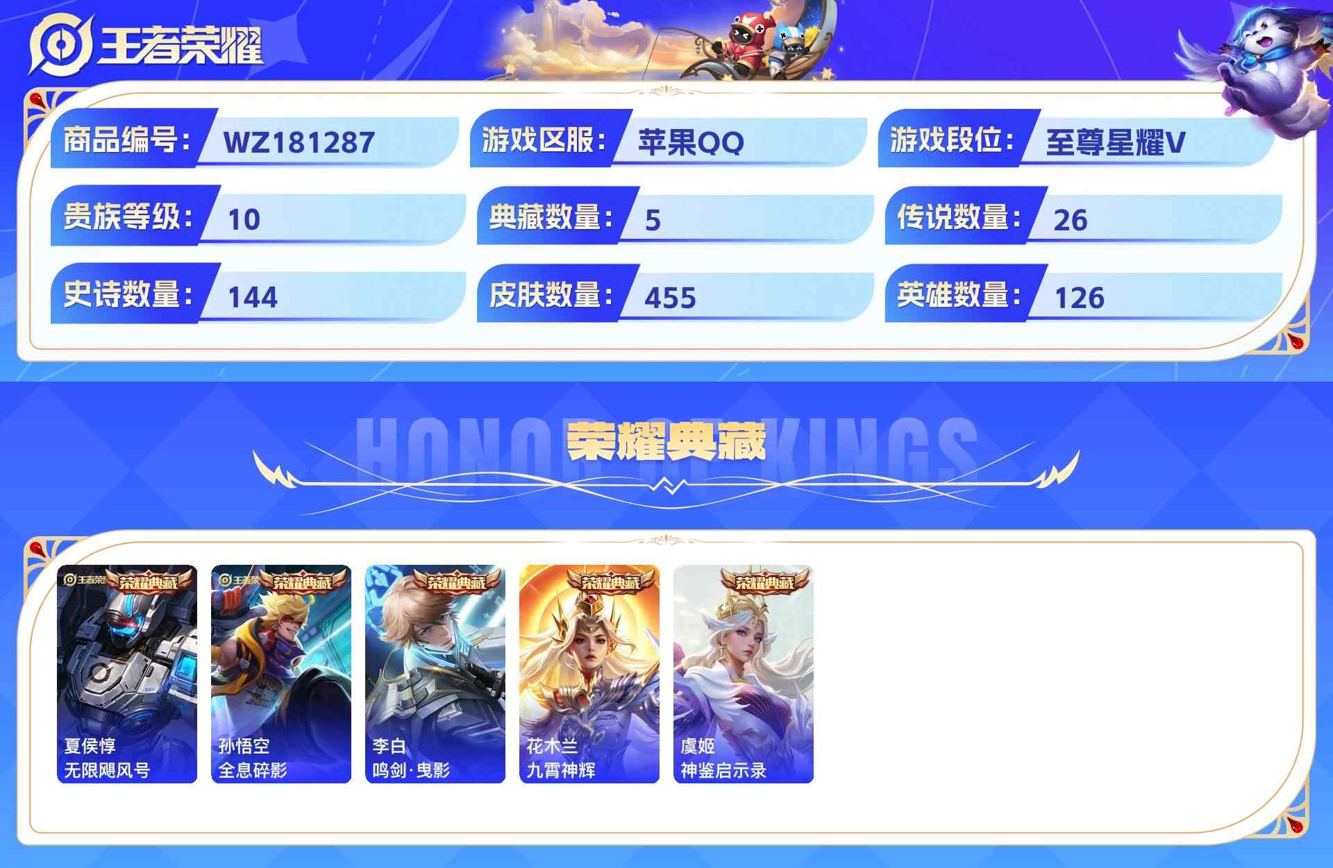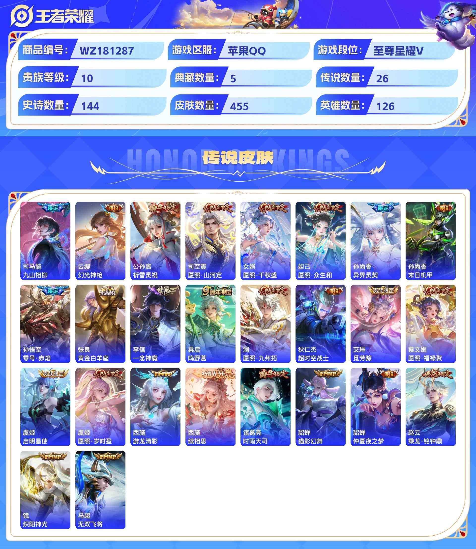 wz181287|极品金标号苹果qq 贵族10级 455皮 5典藏(无限飓风号全息碎影鸣剑·曳影九霄神辉神鉴启示录) 2无双(天机白泽器灵·螭龙剑) 26传说 144史诗8星传说13个性按键1天幕