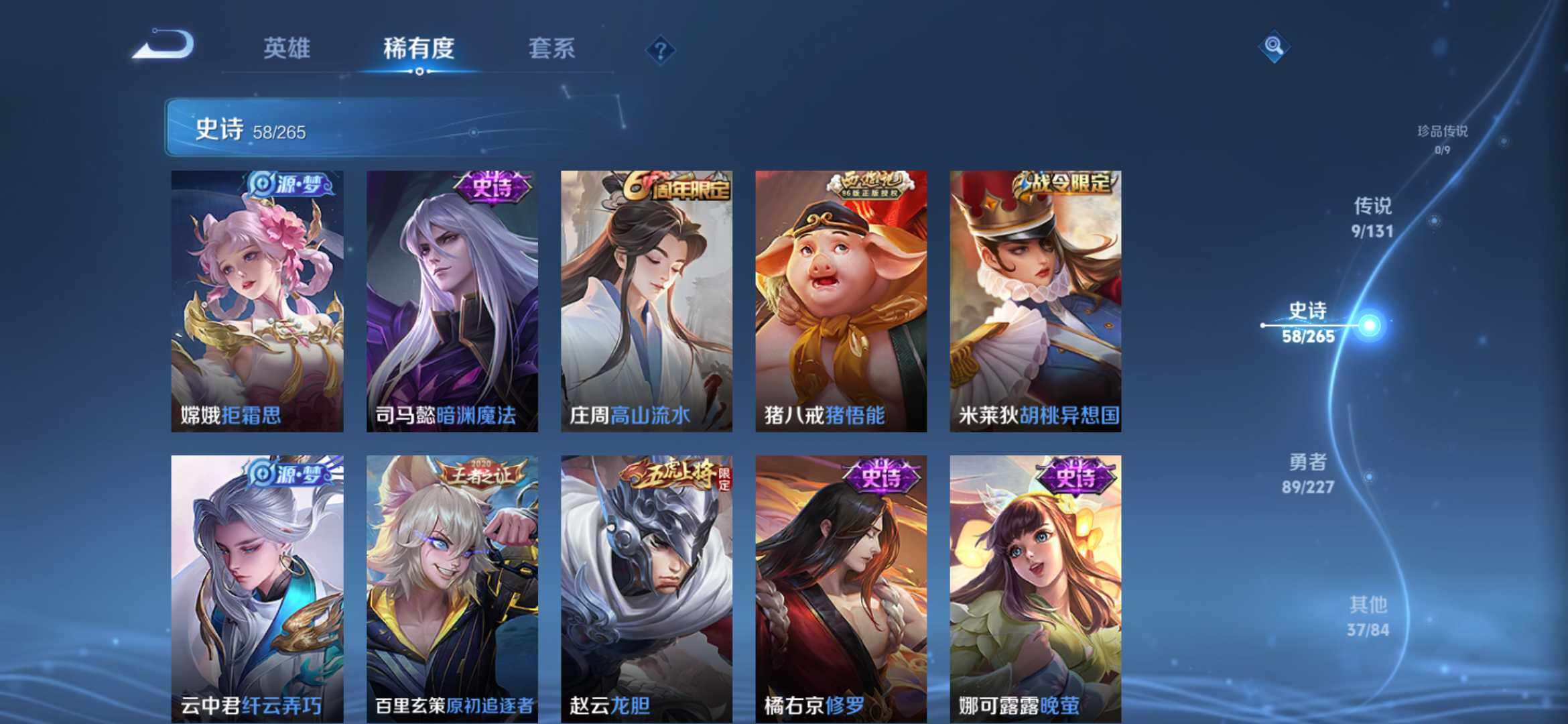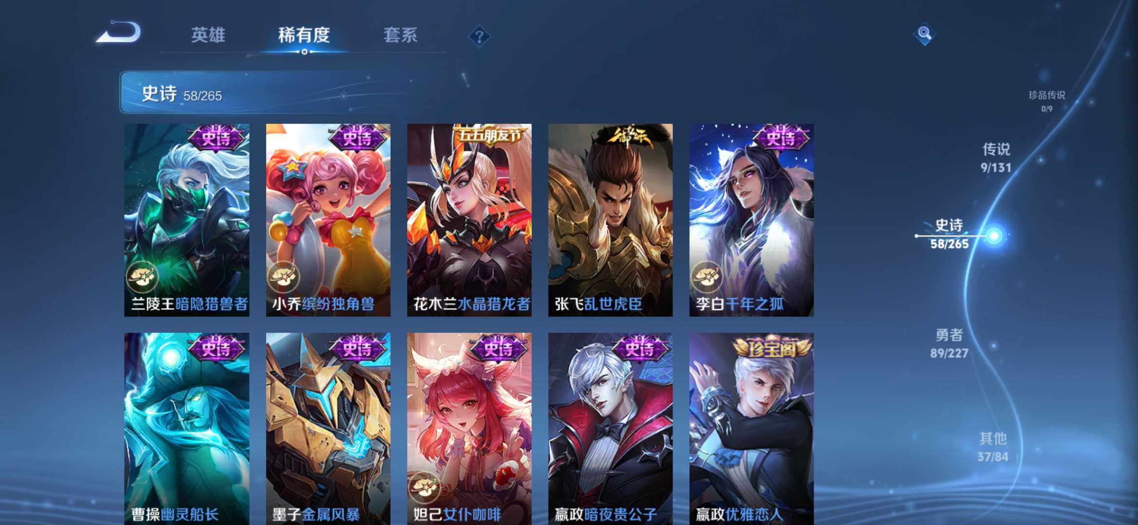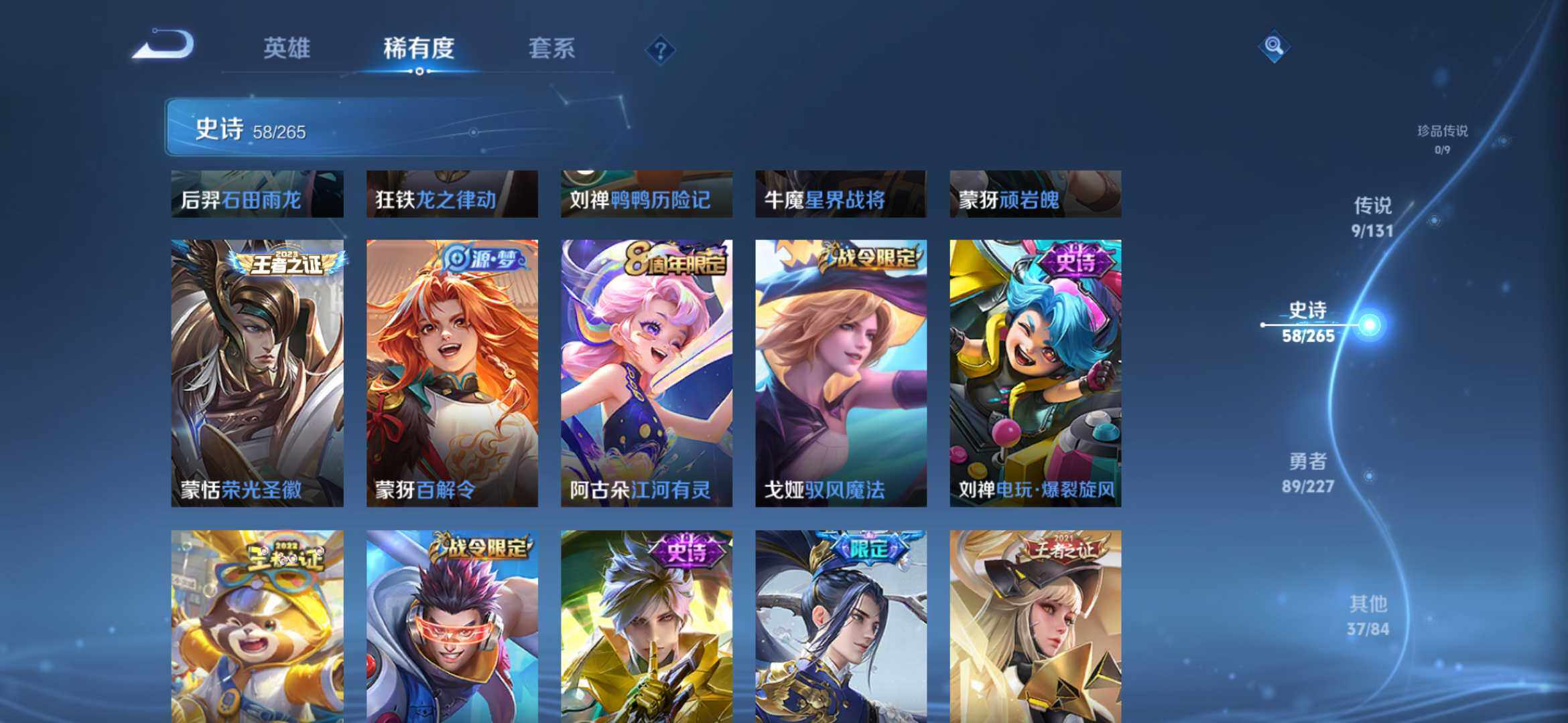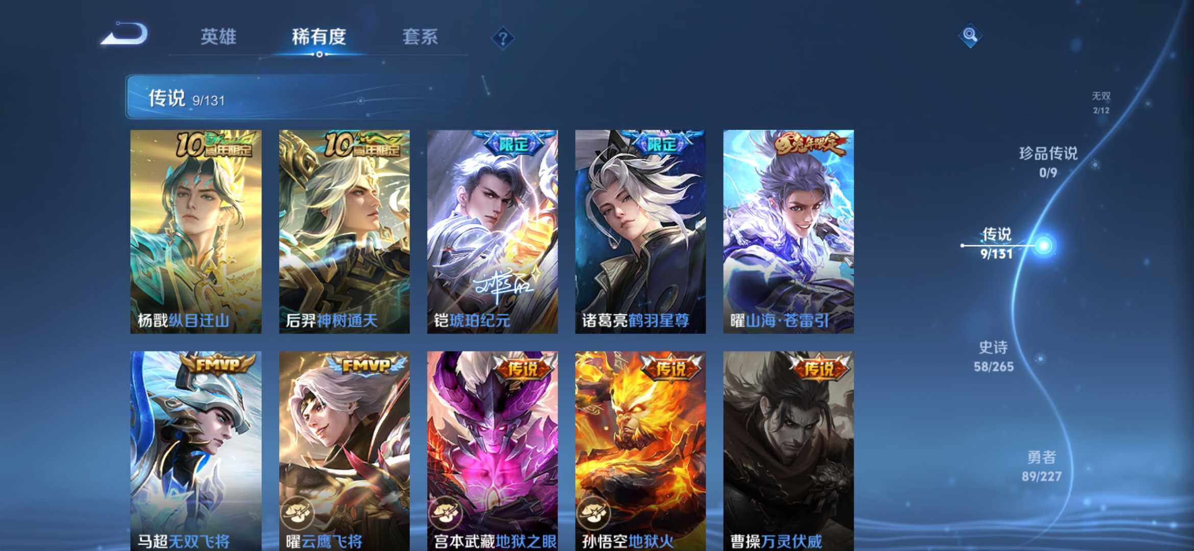 2300511-【196皮1典藏2无双9传说 弑呛猎影 碎月剑心 神罪 琥珀纪元 鹤羽星尊 山海苍雷引】安卓q-v7-最强王者段位-126英雄-196皮肤-1典藏皮肤-2无双-9传说-58史诗 【荣耀典藏】:韩信弑呛猎影 【无双皮肤】:李白碎月剑心,铠神罪 【传说皮肤】:杨戬纵目迁山,后羿神树通天,铠琥珀纪元,诸葛亮鹤羽星尊,曜山海苍雷引,马超无双飞将,曜云鹰飞将,宫本武藏地狱之眼,孙悟空地