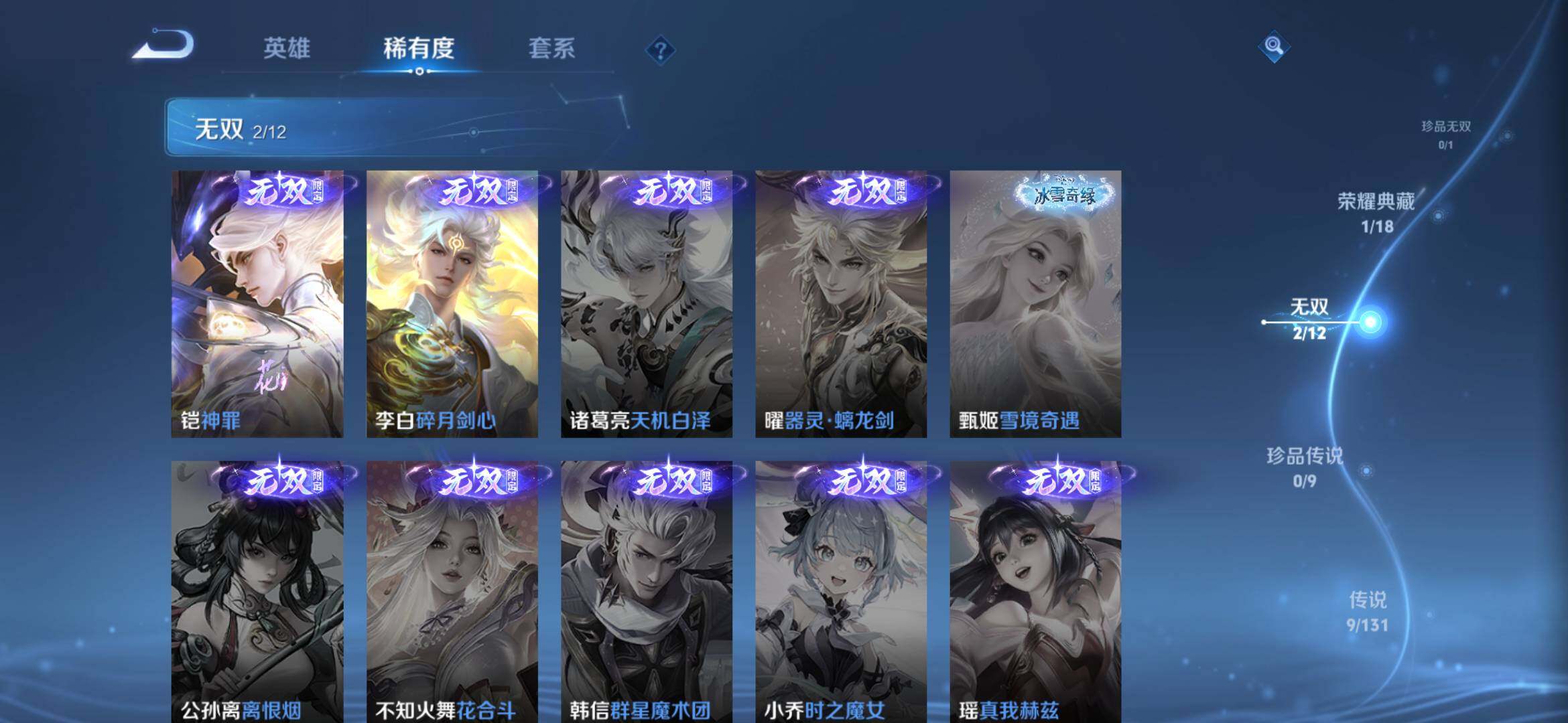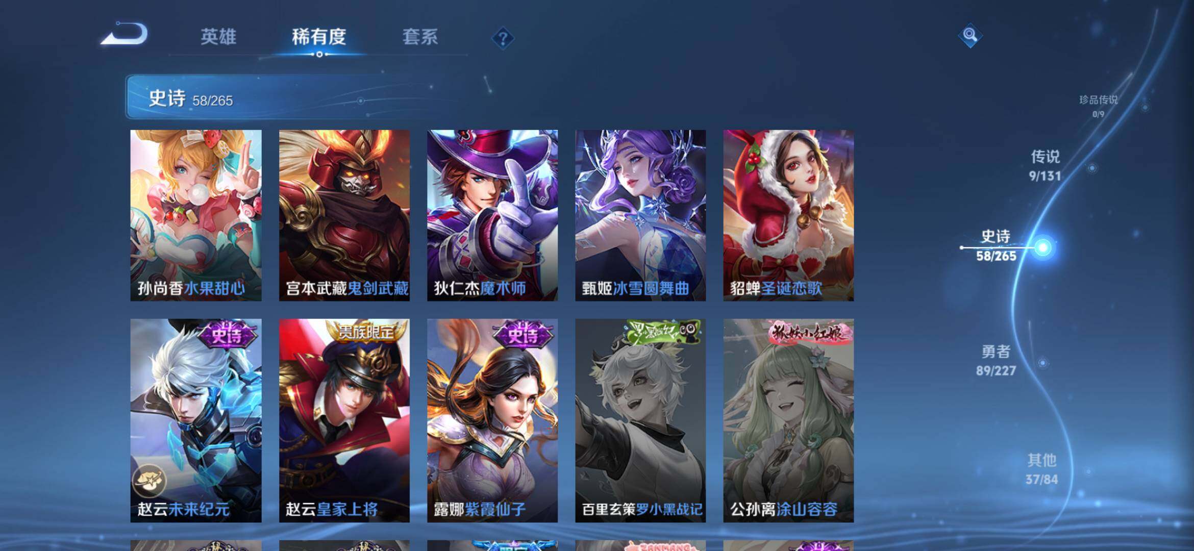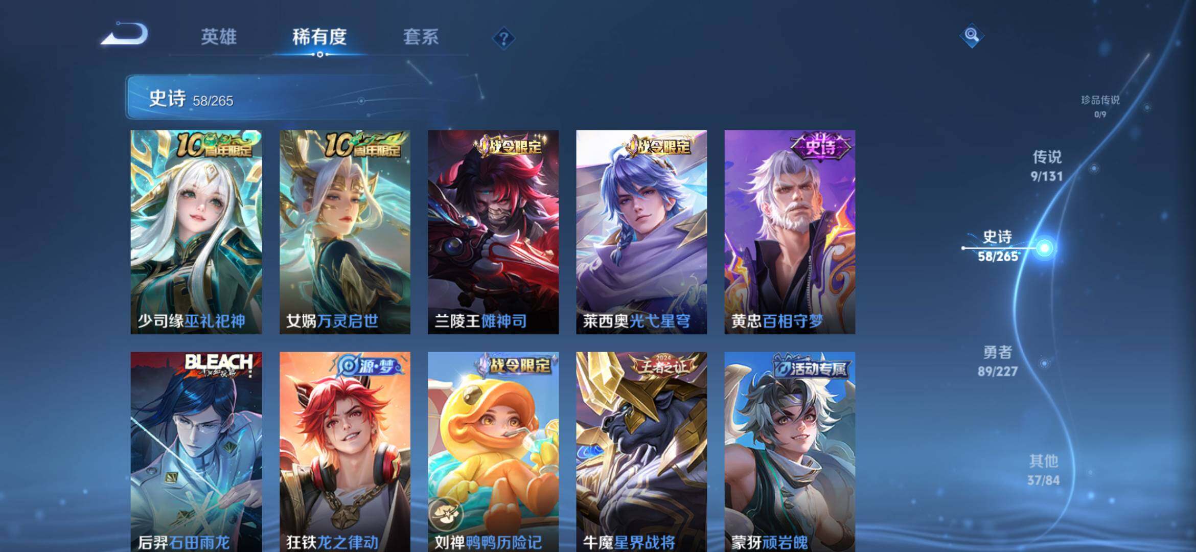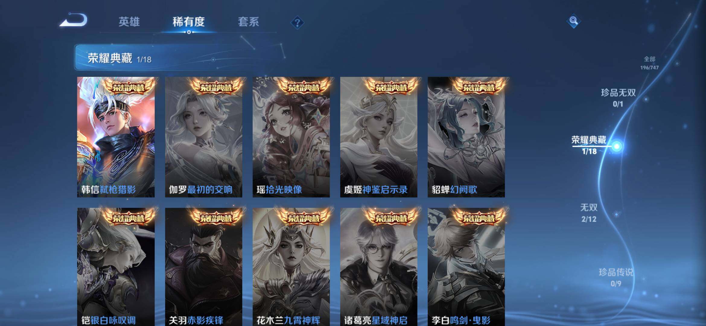 2300511-【196皮1典藏2无双9传说 弑呛猎影 碎月剑心 神罪 琥珀纪元 鹤羽星尊 山海苍雷引】安卓q-v7-最强王者段位-126英雄-196皮肤-1典藏皮肤-2无双-9传说-58史诗 【荣耀典藏】:韩信弑呛猎影 【无双皮肤】:李白碎月剑心,铠神罪 【传说皮肤】:杨戬纵目迁山,后羿神树通天,铠琥珀纪元,诸葛亮鹤羽星尊,曜山海苍雷引,马超无双飞将,曜云鹰飞将,宫本武藏地狱之眼,孙悟空地