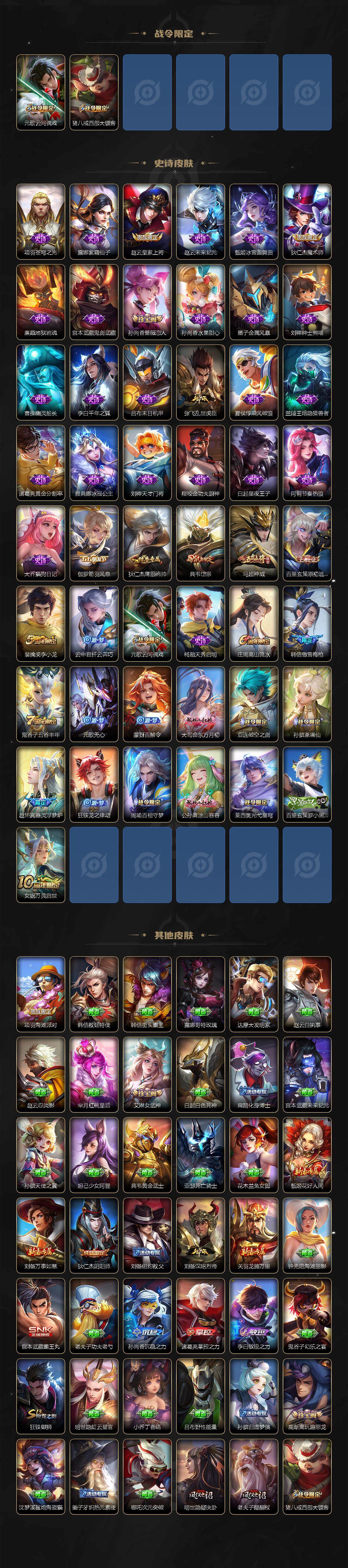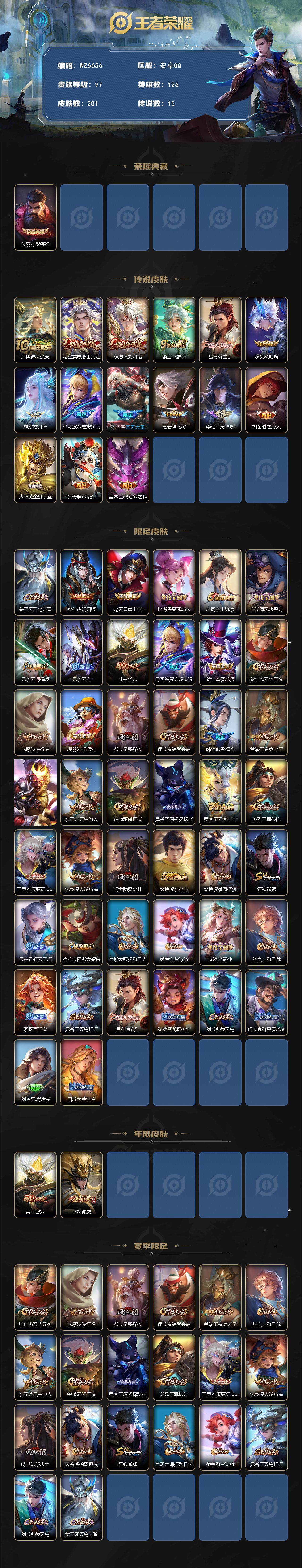 安卓q-v7-最强王者段位-126英雄-201皮肤-1典藏皮肤-15传说-49史诗 【英雄全皮】:孙权全皮,鬼谷子全皮 【荣耀典藏】:关羽赤影疾锋 【传说皮肤】:后羿神树通天,司空震愿照山河定,澜愿照九州拓,桑启鸣野蒿,吕布曦玄引,澜逐花归海,露娜霜月吟,马可波罗妄想实况,孙悟空齐天大圣,曜云鹰飞将,李信一念神魔,刘备时之恋人,达摩黄金狮子座,梦奇胖达荣荣,宫本武藏地狱之眼 【限定皮肤】:姜子牙天穹之誓,狄仁杰阴阳师,赵云皇家上将,孙尚香蔷薇恋人,庄周高山流水,高渐离玩趣恶龙,元歌云间偶戏,元歌无心,典韦岱宗,马可波罗妄想实况,狄仁杰魔术师,狄仁杰万华元夜,达摩沙漠行僧,项羽海滩派对,老夫子醍醐杖,程咬金演武夺筹,韩信傲雪梅呛,兰陵王金庭之子,孙悟空齐天大圣,李元芳云中旅人,钟馗驱傩正仪,鬼谷子原初探秘者,鬼谷子五谷丰年,苏烈千军破阵,百里玄策原初追逐者,沈梦溪大漠名商,明世隐疑决卦,裴擒虎李小龙,裴擒虎擒涛扼浪,狂铁御狮,云中君纤云弄巧,猪八戒西部大镖客,鲁班大师探海日志,桑启海盐诗旅,艾琳女武神,张良古海寻踪,蒙犽百解令,鬼谷子天穹祈灯,吕布曦玄引,沈梦溪龙舞盛年,刘邦剑破天穹,程咬金群星魔术团,刘备异域游侠,周瑜熔金海岸 【年限皮肤】:典韦岱宗,马超神威 【赛季限定】:狄仁杰万华元夜,达摩沙漠行僧,老夫子醍醐杖,程咬金演武夺筹,兰陵王金庭之子,张良古海寻踪,李元芳云中旅人,钟馗驱傩正仪,鬼谷子原初探秘者,苏烈千军破阵,百里玄策原初追逐者,沈梦溪大漠名商,明世隐疑决卦,裴擒虎擒涛扼浪,狂铁御狮,鲁班大师探海日志,桑启海盐诗旅,鬼谷子天穹祈灯,刘邦剑破天穹,姜子牙天穹之誓 【战令限定】:元歌云间偶戏,猪八戒西部大镖客 【史诗皮肤】:项羽苍穹之光,露娜紫霞仙子,赵云皇家上将,赵云未来纪元,甄姬冰雪圆舞曲,狄仁杰魔术师,廉颇地狱岩魂,宫本武藏鬼剑武藏,孙尚香蔷薇恋人,孙尚香水果甜心,墨子金属风暴,刘禅绅士熊喵,曹操幽灵船长,李白千年之狐,吕布末日机甲,张飞乱世虎臣,夏侯惇乘风破浪,兰陵王暗隐猎兽者,诸葛亮黄金分割率,雅典娜冰冠公主,刘禅天才门将,程咬金功夫厨神,白起星夜王子,阿轲节奏热浪,大乔猫狗日记,伽罗箭羽风息,狄仁杰鹰眼统帅,典韦岱宗,马超神威,百里玄策原初追逐者,裴擒虎李小龙,云中君纤云弄巧,元歌云间偶戏,杨戬天秀启明,庄周高山流水,韩信傲雪梅呛,鬼谷子五谷丰年,元歌无心,蒙犽百解令,大司命东方月初,亚连破空之剑,孙膑茶境仙,赵怀真器灵浮梦炉,狂铁龙之律动,周瑜百相守梦,公孙离涂山容容,莱西奥光弋星穹,百里玄策罗小黑战记,女娲万灵启世 【其他皮肤】:项羽海滩派对,韩信教廷特使,韩信街头霸王,露娜哥特玫瑰,达摩大发明家,赵云白执事,赵云忍炎影,芈月红桃皇后,艾琳女武神,白起白色死神,扁鹊化身博士,宫本武藏未来纪元,孙膑天使之翼,妲己少女阿狸,典韦黄金武士,亚瑟死亡骑士,花木兰兔女郎,甄姬花好人间,刘备万事如意,狄仁杰阴阳师,刘备纽约教父,刘备汉昭烈帝,关羽龙腾万里,钟无艳海滩丽影,宫本武藏霸王丸,老夫子功夫老勺,孙尚香沉稳之力,诸葛亮掌控之力,李白敏锐之力,鬼谷子幻乐之宴,狂铁御狮,明世隐虹云星官,小乔丁香结,吕布野性能量,孙膑归虚梦演,高渐离玩趣恶龙,沈梦溪鲨炮海盗猫,姜子牙炽热元素使,哪吒次元突破,明世隐疑决卦,老夫子醍醐杖,猪八戒西部大镖客,狂铁特工战影,鬼谷子原初探秘者,狄仁杰万华元夜,刘禅秘密基地,杨戬次元傲视,程咬金演武夺筹,张良缤纷绘卷,钟馗驱傩正仪,鲁班大师乓乓大师,苏烈千军破阵,达摩沙漠行僧,程咬金无双福将,兰陵王金庭之子,刘禅唤灵魔甲,沈梦溪大漠名商,蒙恬蔚蓝守将,李元芳云中旅人,桑启海盐诗旅,海月幻泉雾影,猪八戒潮玩探月行,裴擒虎擒涛扼浪,太乙真人劲辣红锅,鲁班大师探海日志,李元芳妄想特派,张良古海寻踪,钟无艳聚星闪耀,后羿完美运算,鬼谷子天穹祈灯,廉颇功夫炙烤,沈梦溪龙舞盛年,刘邦剑破天穹,程咬金群星魔术团,刘备异域游侠,姜子牙天穹之誓,周瑜熔金海岸,孙悟空神迹守卫,盘古敬我三分,东皇太一噬灭天穹,苍苍林狼骑,太乙真人谧流熔炉,典韦铁骨偃魂,马超访茗客,西施雪境奇遇,姜子牙星梦巡礼,达摩爆裂喵拳,明世隐景韶洛都,戈娅玫蓝誓约,钟馗虚灵犬护,苏烈春野闲踪,张良灵野札记,阿古朵布丁狗之约,白起死霸装,甄姬逆浪荇歌,云中君云械蓝图,孙策百相守梦,庄周锦麟游梦,莱西奥踏浪烽翎,鬼谷子克喵,哪吒罗小黑战记,亚瑟荣光之誓,明世隐往忆晖光,孙权径山谋武,艾琳鹤鸣心笺,曹操逐霄之志,鲁班七号木偶奇遇记,花木兰剑舞者,王昭君精灵公主,张良一千零一夜,小乔万圣前夜,孙悟空西部大镖客,李元芳特种部队,刘邦圣殿之光,蔡文姬蔷薇王座,马可波罗激情绿茵,诸葛亮星航指挥官,东皇太一东海龙王,干将莫邪第七人偶,鬼谷子阿摩司公爵,铠龙域领主,百里守约绝影神呛,百里玄策威尼斯狂欢,裴擒虎街头旋风,元歌午夜歌剧院,孙策海之征途,司马懿魇语军师,伽罗花见巫女,李信灼热之刃,上官婉儿修竹墨客,曜归虚梦演,蒙犽归虚梦演,蒙恬秩序猎龙将,澜孤猎,司空震启蛰,金蝉前尘 【内测皮肤】:孙尚香蔷薇恋人,艾琳女武神,高渐离玩趣恶龙,狂铁特工战影 【营地id】:1702355303