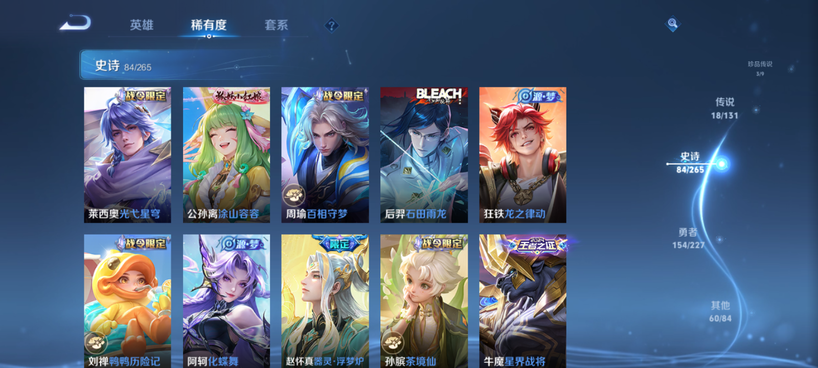【王者荣耀】【lywz22844】珍品无双0 典藏1 无双0 珍品传说3 传说18 史诗84 英雄126 皮肤320 贵族8级 荣耀典藏:赤影疾锋__珍品传说:怪盗基德|酷洛米之心|黑崎一护__传说皮肤:鸣野蒿|绛天战甲|炽阳神光|启明星使|云霓雀翎|黄金狮子座|狄仁杰-超时空战士|绯月行|浮生妄|燃星之曲|妄想实况|永曜之星|乘龙·淬吴钩|山海·苍雷引|张飞-百相守梦|幻光神呛|愿照·岁时盈|神树通天__稀有限定:大圣娶亲|蔷薇恋人|蜜橘之夏|李小龙|大漠名商|地狱燃心|古海寻踪|海滩派对|海盐诗旅|胡桃夹子|胡桃异想国|皇家上将|混沌棋|剑破天穹|江河有灵|金庭之子|魔术师|奇幻香踪|擒涛扼浪|青焰无极|穷奇|燃音魔法|荣光圣徽|沙漠行僧|朔风刀|探海日志|饕餮|醍醐杖|天穹祈灯|无心|五谷丰年|纤云弄巧|星界游侠|演武夺筹|疑决卦|阴阳师|游园惊梦|驭风魔法|遇见飞天|御旌|御銮|御狮|原初追逐者|云间偶戏|逐梦之星|逐梦之影|暗夜贵公子|暗夜猫娘|暗隐猎兽者|缤纷独角兽|冰雪圆舞曲|乘风破浪|鬼剑武藏|黄金分割率|箭羽风息|节奏热浪|金属风暴|莱西奥-末日机甲|乐园奇幻夜|李元芳-蔬乡物语|龙骑士|吕布-末日机甲|魅力维加斯|魅语|梦奇-顽趣|青蛇|圣诞狂欢|圣诞恋歌|鲁班七号-蔬乡物语|水果甜心|水晶猎龙者|孙策-猫狗日记|天秀·启明|天秀·音浪|晚萤|赵云-未来纪元|星夜王子|雪上飞焰|摇滚巨星|鹰眼统帅|幽灵船长|逐浪之夏|紫霞仙子|百里守约-百相守梦|老夫子-百相守梦|星界特工|噬灭天穹|敬我三分|破空之剑|东方月初|顽岩魄|蔡文姬-夏日便利店|虞姬-夏日便利店|天穹之誓|怒海争锋|曙光守护者|心灵战警|千年之狐|舞动绿茵|特工魅影|心灵骇客|茶境仙|星界战将|谧流熔炉|器灵·浮梦炉|化蝶舞|御霄|烛龙|重明|云中旅人|玲珑珍味|朔望之晖|孙悟空-神迹守卫|流音漫舞|访茗客|暖冬·兔眠|灵卜魔法|落雪兰心|刘禅-鸭鸭历险记|沈梦溪-鸭鸭历险记|龙之律动|布丁狗之约|虚灵犬护|石田雨龙|逆浪荇歌|孙策-百相守梦|周瑜-百相守梦|涂山容容|光弋星穹|往忆晖光|荣光之誓|鹤鸣心笺__优质皮肤:尼罗河女神|一千零一夜|创世神祝|年年有余|埃及法老|孤猎|木偶奇遇记|午夜歌剧院|露花倒影|未来旅行|激情绿茵|海之征途|天启骑士|碧珀绯影|秩序猎龙将|锦衣卫|森|超能战警|英喵野望|维京掠夺者|海军大将|绯红之刃|启蛰|伊势巫女|画中游|威尼斯狂欢|第七人偶|潮流仙人|芝加哥教父|街头旋风|绝影神呛|地府判官|幸存者|赤焰之缨|福禄兄弟|隐刃|前尘|特种部队|精灵王|剑舞者|范海辛|星航指挥官|龙域领主|爱与和平|花间舞|魇语军师|极冰防御线|花见巫女|东海龙王|蔷薇王座|灼热之刃|圣殿之光|战争女神|加勒比小姐|精灵公主|修竹墨客|怪诞之夜|动物派对|长夏之忆|异域游侠|暗都幽影|功夫炙烤|幻夜行动|聚星闪耀|潮玩探月行|虎啸剑宗|瓷语鉴心|秘密基地|次元突破|鲨炮海盗猫|野性能量|丁香结|虹云星官|守护之力|幻乐之宴|功夫老勺|幻想奇妙夜|海滩丽影|阿尔法小队|兔女郎|死亡骑士|黄金武士|少女阿狸|天使之翼|宫本武藏-未来纪元|忍·炎影|爱心护理|街头霸王|教廷特使|鸿运当头|金色潮汐|时空谍影|决胜大满贯|破局者|王牌新星|零食大作战|西部游侠|太极少年|牛运亨通|潮玩造梦师|胡桃狂想曲|潮玩牛仔|铁甲之心|次元傲视|无尽征程|黑桃队长|时尚教父|白色死神|致命风华|哥特玫瑰|魅影绮裳|西施-雪境奇遇|金福满堂|星梦巡礼|灵卦秘语|爆裂喵拳|景韶洛都|缤纷绘卷|掌控之力|雾都夜雨|逐霄战戟|铁骨偃魂|龙腾万里|霸王丸|乱世虎臣|敏锐之力|孙悟空-西部大镖客|牛魔-西部大镖客|热血海滩|龙舞盛年|汉昭烈帝|乓乓大师|万事如意|太乙真人-圆桌骑士|沉稳之力|程咬金-群星魔术团|完美运算|化身博士|花好人间|熔金海岸|春野之旅|无尽旅途|万象初新|苍林狼骑|蔚蓝守将|劲辣红锅|特工战影|炽热元素使|妄想特派|秘证寻踪|春野闲踪|命运加冕|潮玩士官长|小满鸭|死霸装|无双福将|锦麟游梦|踏浪烽翎|戏梦巡演|落日弦歌|克喵|青衿临川|径山谋武|极光幻客__贵族等级:贵族8级__王者段位:至圣王者320皮1典藏3珍品18传说 【典藏】1 赤影疾锋 【珍品传说】3怪盗基德, 黑崎一护,酷洛米之心 【传说】18 启明星使,神树通天,超时空战士,乘龙·淬吴钩,百相守梦,炽阳神光,绛天战甲,浮生妄,山海·苍雷引,黄金狮子座,永曜之星,绯月行,愿照·岁时盈,云霓雀翎,幻光神呛,鸣野蒿,妄想实况,燃星之曲