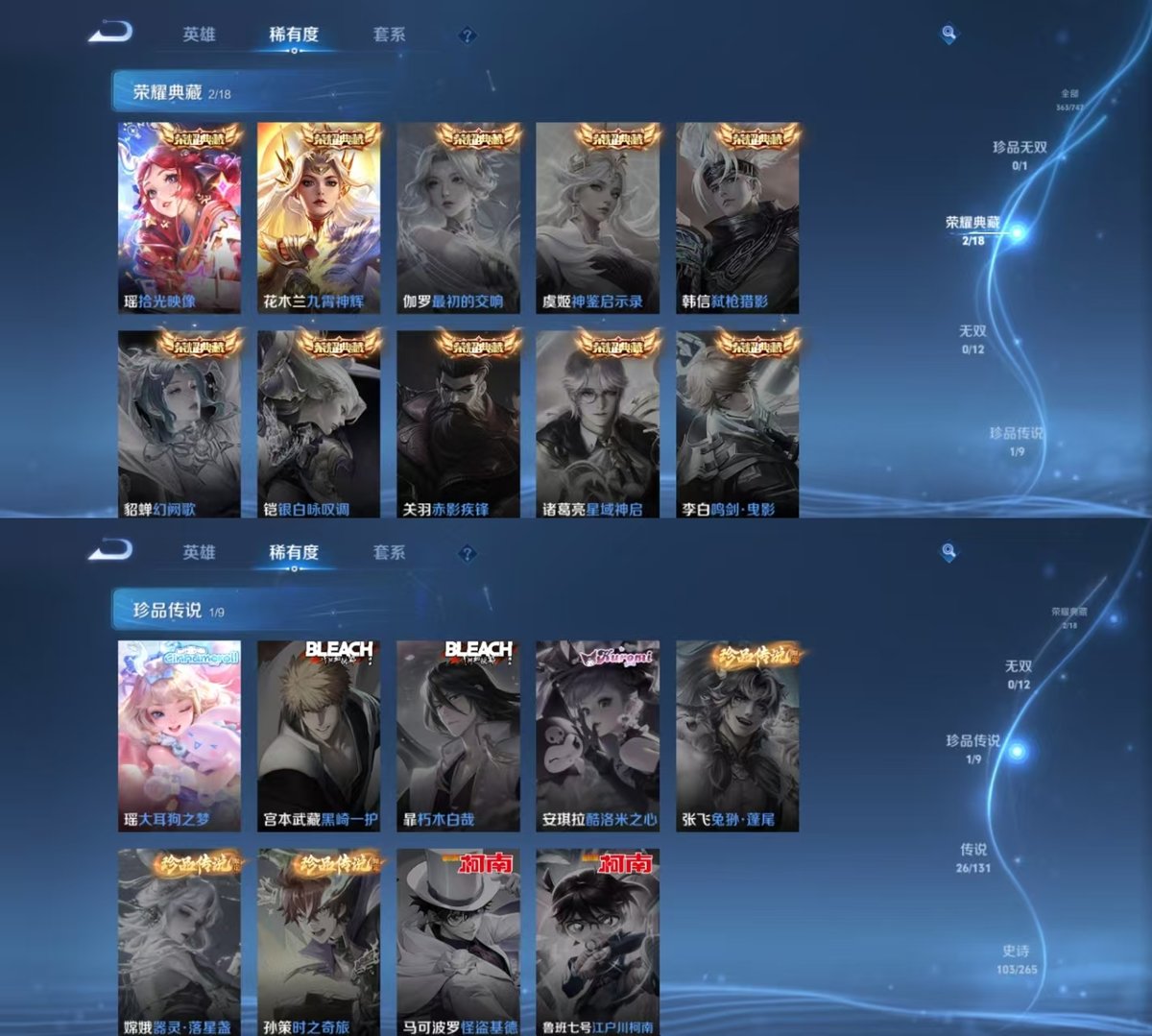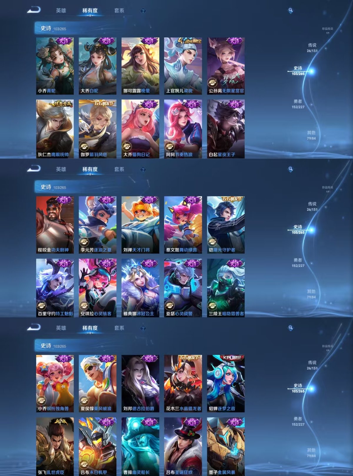 _2300602-实名:可修改贵族等级:v8英雄数:127皮肤数:363荣耀水晶:九霄神辉拾光映像珍品传说:大耳狗之梦传说皮:云鹰飞将炽阳神光末日机甲-孙尚香仲夏夜之梦音你心动-小乔游龙清影挚爱花嫁无双飞将碎云记忆之芯妄想实况妄想奇谈大乔-时之奇旅永恒水手月亮小动物乐团霜月吟落雪白狼朵莉亚心动手记云诺千山限定皮:李小龙祈雪灵祝梁祝逐梦之音天狼绘梦者寅虎·心曲时之祈愿-瑶玉兔公主前尘镜星穹之声五谷丰年神器·万象笔山海·碧波行至美·化雀舞至美·乘鲤谣鸣野蒿