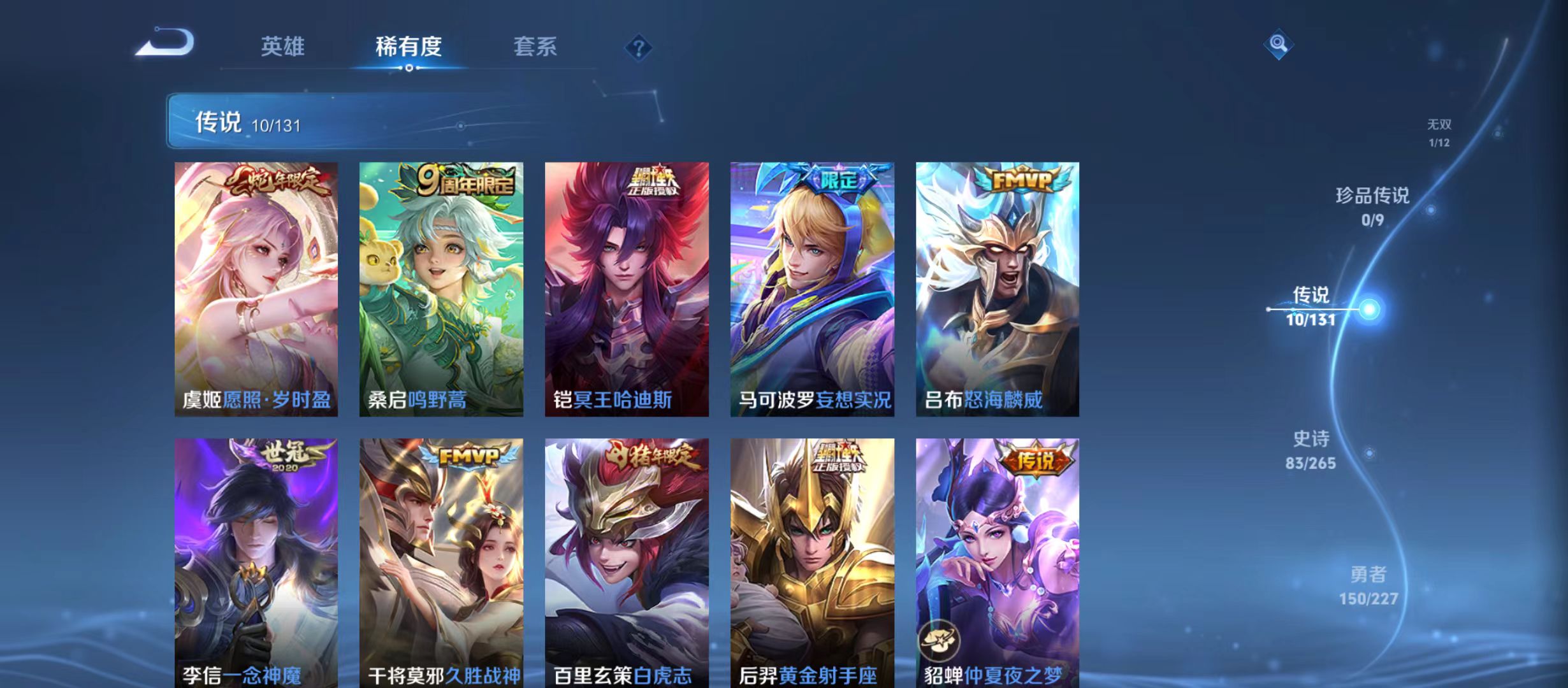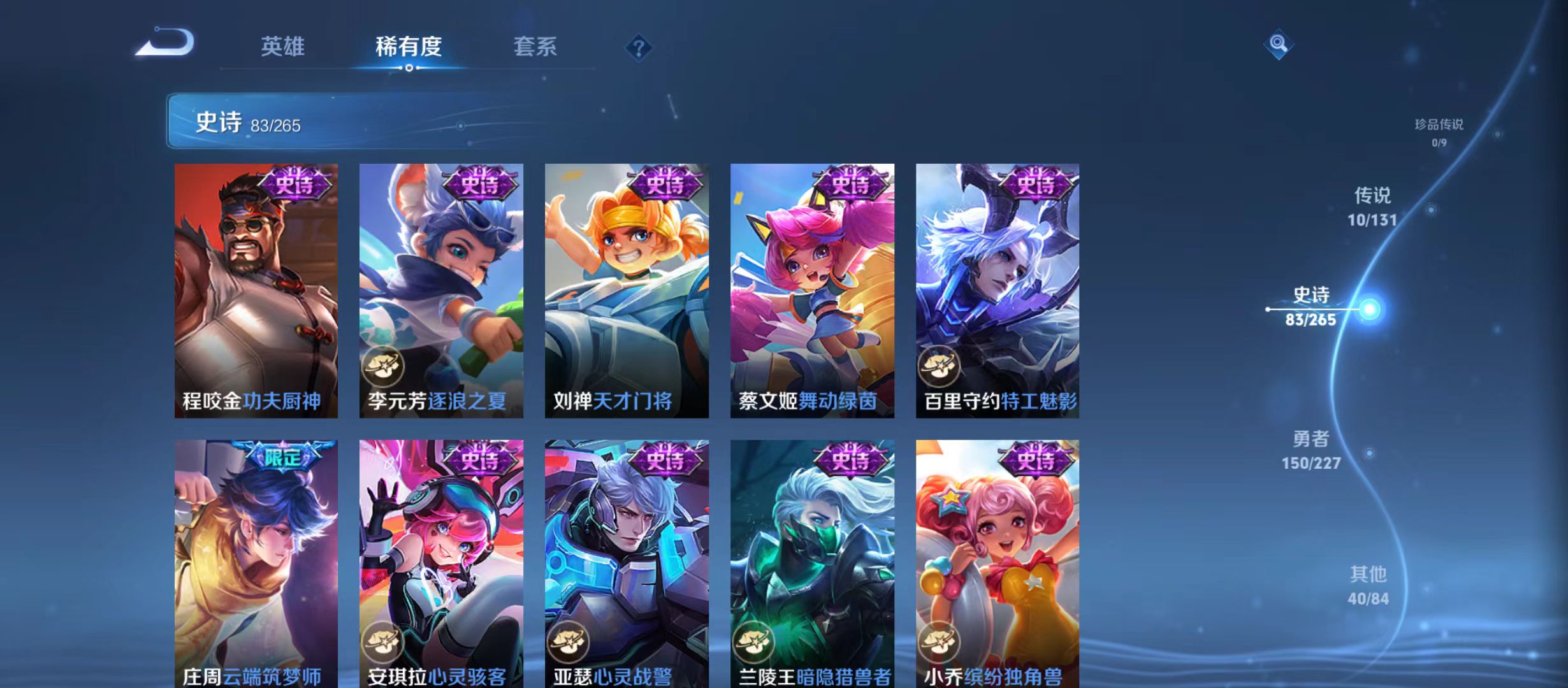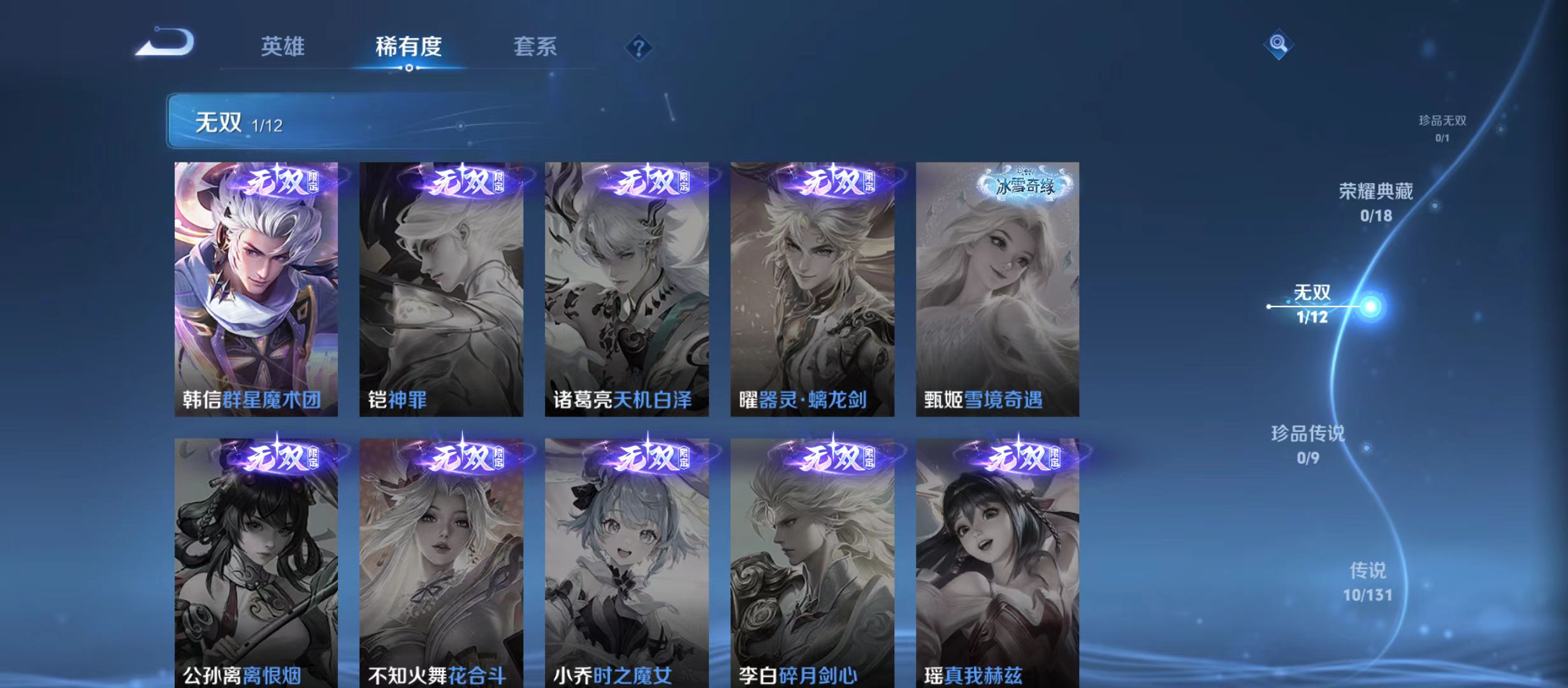 txwz17181-v7 284皮肤 1无双 群星魔术团 10传说愿照·岁时盈,怒海麟威,妄想实况,鸣野蒿,冥王哈迪斯,黄金射手座,仲夏夜之梦,久胜战神,白虎志,一念神魔 83史诗