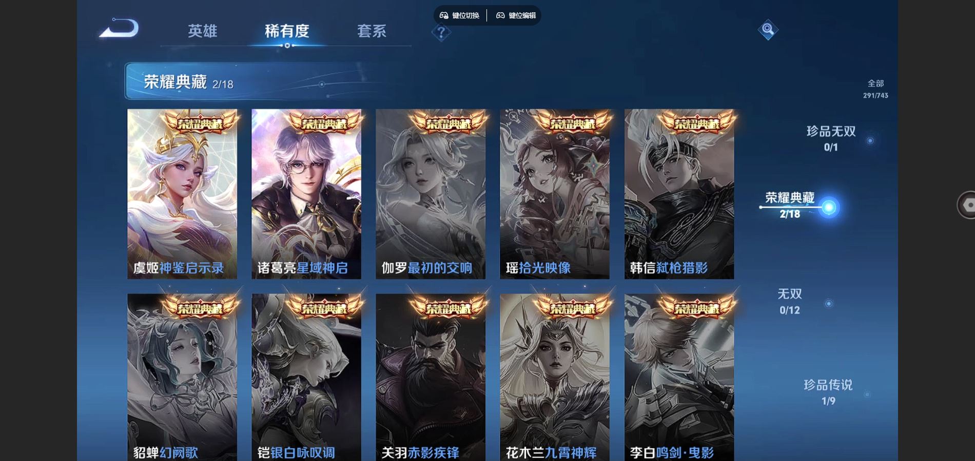 2300699-291皮肤2典藏1珍品传说11传说 王者印记18 发育路24段 3星传说 幽冥火 未来机甲 金色仲夏夜【典藏】神鉴启示录 星域神启 【珍品传说】兔狲蓬尾 【传说】惊梅引 启明星使 寅虎瑞焰 寅虎赤拳 无尽星芒 音你闪耀 怒海麟威 地狱火 久胜战神 一念神魔 末日机甲女【热门】至尊宝 山海玄木吟 天狼狩猎者 天狼征服者 霸王别姬女 后羿如梦令 大圣娶亲 傲雪梅呛 引擎之心 拒