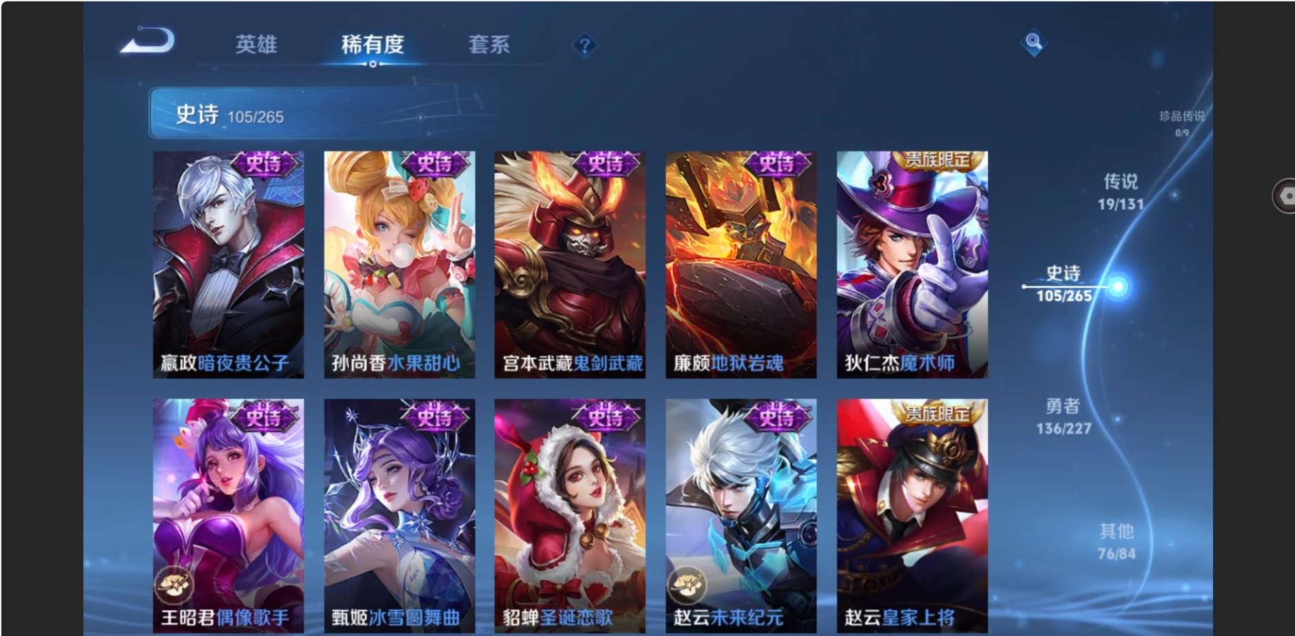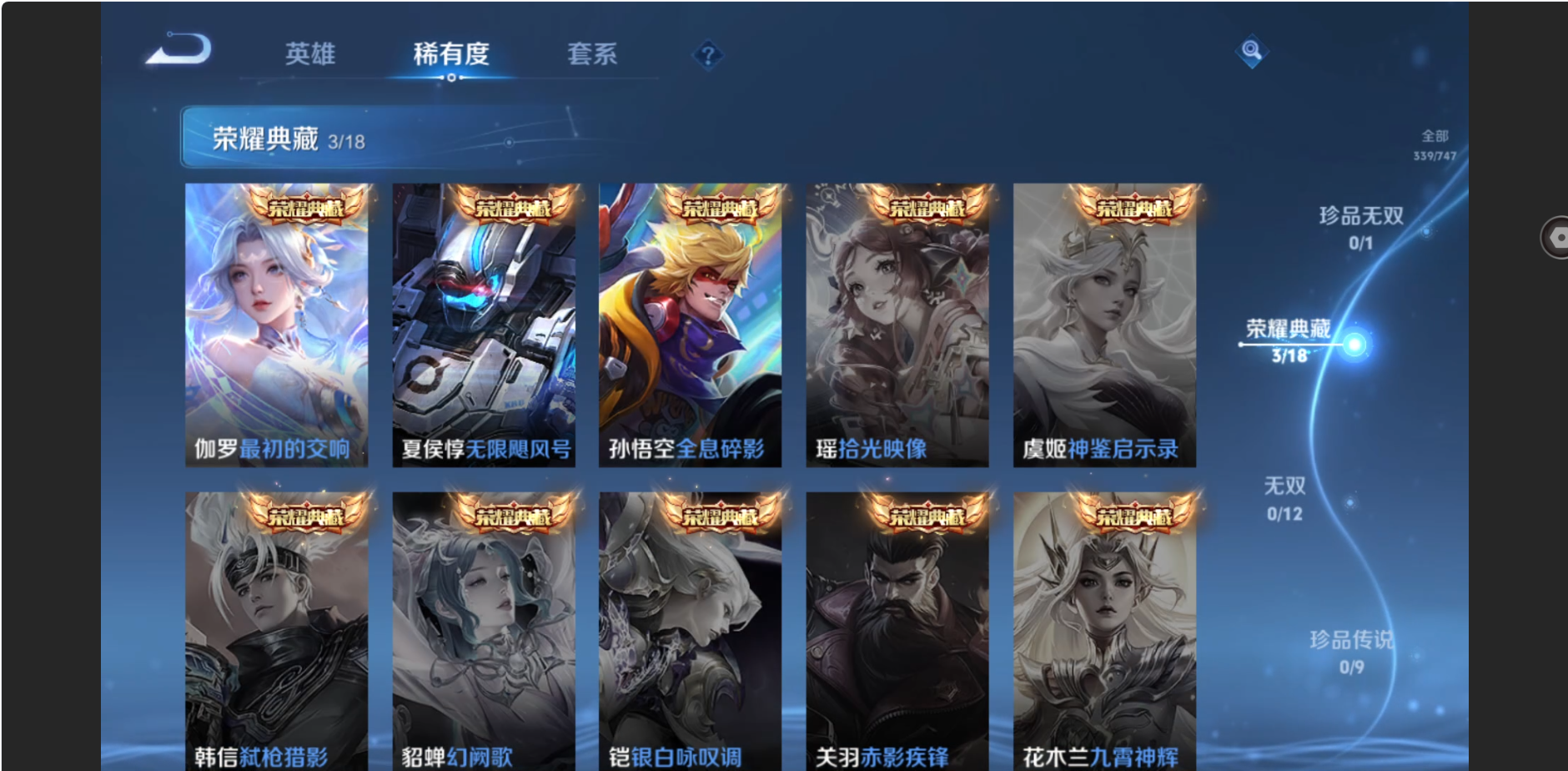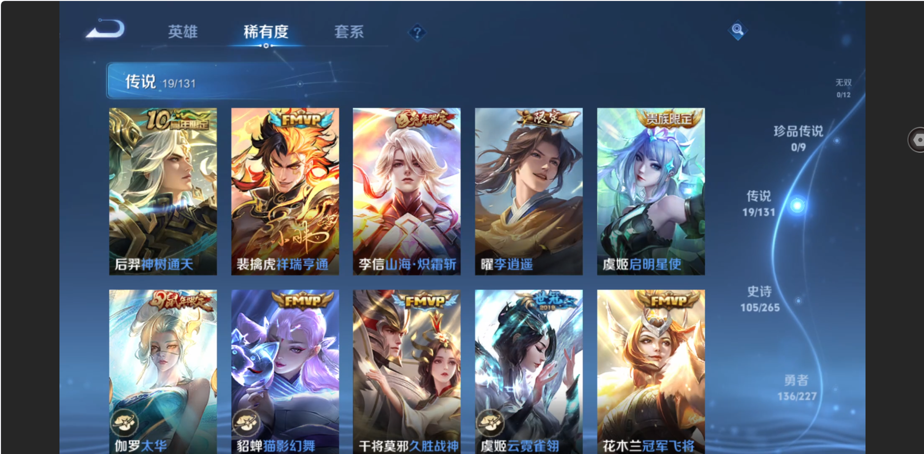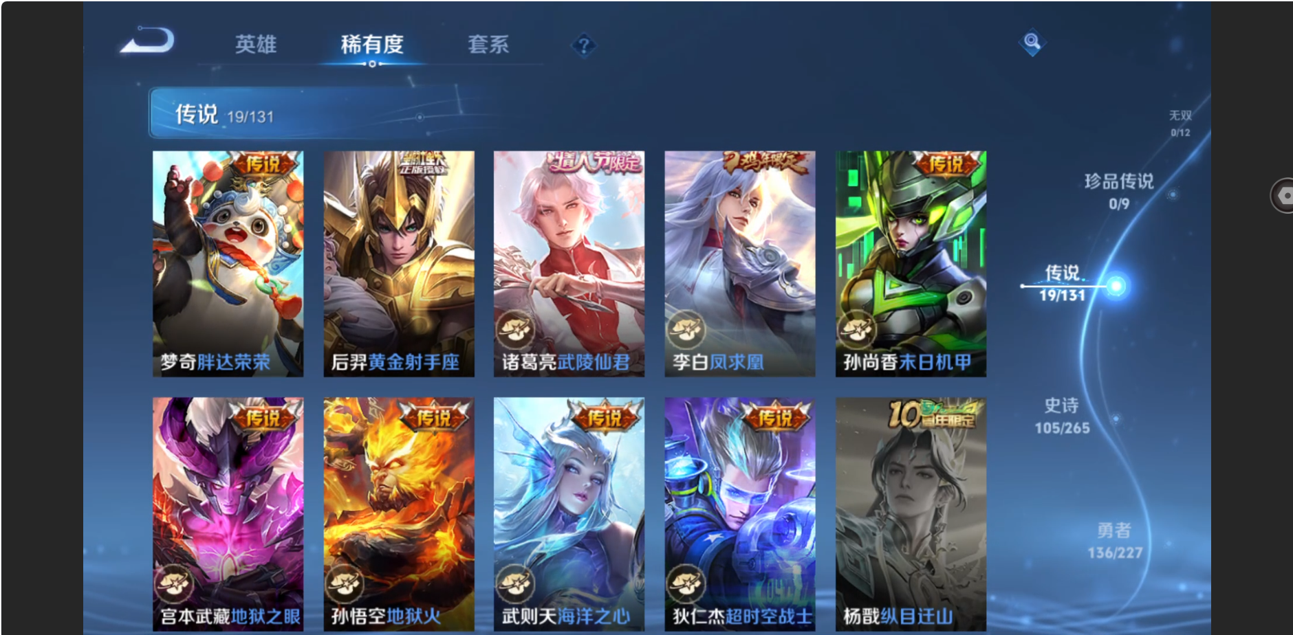 v9【19传说 3典藏 李 武则天 凤求凰 至尊宝】安卓qq/最强王者/339皮肤/126英雄/3典藏/19传说/105史诗/10稀有英雄【3 星传说皮肤】未来机甲 孙尚香幽冥之眼 宫本武藏星际治安官 狄仁杰【3 典藏皮肤】全息碎影 孙悟空无限飓风号 夏侯惇最初的交响 伽罗【19 传说皮肤】胖达荣荣 梦奇启明星使 虞姬云霓雀翎 虞姬李 曜地狱火 孙悟空凤求凰 李白