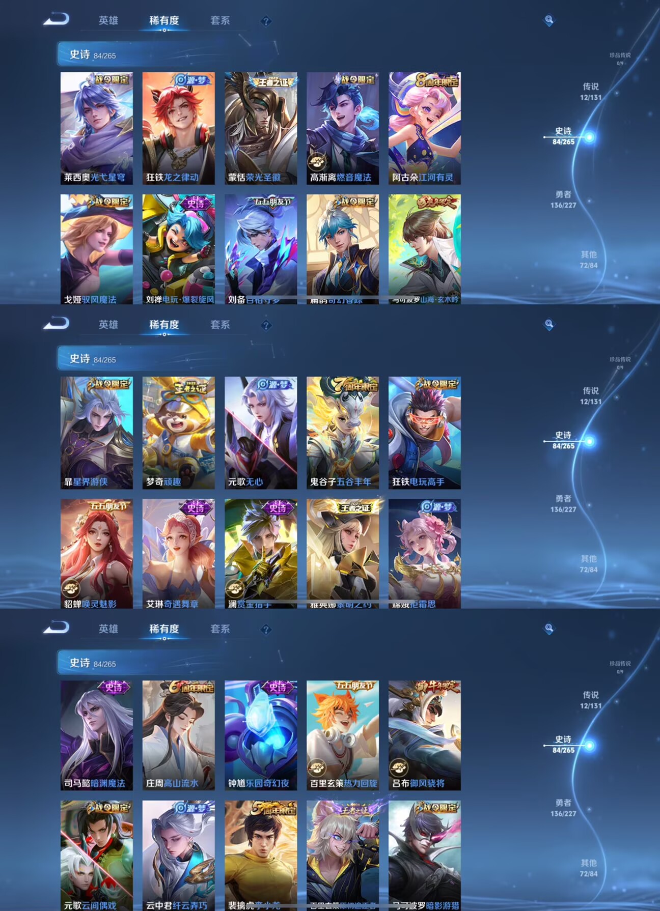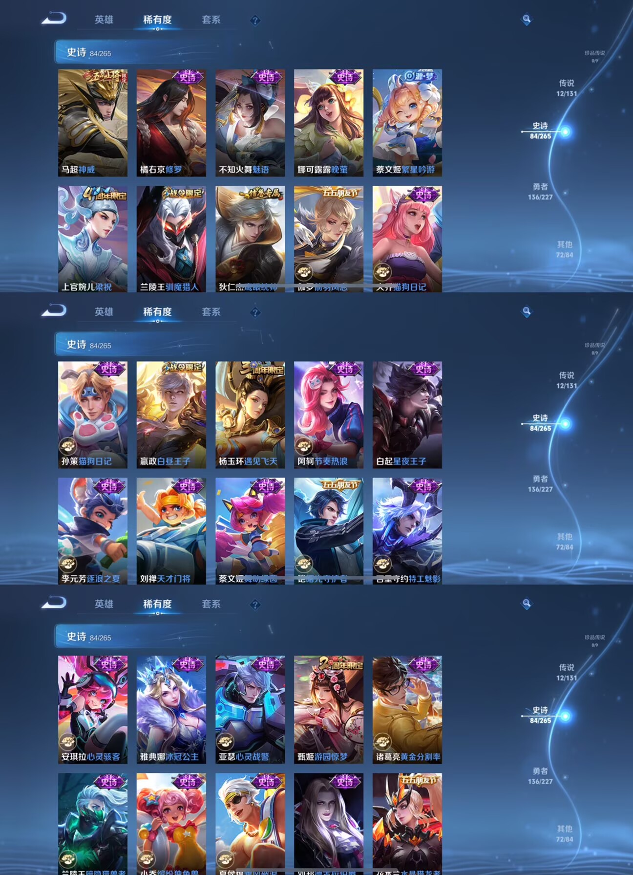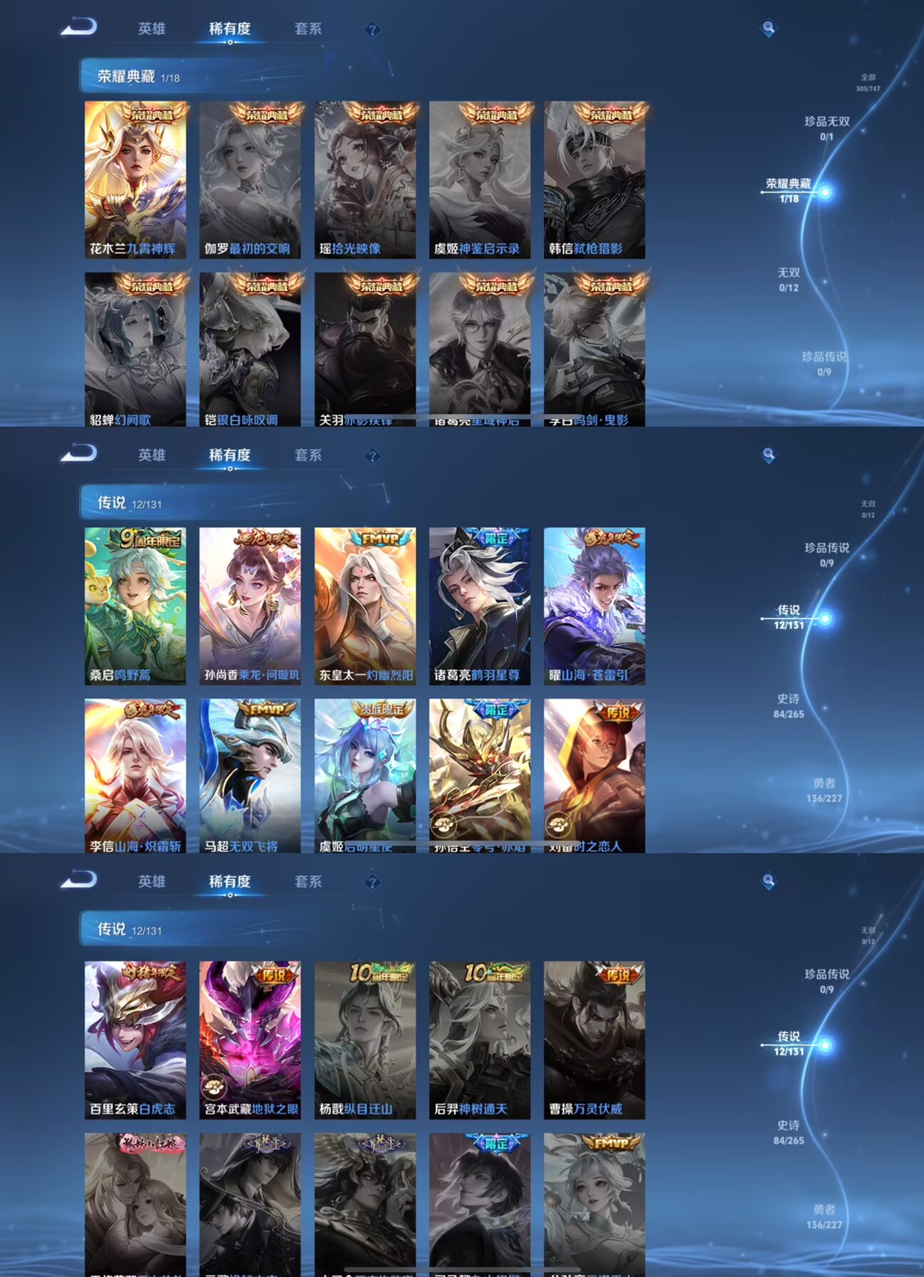125英雄-305皮肤-【v8 传说12 典藏1 星传说3 打野55段 万战金标司马懿 万战金标孙悟空 万战金标司空震 万战金标橘右京 万战金标刘婵】苹果q-305皮肤-125英雄 【典藏皮肤】 九霄神辉 【传说皮肤】 鹤羽星尊 灼幽烈阳 鸣野蒿 乘龙·问璇玑 山海·苍雷引 山海·炽霜斩 无双飞将 白虎志 地狱之眼 时之恋人 零号·赤焰 启明星使 【史诗皮肤】 电玩小子 御风骁将 神威 至尊宝 引擎之
