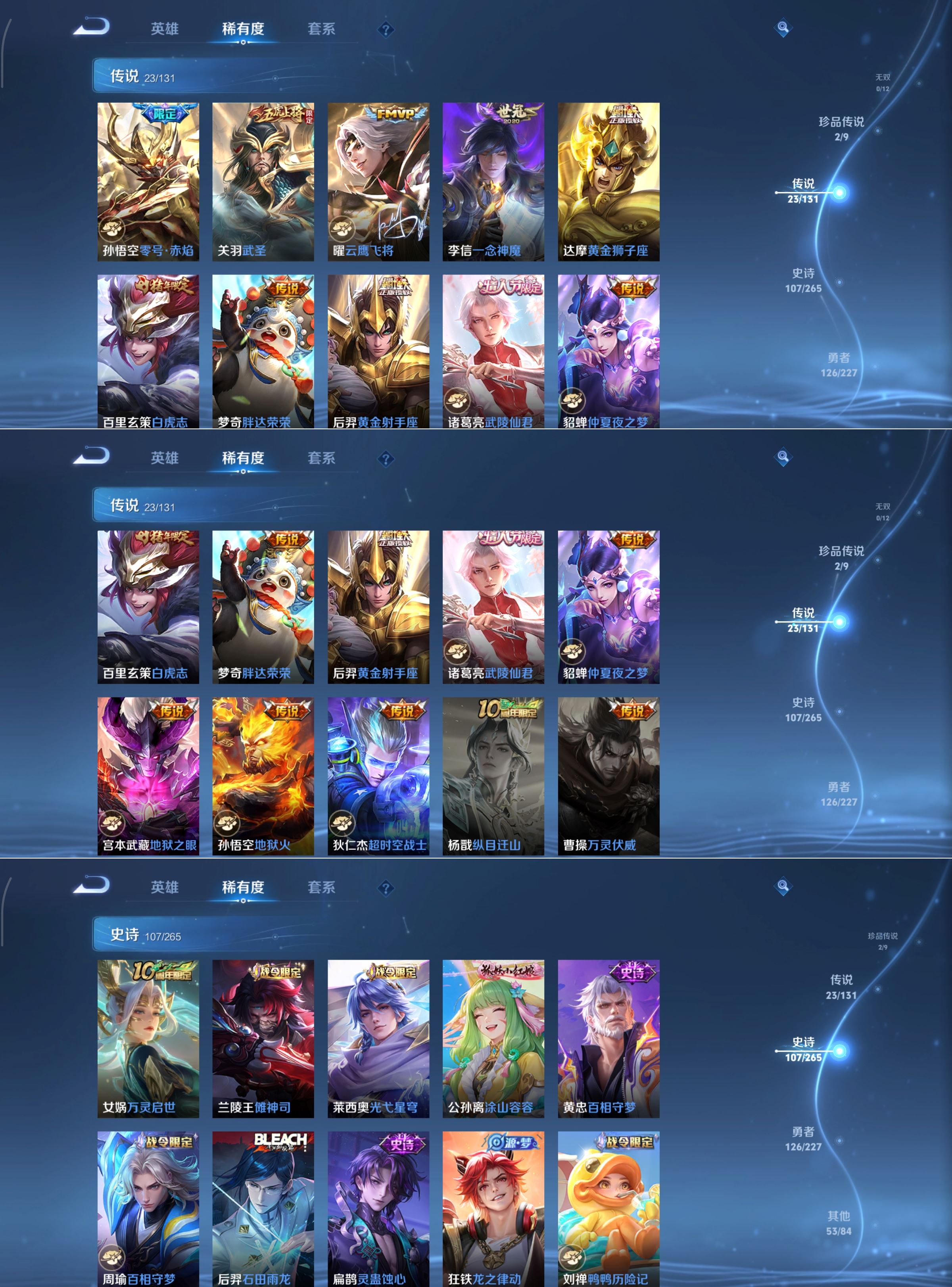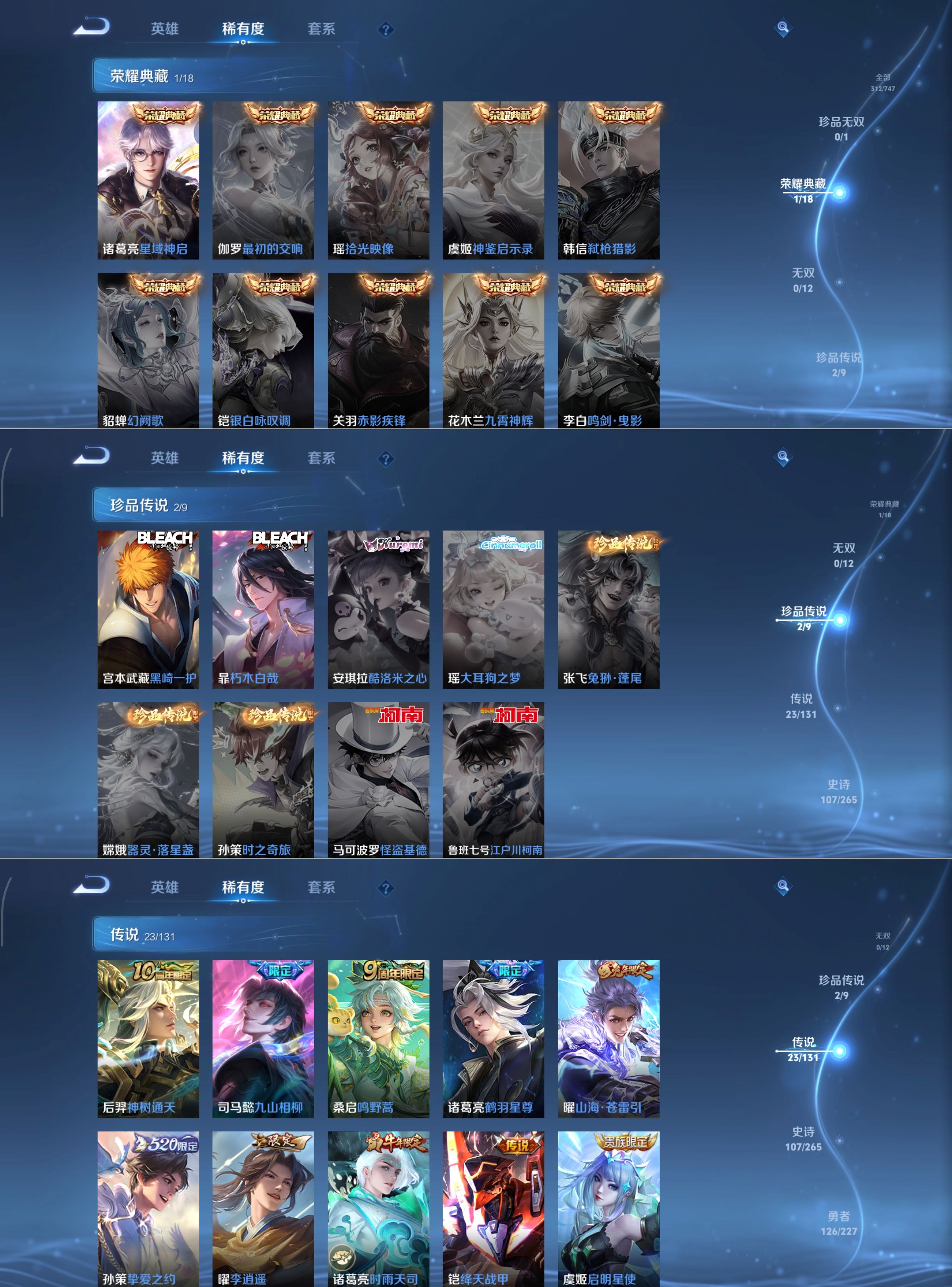 【v8 传说23 典藏1】安卓q-312皮肤-124英雄 【珍品传说】 黑崎一护 朽木白哉 【典藏皮肤】 星域神启 【传说皮肤】 鹤羽星尊 鸣野蒿 灵蛊蚀心 神树通天 山海·苍雷引 挚爱之约 白虎志 黄金狮子座 超时空战士 仲夏夜之梦 地狱之眼 武圣 黄金射手座 绛天战甲 一念神魔 胖达荣荣 地狱火 零号·赤焰 云鹰飞将 李 启明星使 武陵仙君 时雨天司 【史诗皮肤】 岱宗