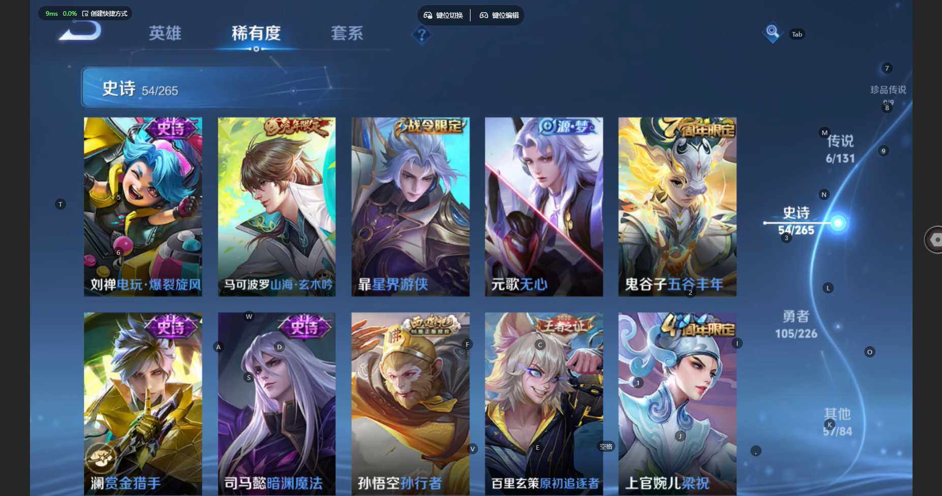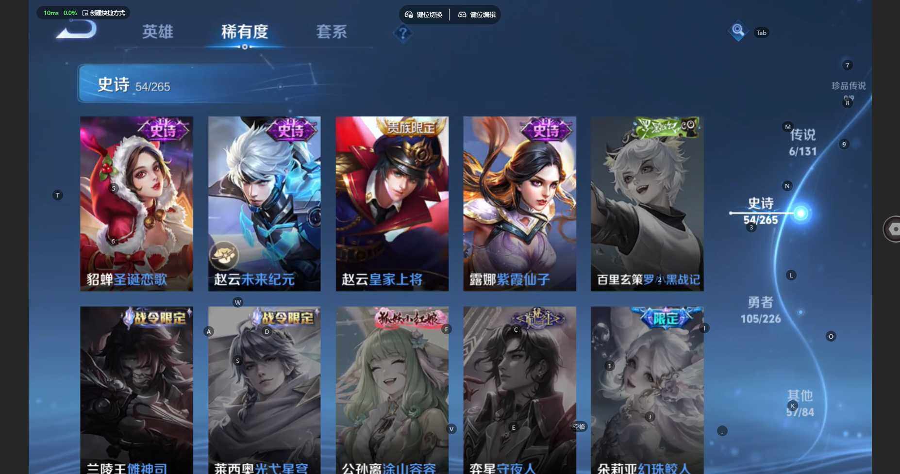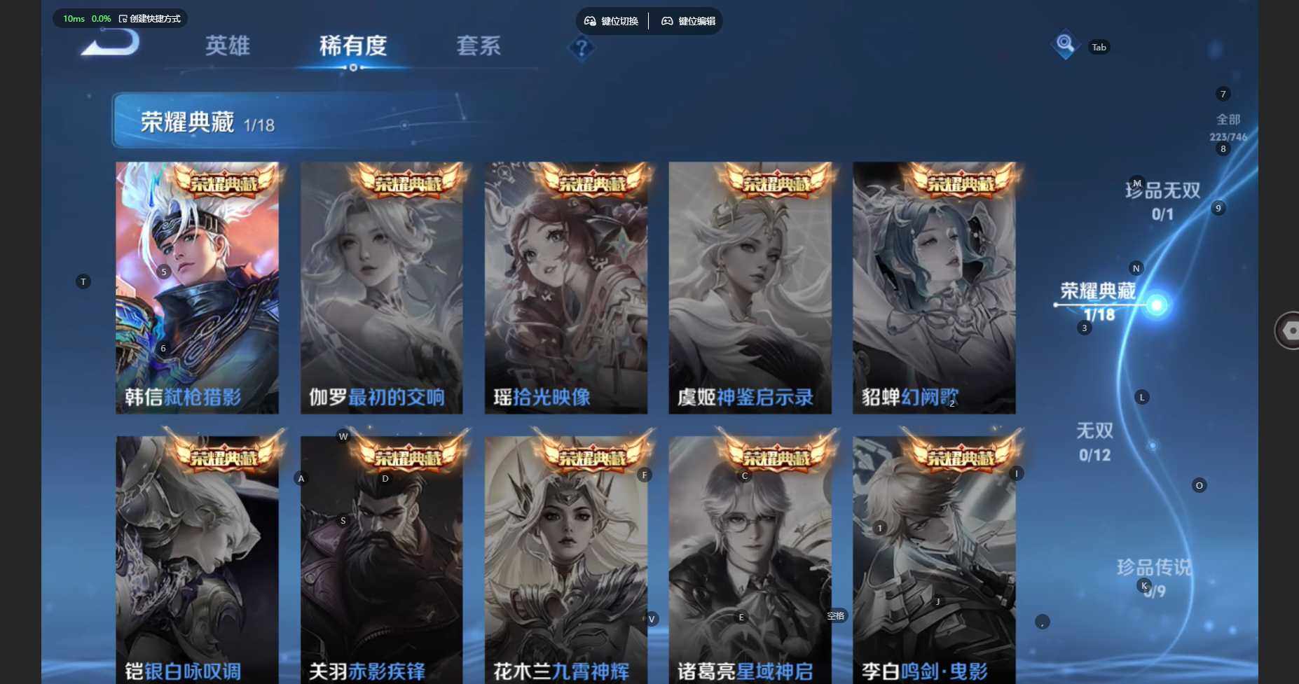 126英雄-223皮肤-苹果q-v7-最强王者段位-126英雄-223皮肤-1典藏皮肤-6传说-54史诗 【荣耀典藏】:韩信弑呛猎影 【传说皮肤】:后羿神树通天,澜愿照九州拓,小乔音你心动,干将莫邪久胜战神,虞姬云霓雀翎,狄仁杰超时空战士 【限定皮肤】:姜子牙天穹之誓,杨戬破阵退雄兵,狄仁杰阴阳师,赵云皇家上将,高渐离玩趣恶龙,元歌无心,马可波罗山海玄木吟,狄仁杰魔术师,达摩沙漠行僧,项羽海滩派对,兰陵王金庭之子,孙