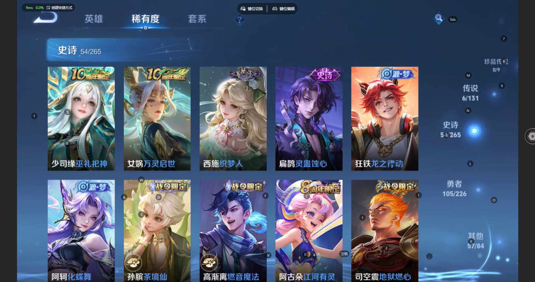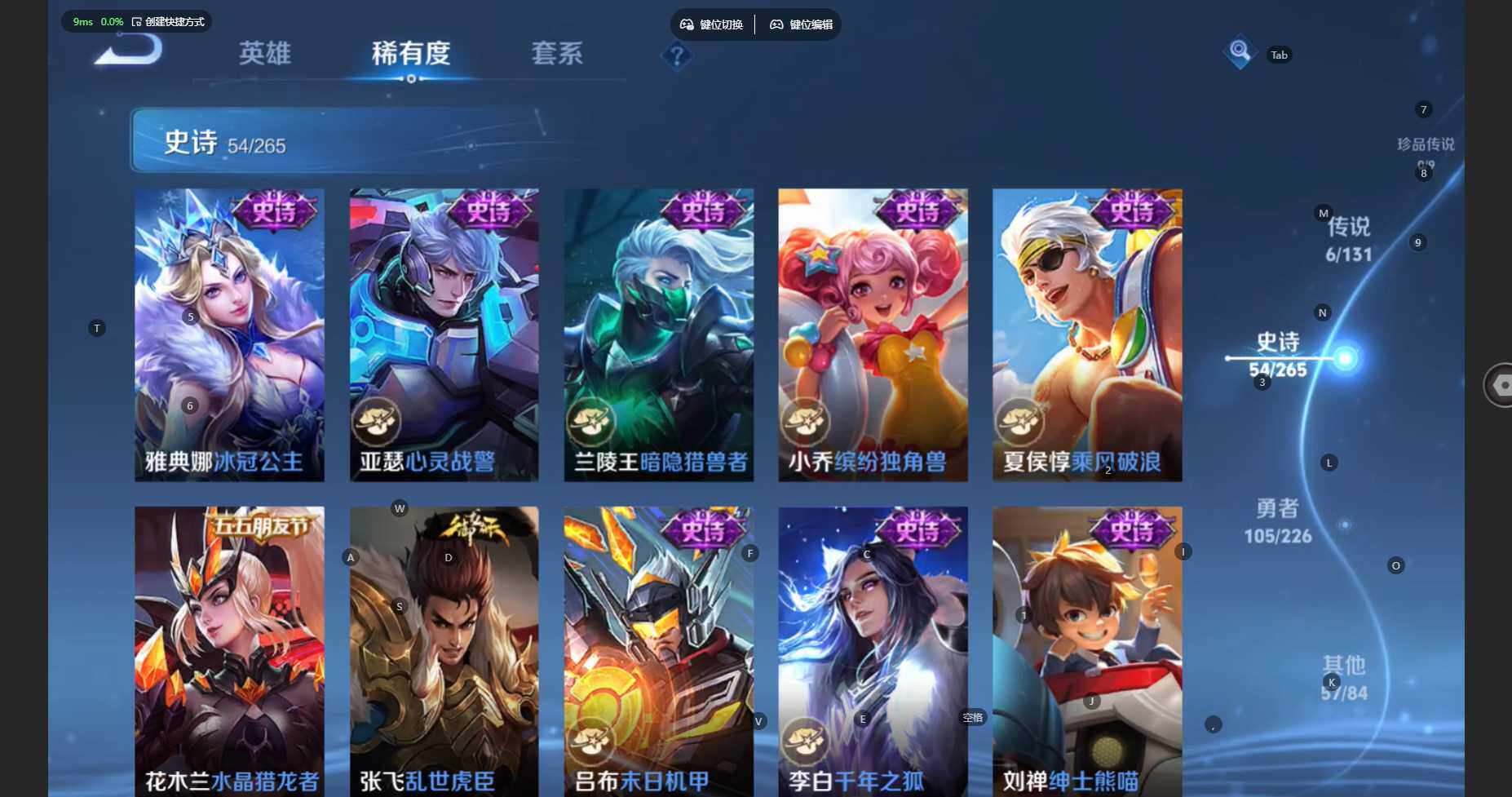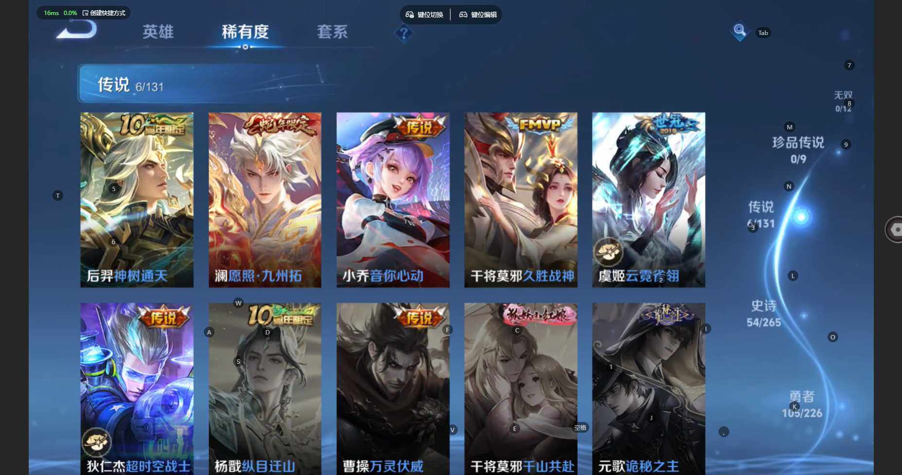 126英雄-223皮肤-苹果q-v7-最强王者段位-126英雄-223皮肤-1典藏皮肤-6传说-54史诗 【荣耀典藏】:韩信弑呛猎影 【传说皮肤】:后羿神树通天,澜愿照九州拓,小乔音你心动,干将莫邪久胜战神,虞姬云霓雀翎,狄仁杰超时空战士 【限定皮肤】:姜子牙天穹之誓,杨戬破阵退雄兵,狄仁杰阴阳师,赵云皇家上将,高渐离玩趣恶龙,元歌无心,马可波罗山海玄木吟,狄仁杰魔术师,达摩沙漠行僧,项羽海滩派对,兰陵王金庭之子,孙