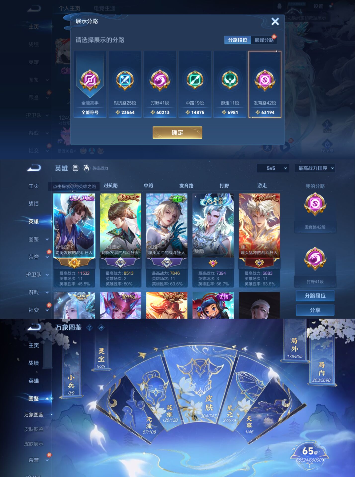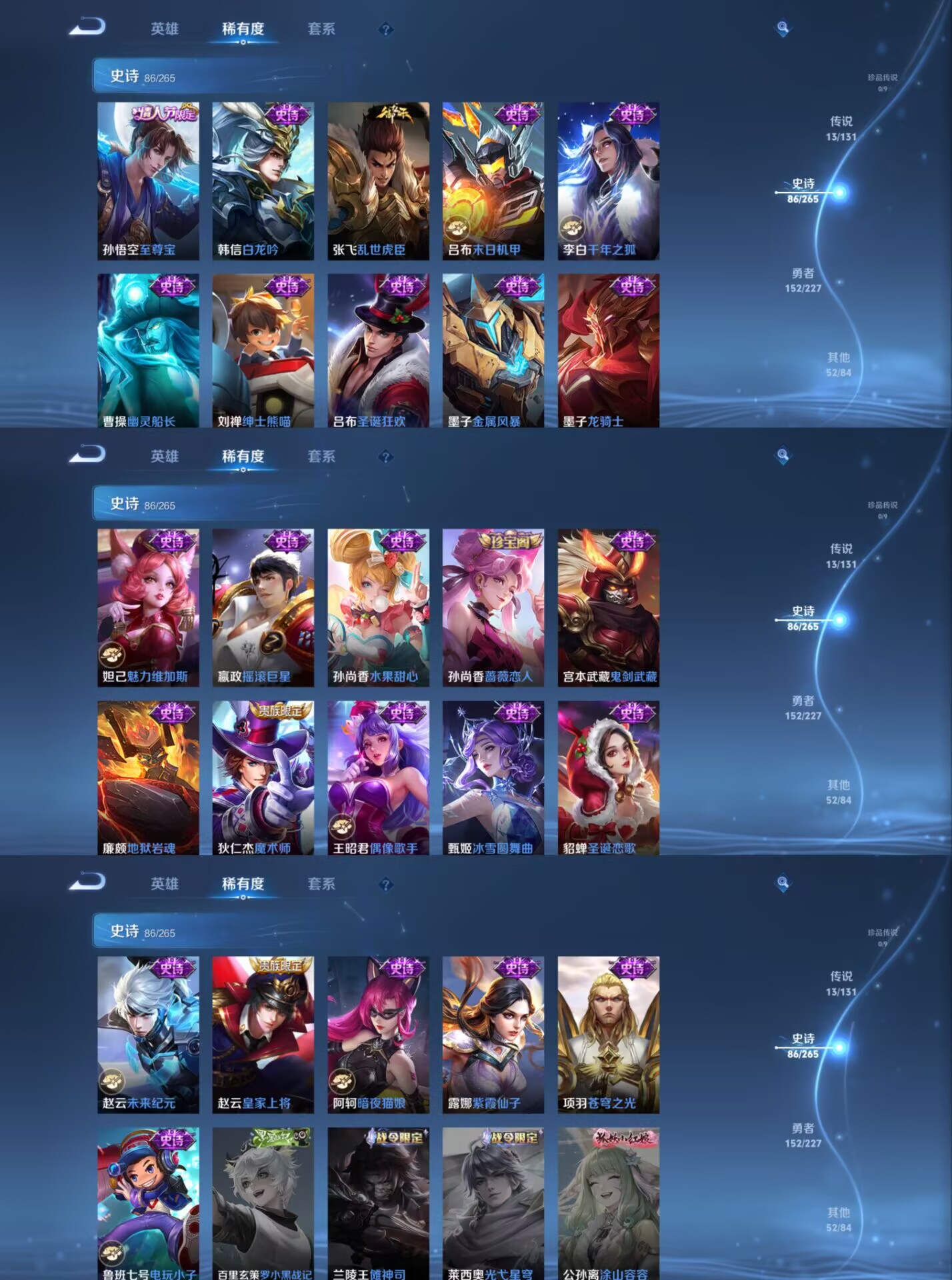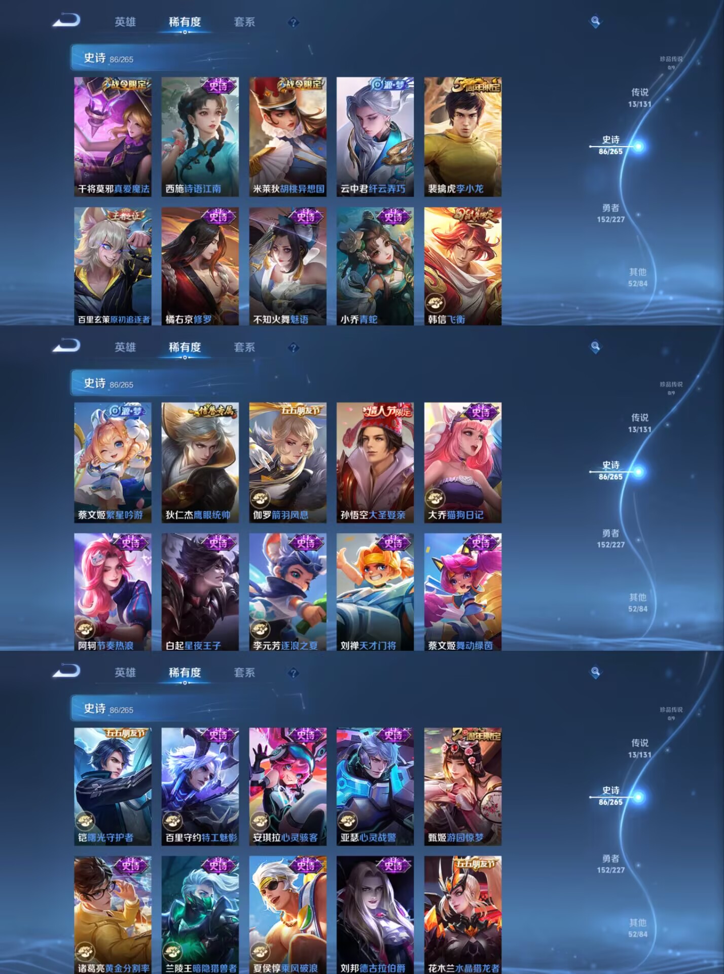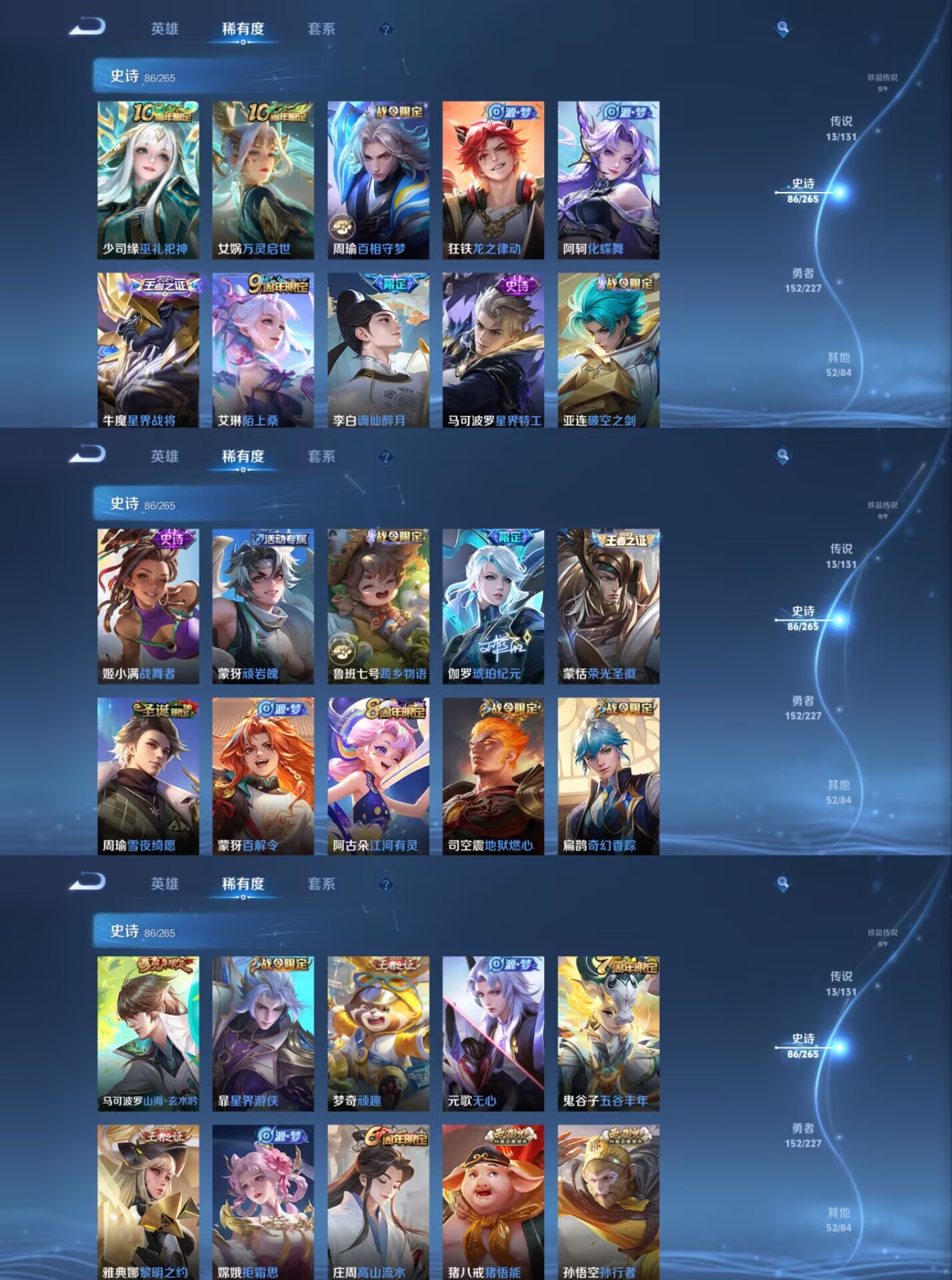 124英雄-304皮肤-【v7 传说13 典藏1 星传说2 幽冥之眼 未来机甲 万战金标孙悟空 发育42段打野41段】安卓q-304皮肤-124英雄 【典藏皮肤】 鸣剑·曳影 【传说皮肤】 鸣野蒿 霜月吟 逐花归海 神树通天 愿照·九州拓 齐天大圣 超时空战士 久胜战神 地狱之眼 冠军飞将 末日机甲 乞巧织情 音你心动 【史诗皮肤】 蔬乡物语 蔬乡物语 破空之剑 战舞者 星界战将 飞衡 电玩小子 大圣