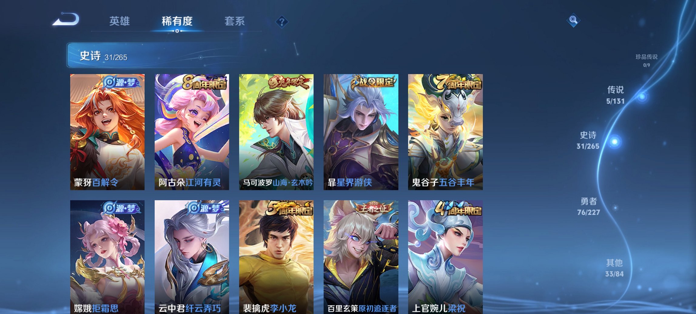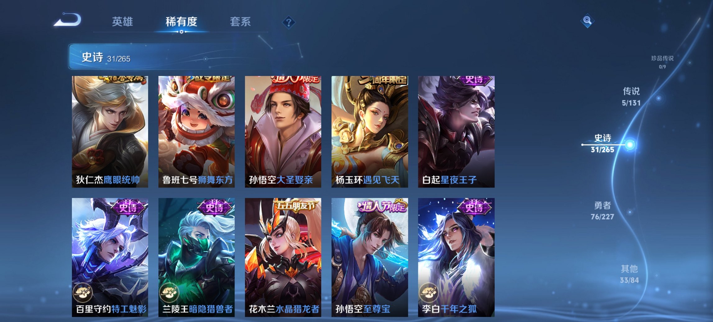 118英雄-145皮肤-【至尊宝5传说1星元1金标 秒换绑不用等】安卓qq-118英雄-145皮肤【星元皮肤】幽冥之眼【传说皮肤】云鹰飞将 山海·苍雷引 超时空战士 地狱之眼 末日机甲【史诗皮肤】至尊宝 江河有灵 天穹祈灯 星界游侠 山海·玄木吟 完美运算 百解令 拒霜思 女仆咖啡 魅力维加斯 魔术师 鹰眼统帅 圣诞恋歌 鬼剑武藏 水晶猎龙者 暗隐猎兽者 千年之狐 紫霞仙子 狮舞东方 圣诞狂欢 梁祝
