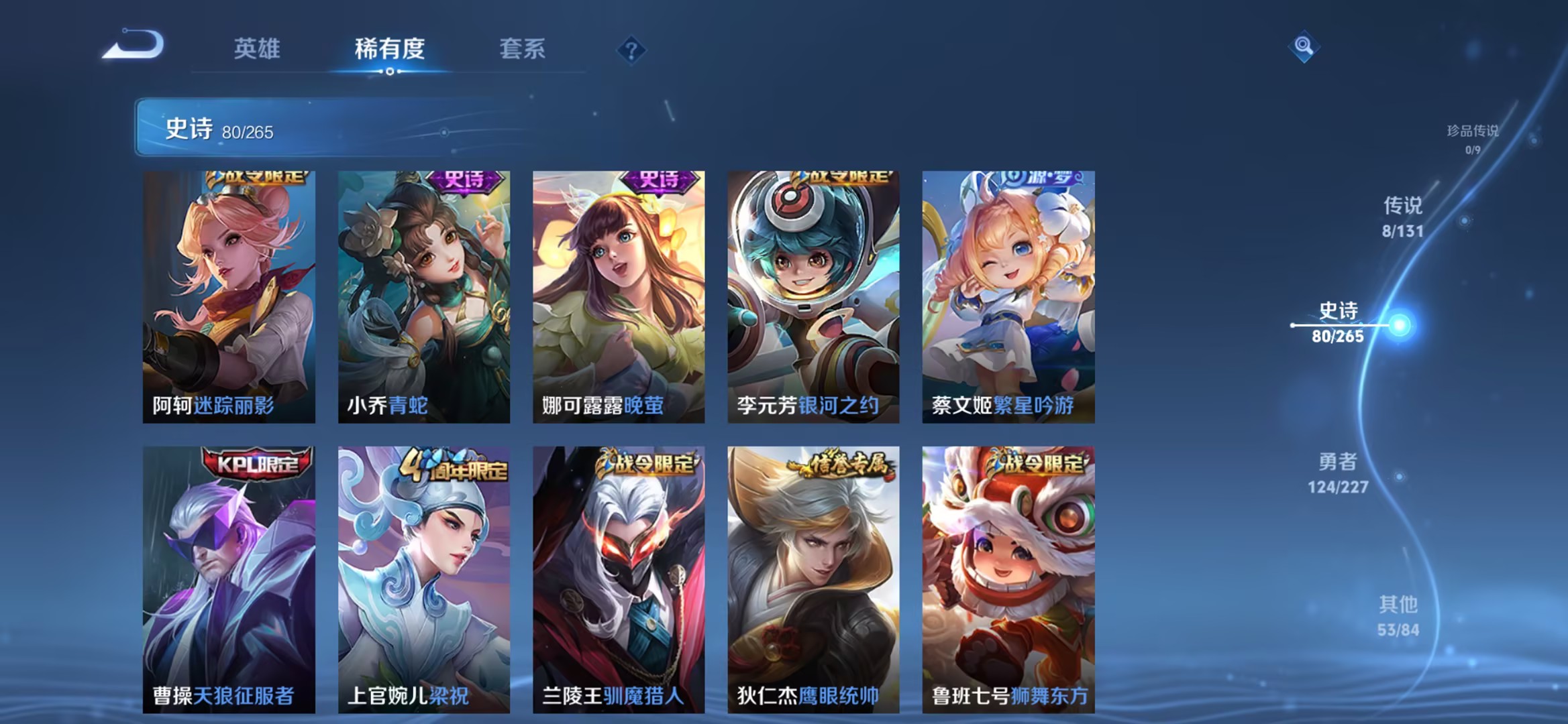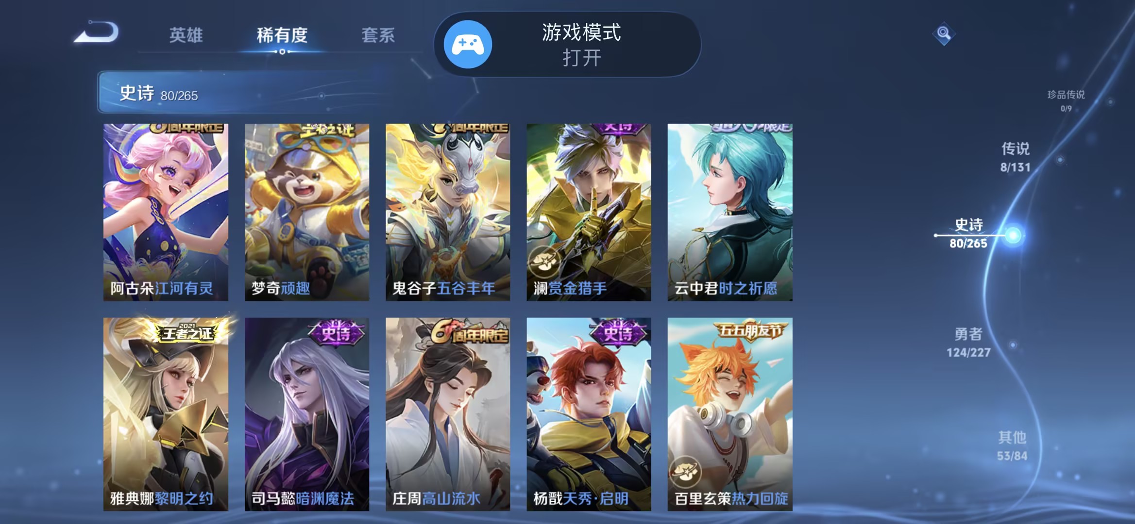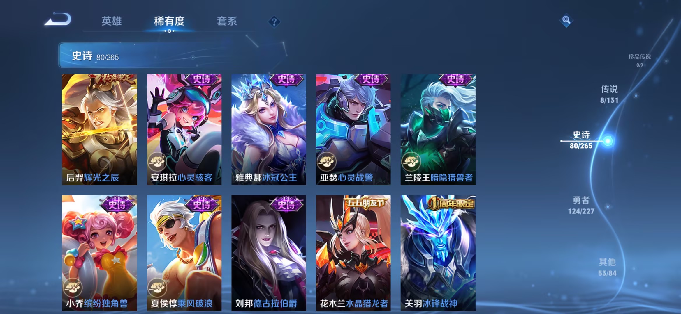125英雄-266皮肤-【266皮肤1水晶8传说1星元白虎志九州拓凤求凰一念神魔神威 秒换绑不用等】苹果qq-125英雄-266皮肤【1水晶】 鸣剑·曳影【星元皮肤】零号雷霆【传说皮肤】神树通天 白虎志 愿照·九州拓 鸣野蒿 凤求凰 一念神魔 寅虎·赤拳 零号·赤焰【史诗皮肤】冰锋战神 神威 鸭鸭历险记 星界战将 江河有灵 天穹祈灯 天穹之誓 石田雨龙 逆浪荇歌 炽弈燎原 破空之剑 东方月初 万物之道