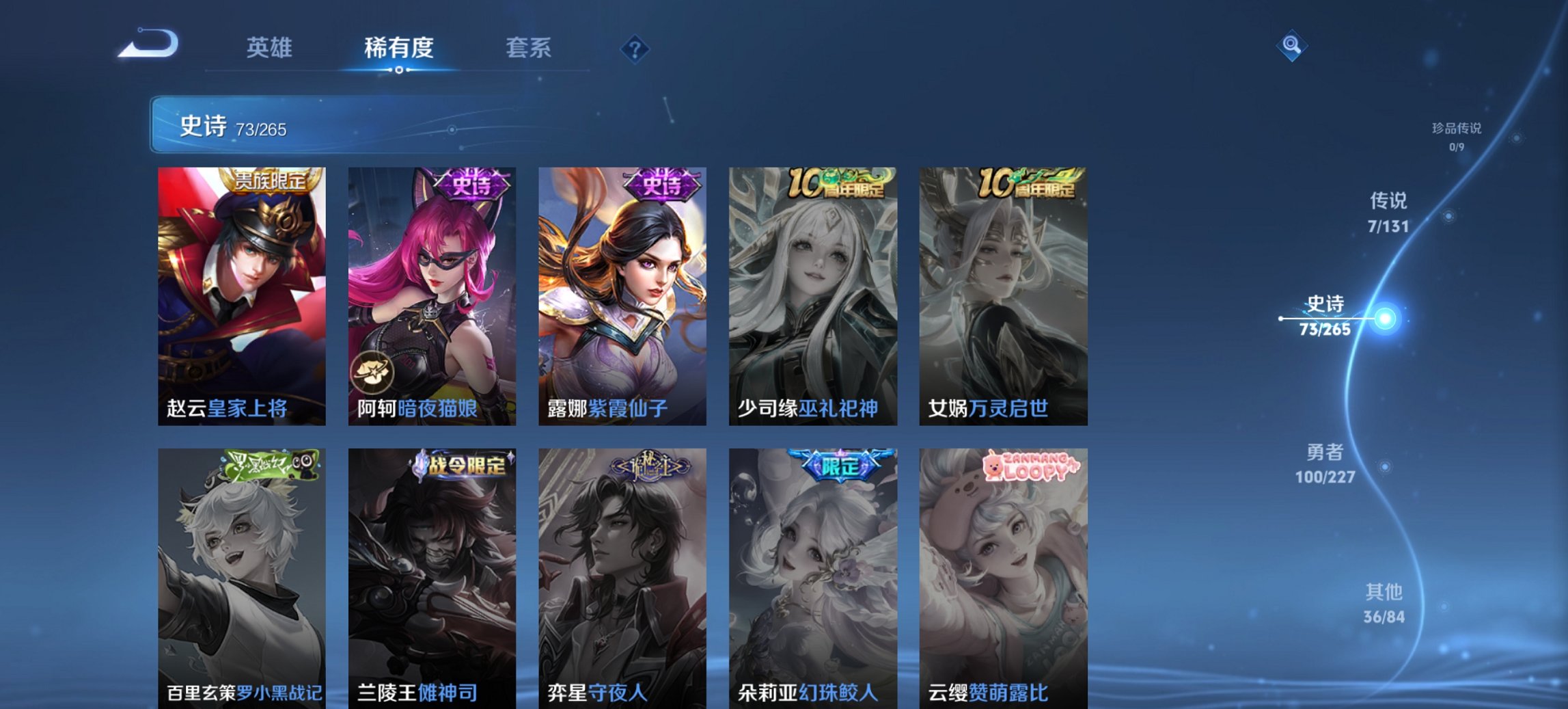 123英雄-217皮肤-【217皮肤1水晶7传说1星元白虎志岁时盈 秒换绑不用等】安卓qq-123英雄-217皮肤【1水晶】 星域神启【星元皮肤】时之思念【传说皮肤】白虎志 愿照·岁时盈 鸣野蒿 云鹰飞将 时之恋人 寅虎·瑞焰 幻光神呛【史诗皮肤】夏日便利店 龙之律动 天穹之誓 逐霄战戟 石田雨龙 逆浪荇歌 破空之剑 埋骨钱 茶境仙 百相守梦 器灵·浮梦炉 百相守梦 织梦人 涂山容容 青焰无极 幽灵船