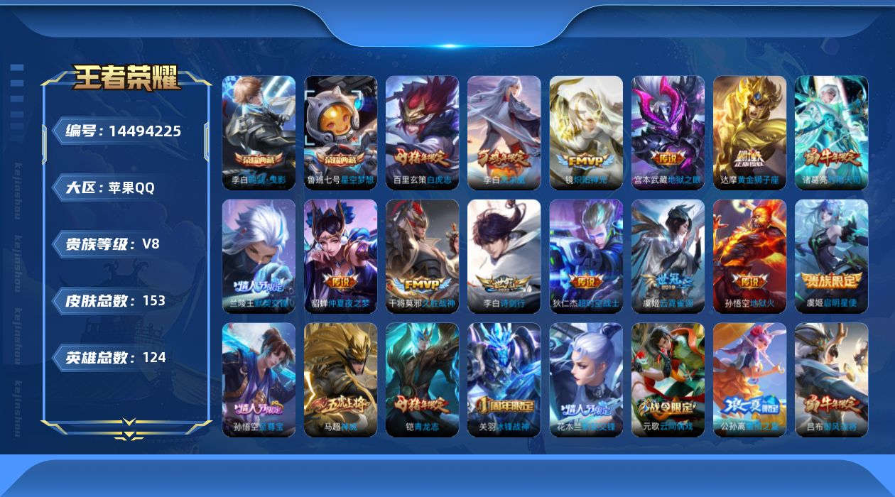[14494225]v8 2典藏 14传说 124英雄 153皮肤 可修改实名 【稀有英雄】:大司命嬴政始皇帝韩信韩跳跳夏洛特夏师傅艾琳橘右京橘子娜可露露鸟人不知火舞赵云金蝉唐僧戈娅 【荣耀水晶】:鸣剑·曳影星空梦想太空人 【传说皮】:黄金狮子座地狱火仲夏夜之梦大飞蛾地狱之眼云霓雀翎久胜战神炽阳神光超时空战士-狄仁杰 【赛季/战令皮】:古海寻踪s33海盐诗旅s30天穹祈灯s34妖精王s5炼金王s6凯尔特女王s7狰s8饕餮s9烛龙s10重明s11穷奇s12御狮s13御霄s14疑决卦s19醍醐杖s20原初探秘者s21万华元夜s22演武夺筹s23驱傩正仪s24千军破阵s25猎兽之王白昼王子潮玩骑士王云间偶戏沙漠行僧s26金庭之子s27大漠名商s28云中旅人s29 【史诗皮】:紫霞仙子白龙吟千年之狐冰冠公主晚萤猫狗日记-孙策乱世虎臣节奏热浪修罗水果甜心天才门将德古拉伯爵幽灵船长鬼剑武藏暗渊魔法地狱岩魂缤纷独角兽乘风破浪逐浪之夏水晶猎龙者金属风暴原初追逐者圣诞狂欢鹰眼统帅魅力维加斯黎明之约赏金猎手 【限定皮】:至尊宝白虎志电光耗子凤求凰白切鸡时雨天司水龙头神威电光马子遇见飞天诗剑行青龙志铠年限冰锋战神天狼运算者游园惊梦御风骁将吕布年限逐梦之翼奔雷神使牛魔年限李小龙逐梦之光默契交锋-兰陵王默契交锋-花木兰蜜橘之夏 【普通皮】:街头霸王威尼斯狂欢鬼谷子天穹祈灯s34万事如意五福同心龙腾万里花好人间归虚梦演-鲁班大师归虚梦演-曜归虚梦演-西施海滩派对皇家上将魔术师启明星使掌控之力守护之力敏锐之力化身博士万象初新大发明家哥特玫瑰阴阳师汉昭烈帝兔女郎死亡骑士少女阿狸忍·炎影丁香结白执事白色死神野性能量冰雪圆舞曲拳王玩偶对对碰爱与正义幻想奇妙夜阿尔法小队孤猎修竹墨客灼热之刃荷鲁斯之眼冰刃幻境伊势巫女花见巫女龙域领主第七人偶埃及法老异域舞娘潮流仙人星航指挥官激情绿茵精灵王死