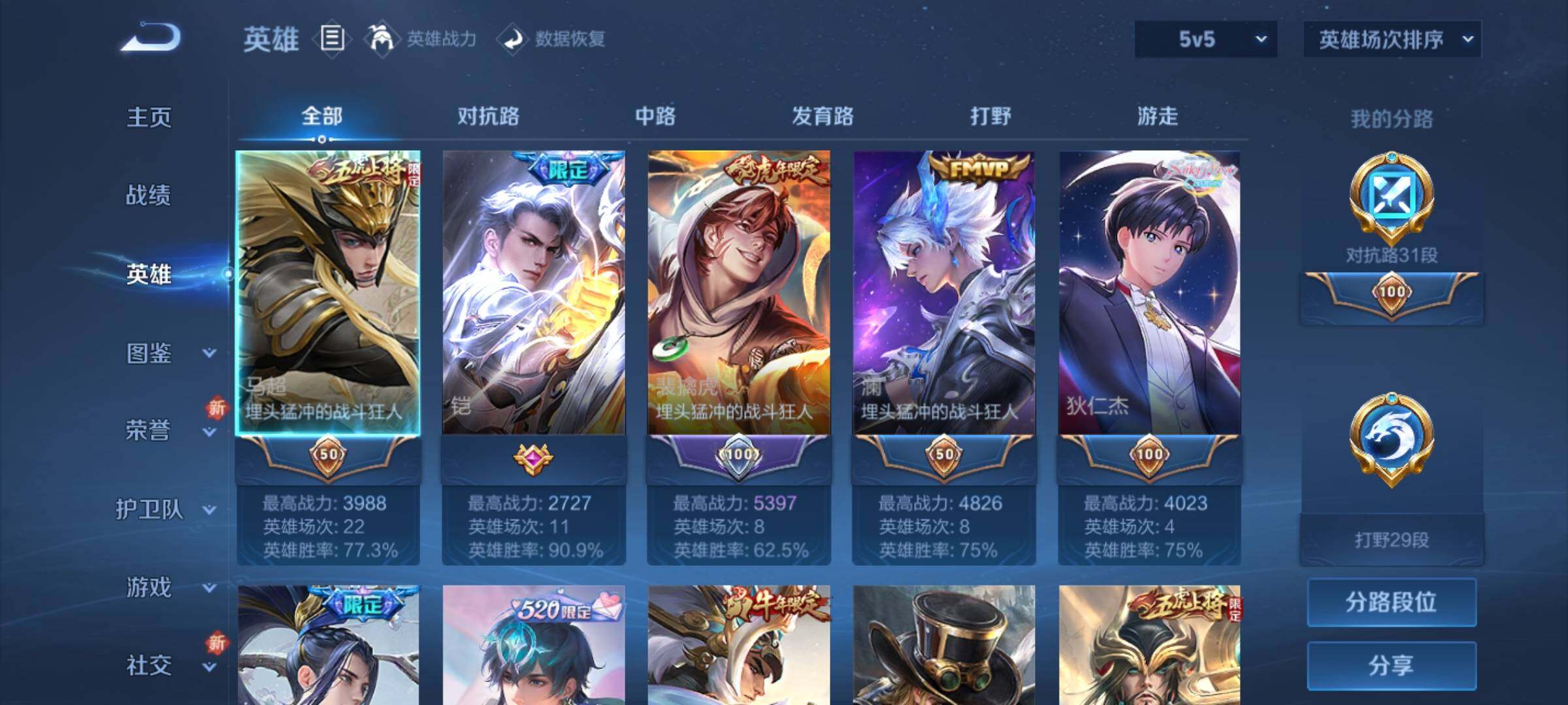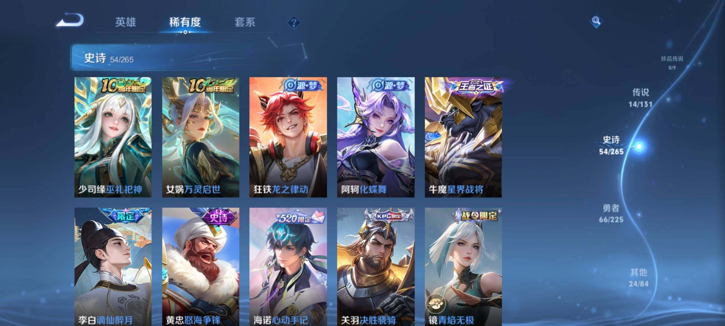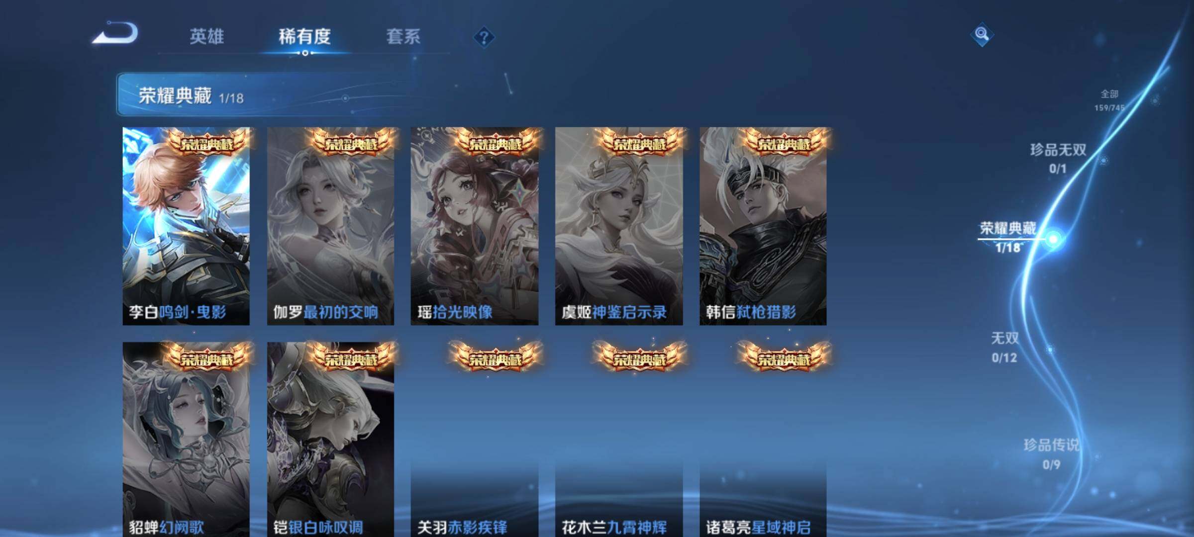 _2295229-wx-v8-最强王者段位安全保护中对抗路31段打野29段-118英雄-159皮肤-1典藏-14传说-54史诗 【英雄全皮】:海诺全皮 【荣耀典藏】:李白鸣剑曳影 【传说皮肤】:后羿神树通天,孙尚香乘龙问璇玑,孙策乘龙淬吴钩,马超琥珀纪元,铠琥珀纪元,澜逐花归海,狄仁杰夜礼服假面,张飞百相守梦,裴擒虎寅虎赤拳,赵云淬星耀世,虞姬启明星使,关羽武圣,刘备时之恋人,虞姬云霓雀翎 【限定皮肤】:姜子牙天穹之誓,杨戬破阵退雄兵,李白谪仙醉月,狄仁杰阴阳师,赵云皇家上将,扁鹊奇幻香踪,吕布御风骁将,元歌无心,甄姬落雪兰心,典韦岱宗,马可波罗逐梦之星,狄仁杰魔术师,达摩星际陆战队,项羽海滩派对,关羽武圣,关羽百相守梦,韩信傲雪梅呛,孙悟空孙行者,刘备百相守梦,张飞百相守梦,李元芳云中旅人,虞姬启明星使,杨戬潮玩骑兵,鬼谷子五谷丰年,裴擒虎李小龙,裴擒虎寅虎赤拳,裴擒虎擒涛扼浪,云中君纤云弄巧,嫦娥拒霜思,西施玲珑珍味,鲁班大师探海日志,桑启海盐诗旅,艾琳流音漫舞,司空震地狱燃心,阿古朵江河有灵,张良古海寻踪,狄仁杰夜礼服假面,蒙犽百解令,蒙恬荣光圣徽,高渐离燃音魔法,妲己灵卜魔法,鬼谷子天穹祈灯,铠琥珀纪元,马超琥珀纪元,姬小满妄想食味,孙尚香乘龙问璇玑,孙策乘龙淬吴钩,鲁班七号蔬乡物语,李元芳蔬乡物语,刘邦剑破天穹,程咬金群星魔术团,关羽决胜骁骑,镜青焰无极,项羽苍威无极,海诺心动手记,周瑜熔金海岸 【年限皮肤】:裴擒虎寅虎赤拳,吕布御风骁将,典韦岱宗,马超神威,关羽武圣,孙尚香乘龙问璇玑,孙策乘龙淬吴钩 【赛季限定】:张良古海寻踪,李元芳云中旅人,裴擒虎擒涛扼浪,鲁班大师探海日志,桑启海盐诗旅,鬼谷子天穹祈灯,蒙恬荣光圣徽,刘邦剑破天穹,姜子牙天穹之誓 【战令限定】:扁鹊奇幻香踪,甄姬落雪兰心,达摩星际陆战队,艾琳流音漫舞,杨戬潮玩骑兵,西施玲珑珍味,司空震地狱燃心,高渐离燃音魔法,妲己灵卜魔法,鲁班七号蔬乡物语,李元芳蔬乡物语,镜青焰无极,项羽苍威无极 【史诗皮肤】:赵云皇家上将,甄姬冰雪圆舞曲,王昭君偶像歌手,狄仁杰魔术师,廉颇地狱岩魂,宫本武藏鬼剑武藏,孙尚香水果甜心,妲己魅力维加斯,妲己女仆咖啡,墨子金属风暴,吕布圣诞狂欢,曹操幽灵船长,花木兰水晶猎龙者,刘邦德古拉伯爵,兰陵王暗隐猎兽者,诸葛亮黄金分割率,马可波罗逐梦之星,雅典娜冰冠公主,百里守约特工魅影,