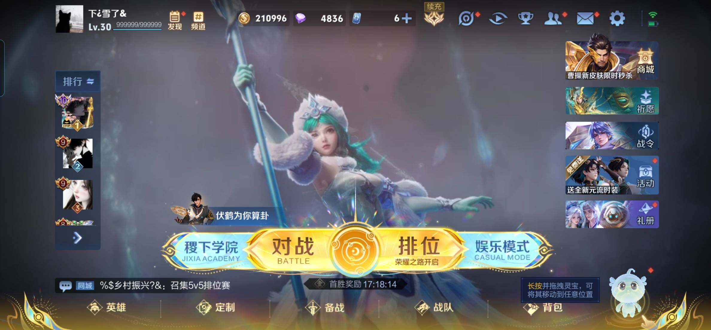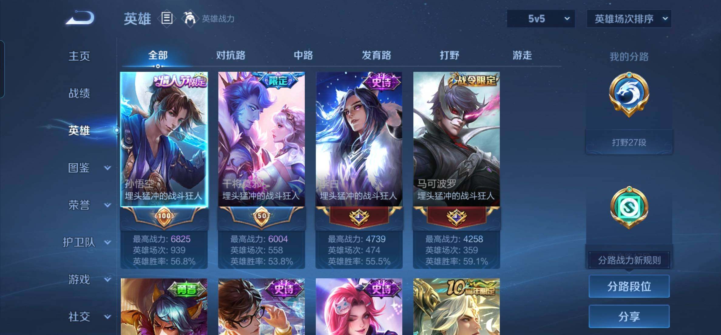 _2298084-q-v6-最强王者段位-125英雄-209皮肤-4传说-63史诗 【传说皮肤】:后羿神树通天,桑启鸣野蒿,宫本武藏地狱之眼,孙悟空地狱火 【限定皮肤】:白起狰,姜子牙天穹之誓,杨戬破阵退雄兵,狄仁杰阴阳师,虞姬凯尔特女王,赵云皇家上将,孙尚香蔷薇恋人,鲁班七号狮舞东方,庄周蜃楼王,庄周高山流水,高渐离玩趣恶龙,孙膑妖精王,扁鹊炼金王,芈月重明,周瑜赤莲之焰,夏侯惇朔风刀,甄姬游园惊梦,曹操烛龙,典韦穷奇,马可波罗暗影游猎,狄仁杰魔术师,狄仁杰万华元夜,达摩沙漠行僧,项羽海滩派对,老夫子醍醐杖,程咬金演武夺筹,兰陵王驯魔猎人,兰陵王金庭之子,孙悟空至尊宝,孙悟空大圣娶亲,牛魔御旌,李元芳银河之约,李元芳云中旅人,钟馗神迹守卫,钟馗驱傩正仪,杨玉环遇见飞天,干将莫邪冰霜恋舞曲,雅典娜黎明之约,蔡文姬繁星吟游,太乙真人饕餮,鬼谷子原初探秘者,鬼谷子五谷丰年,百里玄策原初追逐者,弈星混沌棋,梦奇顽趣,沈梦溪星空之诺,沈梦溪大漠名商,明世隐疑决卦,裴擒虎李小龙,裴擒虎擒涛扼浪,狂铁御狮,米莱狄御霄,云中君纤云弄巧,盾山御銮,猪八戒西部大镖客,猪八戒猪悟能,上官婉儿梁祝,上官婉儿天狼绘梦者,嫦娥拒霜思,鲁班大师探海日志,桑启海盐诗旅,阿古朵江河有灵,张良古海寻踪,蒙恬荣光圣徽,鬼谷子天穹祈灯,刘邦剑破天穹,程咬金群星魔术团,周瑜熔金海岸 【赛季限定】:庄周蜃楼王,孙膑妖精王,扁鹊炼金王,白起狰,芈月重明,夏侯惇朔风刀,曹操烛龙,典韦穷奇,狄仁杰万华元夜,达摩沙漠行僧,老夫子醍醐杖,程咬金演武夺筹,兰陵王金庭之子,张良古海寻踪,牛魔御旌,李元芳云中旅人,虞姬凯尔特女王,钟馗驱傩正仪,雅典娜黎明之约,太乙真人饕餮,鬼谷子原初探秘者,百里玄策原初追逐者,弈星混沌棋,梦奇顽趣,沈梦溪大漠名商,明世隐疑决卦,裴擒虎擒涛扼浪,狂铁御狮,米莱狄御霄,盾山御銮,鲁班大师探海日志,桑启海盐诗旅,鬼谷子天穹祈灯,蒙恬荣光圣徽,刘邦剑破天穹,姜子牙天穹之誓 【战令限定】:鲁班七号狮舞东方,周瑜赤莲之焰,马可波罗暗影游猎,兰陵王驯魔猎人,李元芳银河之约,钟馗神迹守卫,沈梦溪星空之诺,猪八戒西部大镖客 【史诗皮肤】:露娜紫霞仙子,赵云皇家上将,赵云未来纪元,貂蝉圣诞恋歌,甄姬冰雪圆舞曲,狄仁杰魔术师,廉颇地狱岩魂,宫本武藏鬼剑武藏,孙尚香蔷薇恋人,孙尚香水果甜心,妲己魅力维加斯,妲己女仆咖啡,墨子