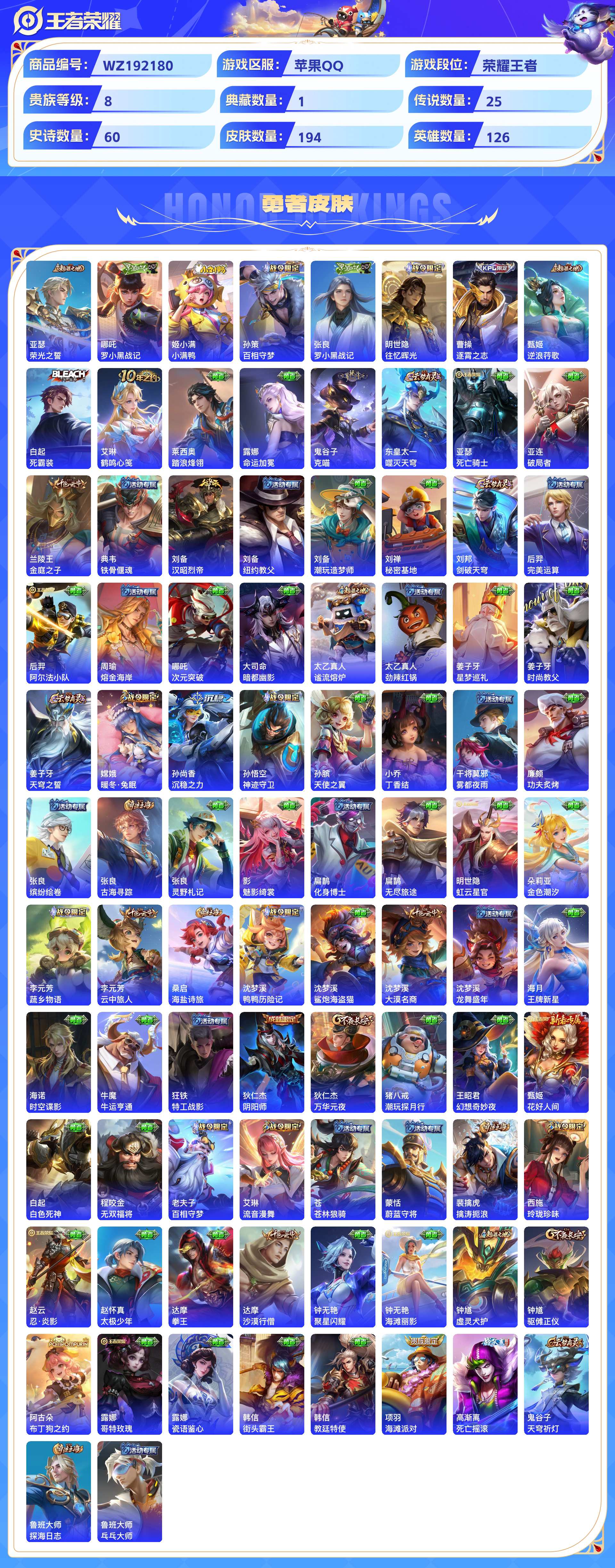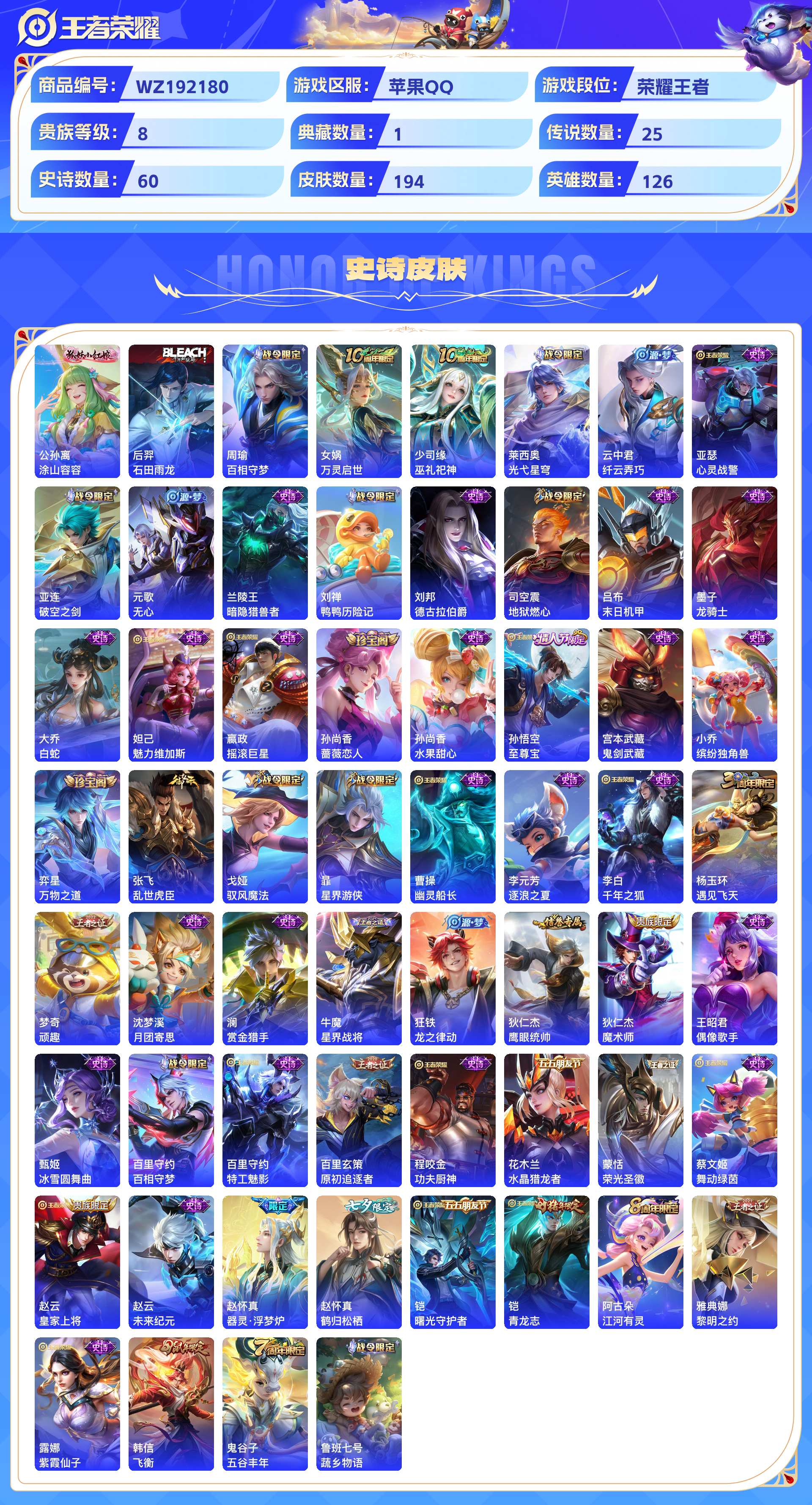 _2301010-苹果qq194皮贵族8级1典藏3珍品传说2无双25传说60史诗【荣耀典藏】弑呛猎影【珍品传说】黑崎一护怪盗基德江户川柯南【无双限定】神罪碎月剑心【传说皮肤】神树通天幻光神呛影龙天霄战鼓燎原时之恋人遇见神鼓曦玄引玄雷天君地狱之眼画中仙山海·苍雷引诗剑行鸣野蒿金乌负日愿照·九州拓电玩·雷克斯启明星使愿照·岁时盈祥瑞亨通曦玄引乘龙·铭钟鼎黄金狮子座炽阳神光霜月吟无双飞将【史诗皮肤】涂山容容石田雨龙百相守梦万灵启世巫礼祀神光弋星穹纤云弄巧心灵战警破空之剑无心暗隐猎兽者鸭鸭历险记德古拉伯爵地狱燃心末日机甲龙骑士白蛇魅力维加斯摇滚巨星蔷薇恋人水果甜心至尊宝鬼剑武藏缤纷独角兽万物之道乱世虎臣驭风魔法星界游侠幽灵船长逐浪之夏千年之狐遇见飞天顽趣月团寄思赏金猎手星界战将龙之律动鹰眼统帅魔术师偶像歌手冰雪圆舞曲百相守梦特工魅影原初追逐者功夫厨神水晶猎龙者荣光圣徽舞动绿茵皇家上将未来纪元器灵·浮梦炉鹤归松栖曙光守护者青龙志江河有灵黎明之约紫霞仙子飞衡五谷丰年蔬乡物语【勇者皮肤】荣光之誓罗小黑战记小满鸭百相守梦罗小黑战记往忆晖光逐霄之志逆浪荇歌死霸装鹤鸣心笺踏浪烽翎命运加冕克喵噬灭天穹死亡骑士破局者金庭之子铁骨偃魂汉昭烈帝纽约教父潮玩造梦师秘密基地剑破天穹完美运算阿尔法小队熔金海岸次元突破暗都幽影谧流熔炉劲辣红锅星梦巡礼时尚教父天穹之誓暖冬·兔眠沉稳之力神迹守卫天使之翼丁香结雾都夜雨功夫炙烤缤纷绘卷古海寻踪灵野札记魅影绮裳化身博士无尽旅途虹云星官金色潮汐蔬乡物语云中旅人海盐诗旅鸭鸭历险记鲨炮海盗猫大漠名商龙舞盛年王牌新星时空谍影牛运亨通特工战影阴阳师万华元夜潮玩探月行幻想奇妙夜花好人间白色死神无双福将百相守梦流音漫舞苍林狼骑蔚蓝守将擒涛扼浪玲珑珍味忍·炎影太极少年拳王沙漠行僧聚星闪耀海滩丽影虚灵犬护驱傩正仪布丁狗之约哥特玫瑰瓷语鉴心街头霸王教廷特使海滩派对死亡摇滚天穹祈灯探海日志乓乓大师【其他皮肤】午夜歌剧院启蛰踏雪寻梅画中游孤猎绝影神呛创世神祝剑舞者秩序猎龙将前尘生化警戒战争女神幸存者