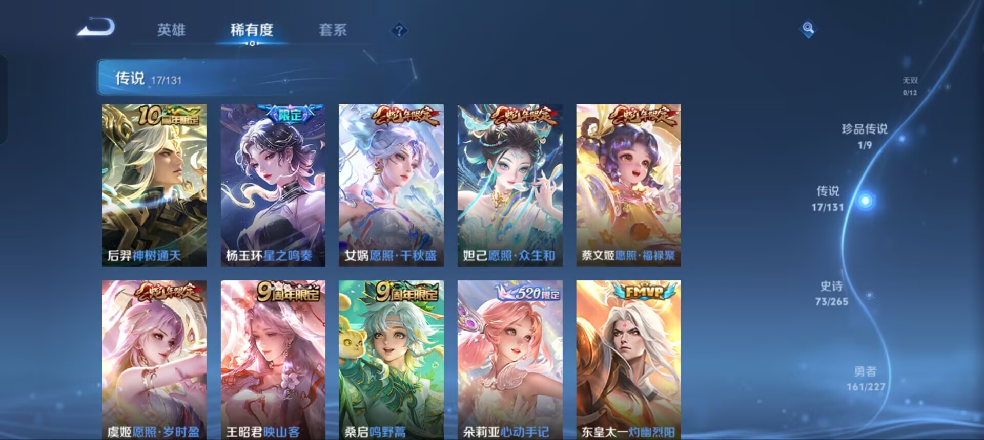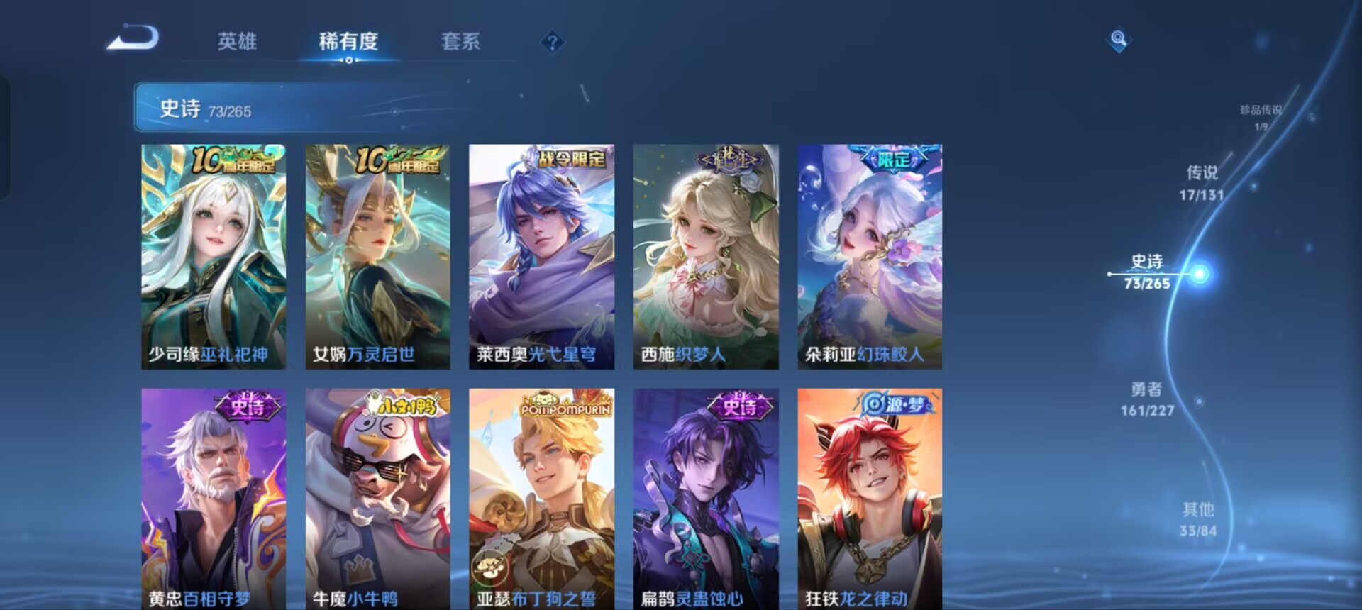 txwz23722(v8漂亮女号 瑶皮肤多多缺无双缺星元满皮)286皮瑶典藏 瑶珍品 瑶情人节 朵利亚情人节 小乔兔年限定 大乔花嫁 蔡文姬花朝如约 蔡文姬蛇年 女娲蛇年 妲己蛇年 王昭君周年限定 虞姬蛇年 杨玉环传说限定 朵利亚鲛人【1典藏1珍品17传说73史诗112限定夺宝幸运值210抽】 水晶(拾光映像 )1珍品(大耳狗之梦) 17传说(神树通天,启明星使,久胜战神,星之鸣奏,愿照·千秋盛,愿照·岁时盈,愿照·众生和,愿照·福禄聚,映山客,鸣野蒿,心动手记,灼幽烈阳,山海·琳琅生,挚爱花嫁,花朝如约,时之祈愿,寅虎·瑞焰)史诗限定(织梦人,幻珠鲛人,布丁狗之誓,茶境仙,陌上桑,夏日便利店,乘龙·聚宝船,江河有灵,匿光侦查者,山海·碧波行,无心,匿光决锋者,奇遇舞章,玉兔公主,寅虎·展翼,拒霜思,天狼运算者,遇见神鹿,缤纷独角兽,时之彼端,繁星吟游)