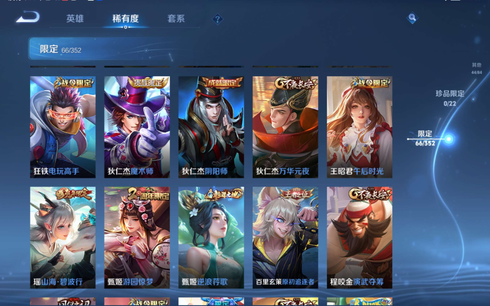 126英雄-217皮肤-124英雄-217皮肤-v7-217皮肤1典藏8传说 游走42段 中路40段 2星传说 未来机甲 金色仲夏夜 【全皮英雄】 海诺全皮 鬼谷子全皮 海月全皮 【典藏】 武则天 【传说】 心动手记朵莉亚 金乌负日 鸣野蒿 山海琳琅生 游龙清影 乞巧织情 仲夏夜之梦 花朝如约 【热门】山海碧波行 逐梦之音 魔法小厨娘 热情桑巴 冰冠公主 原初追逐者 梁祝 暗夜猫娘 诗语江南 龙骑士