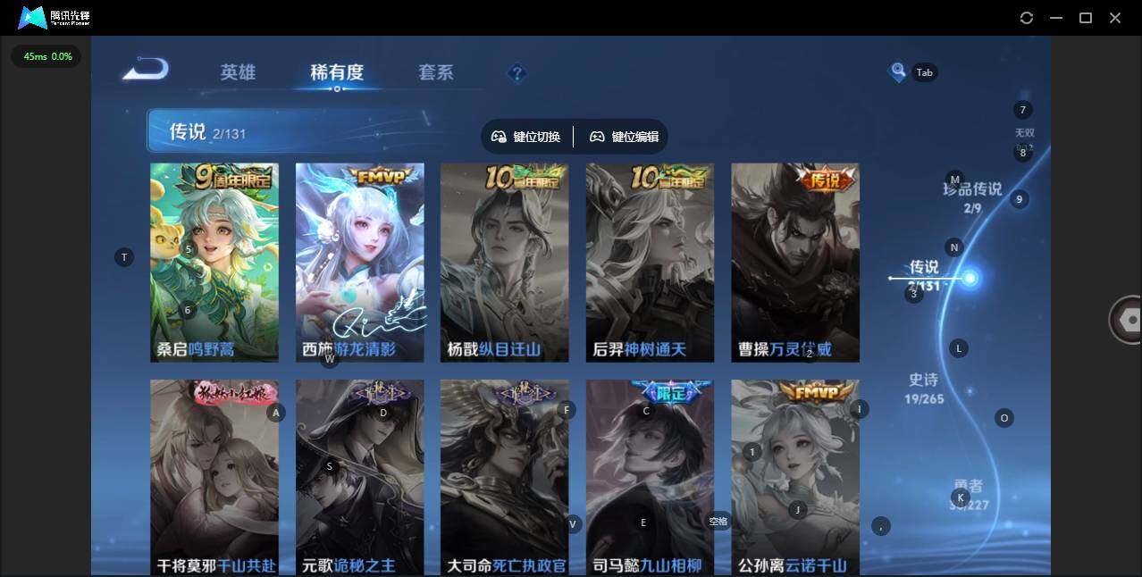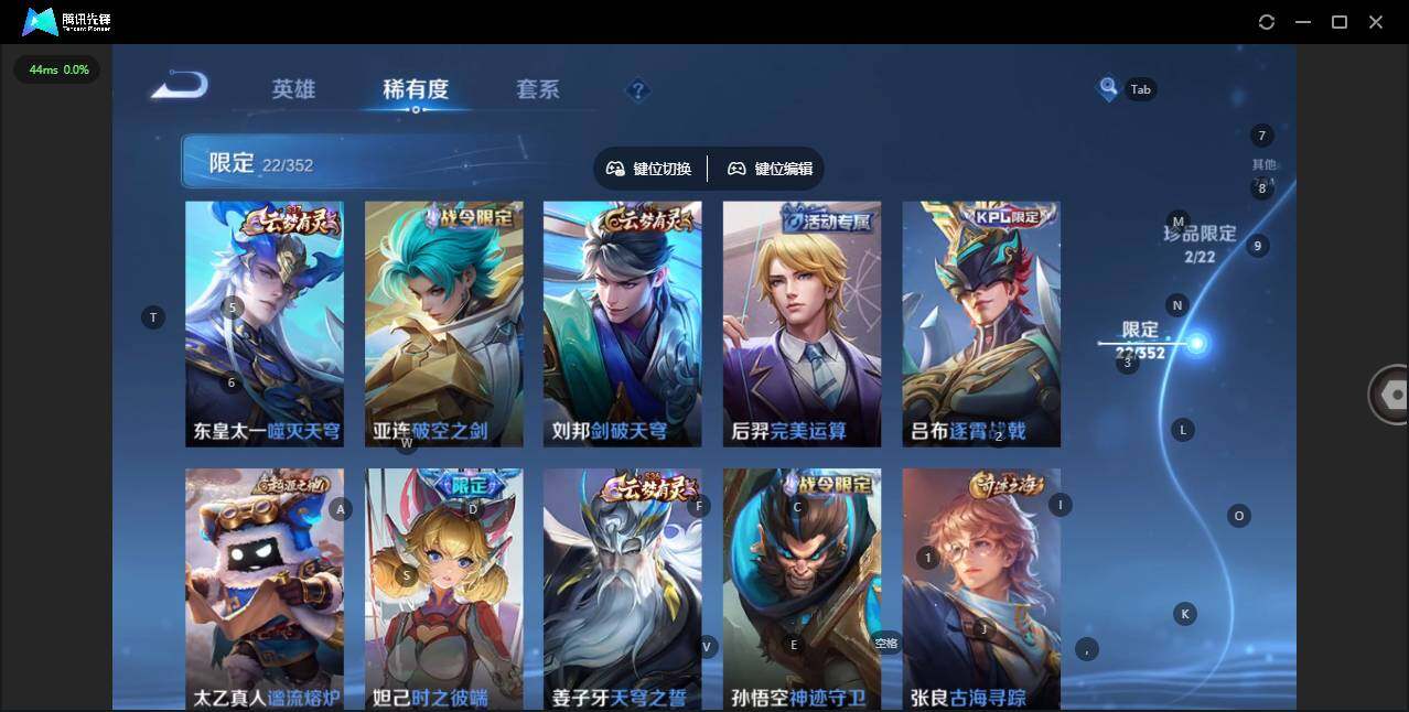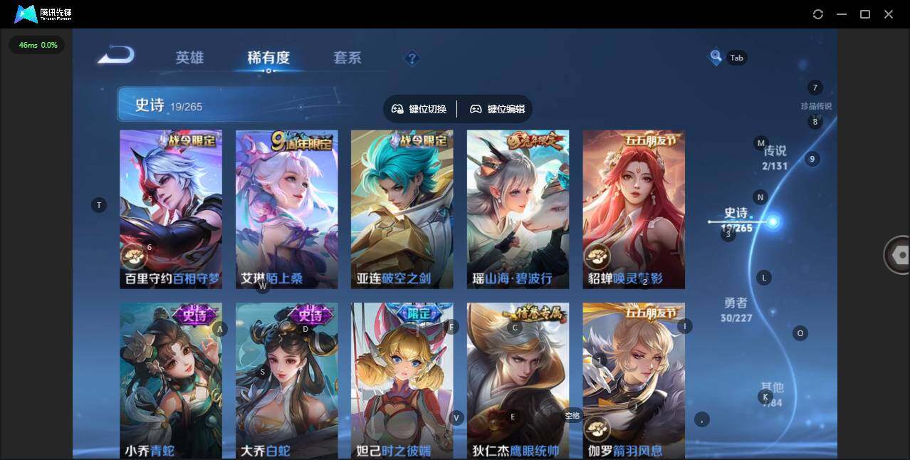 2295299-实名: 可修改 贵族等级: v4 英雄数: 95 皮肤数: 60 珍品传说: 江户川柯南怪盗基德 传说皮: 游龙清影 限定皮: 时之彼端山海·碧波行鸣野蒿陌上桑逐霄战戟