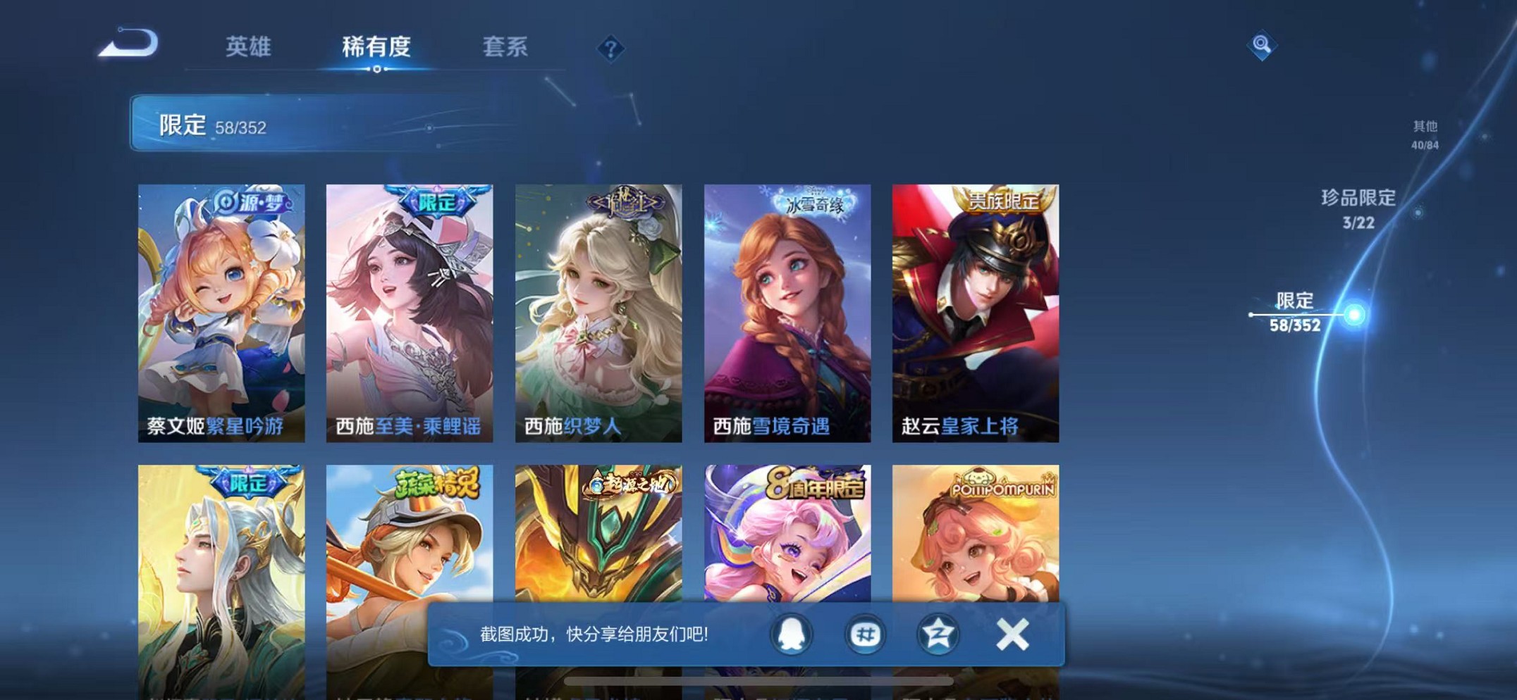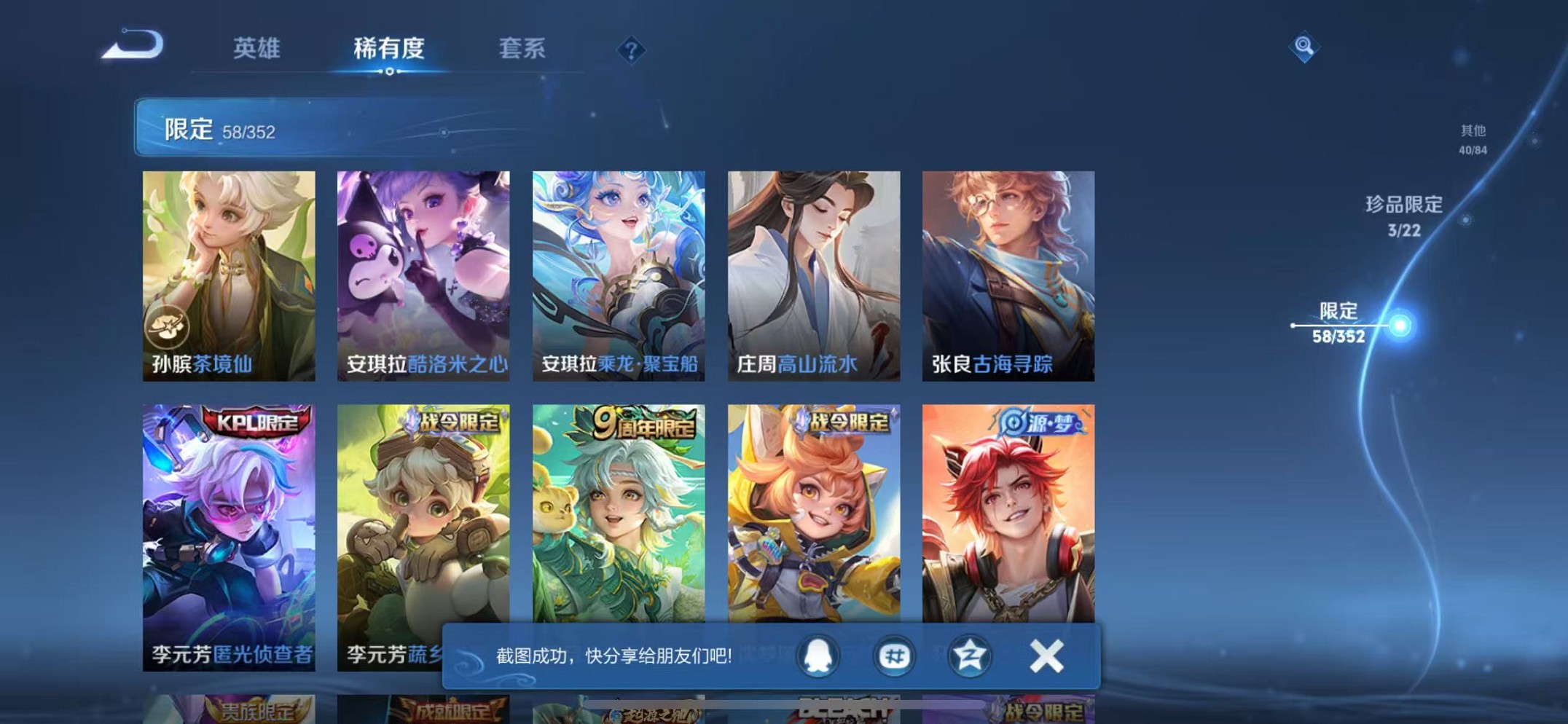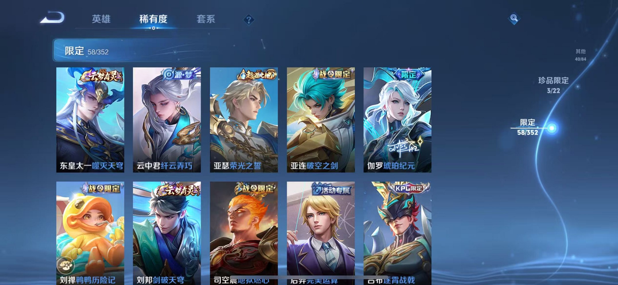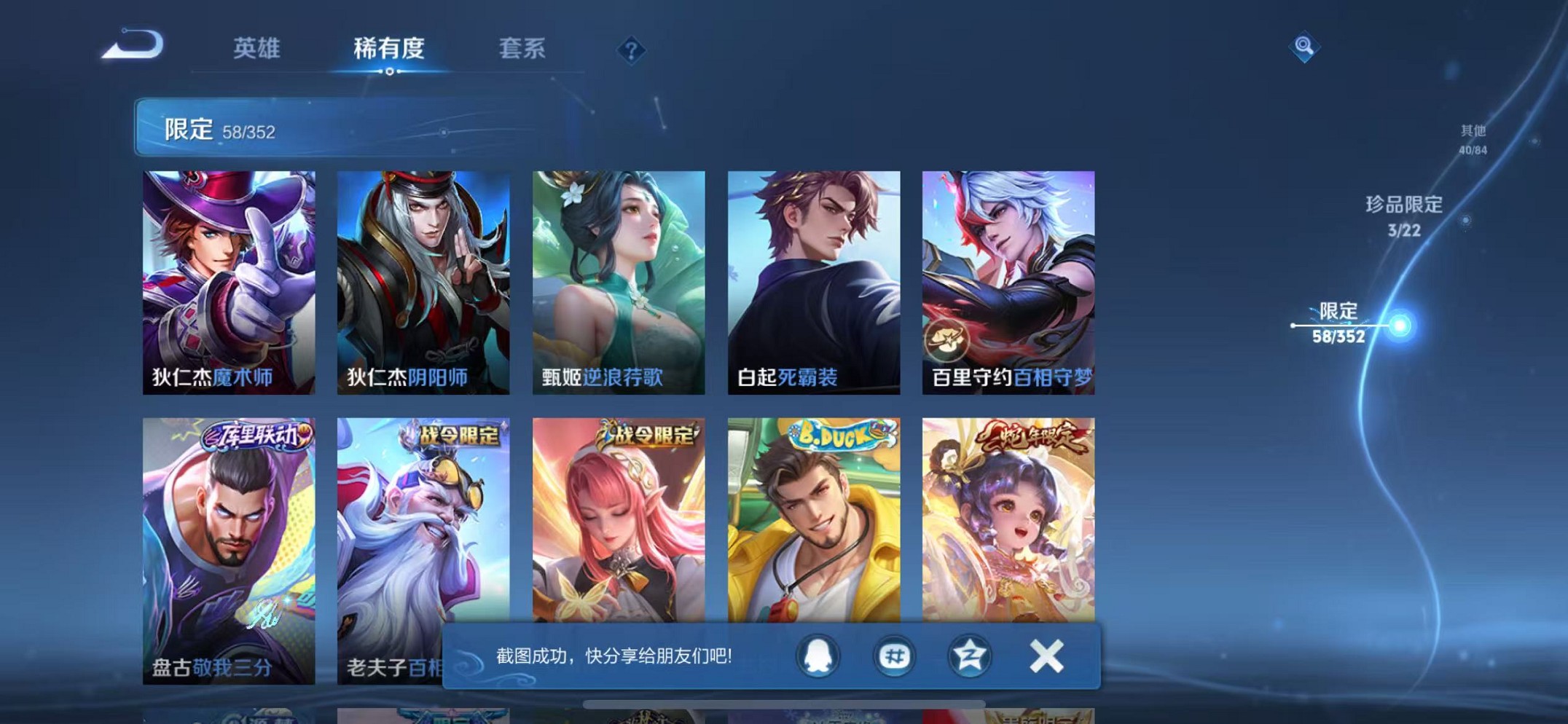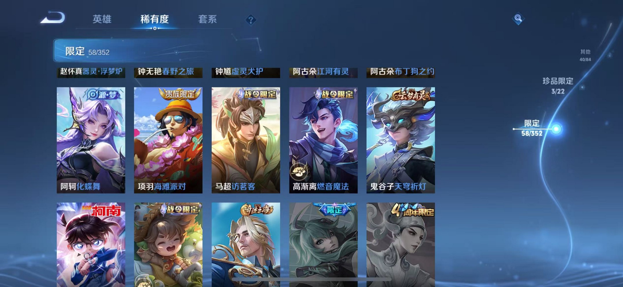 【女号 218皮肤1典藏1无双7传说2珍品 可秒换绑】苹果q-127英雄【1水晶】星域神启【1无双】真我赫兹【7传说】至美·乘鲤谣 鸣野蒿 愿照·众生和 愿照·福禄聚 花朝如约 黄金射手座 游龙清影【2珍宝传说】酷洛米之心 江户川柯南【45史诗】万灵启世 龙之律动 百相守梦 乘龙·聚宝船 琥珀纪元 器灵·浮梦炉 蔬乡物语 热力回旋 幽灵船长 繁星吟游 女仆咖啡 魅力维加斯 猫狗