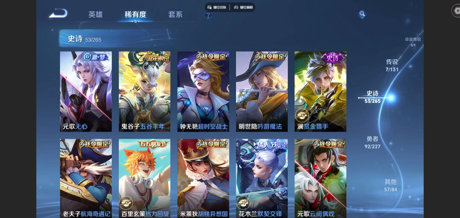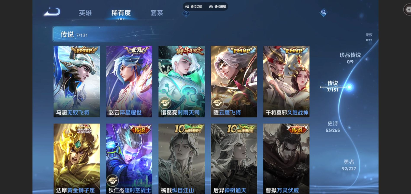 119英雄-210皮肤-121英雄-210皮肤v7-7传说【传说】时雨天司 淬星耀世 无双飞将 云鹰飞将 久胜战神 黄金狮子座 超时空战士男 【热门】时雨天司 飞衡 天狼狩猎者 默契交锋女 猎兽之王 蓝屏警告 神迹守卫钟馗 狮舞东方 朔望之晖 星空之诺 银河之约 暗影游猎 梁祝 狂想玩偶喵 云间偶戏 苍穹之光 龙骑士 原初探秘者 李小龙 暗隐猎兽者 金属风暴 白昼王子 热力回旋 特工魅影 曙光守护