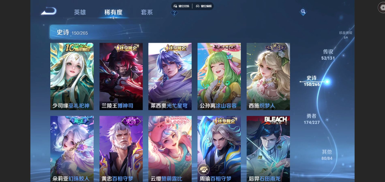 128英雄-470皮肤-126英雄-470皮肤v10-5典藏6无双3珍品传说52传说 6星传说 寅虎焰心 幽冥火 幽冥之眼 星际治安官 未来机甲 金色仲夏夜 【全皮英雄】 司空震全皮 暃全皮 少司缘全皮 黄忠全皮 海诺全皮 鬼谷子全皮 刘邦全皮 钟馗全皮 猪八戒全皮 司马懿全皮 桑启全皮 戈娅全皮 【典藏】 最初的交响 武则天 无限飓风号 天鹅之梦 九霄神辉 【无双】 神罪 天机白泽 雪境奇遇 花