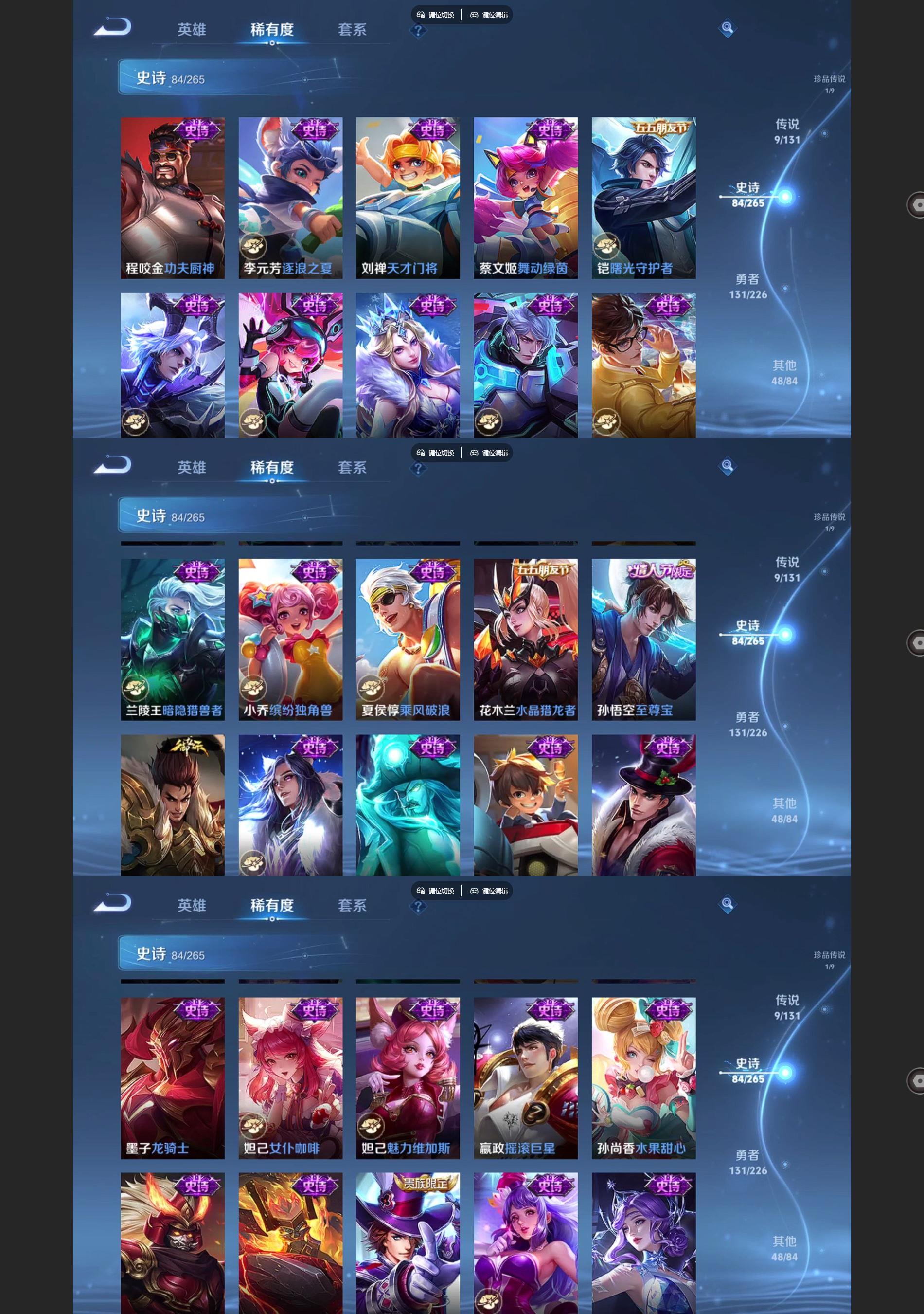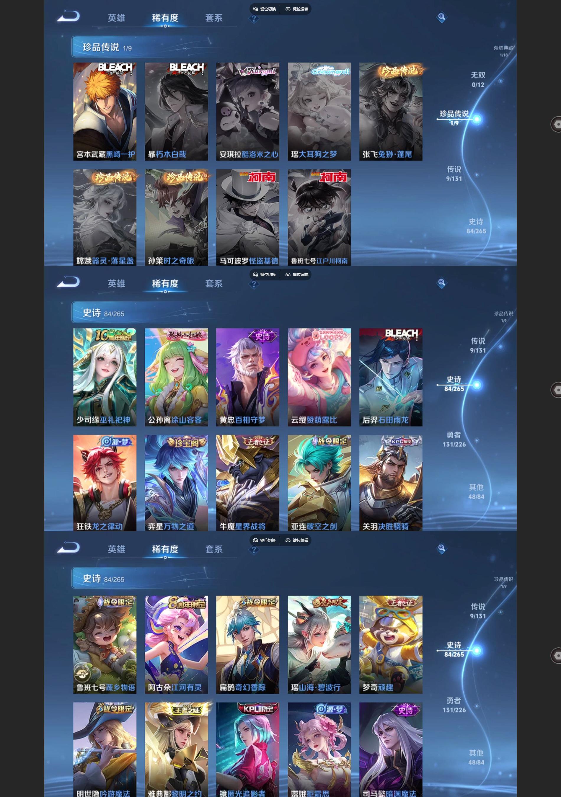 2282185-苹果q-v7-274皮肤1典藏1珍品传说9传说1星元84史诗99限定3645紫星币 【典藏】 弑呛猎影 【珍品传说】 黑崎一护 【星元】 幽冥之眼 【传说】 神树通天 愿照九州拓 鸣野蒿 游龙清影 挚爱之约 猫影幻舞 久胜战神 黄金射手座 地狱之眼 【热门】巫礼祀神 涂山容容 神威 至尊宝 山海碧波行 天狼溯光者 白鹤梁神女 大圣娶亲 冰霜恋舞曲 拒霜思 匿光追