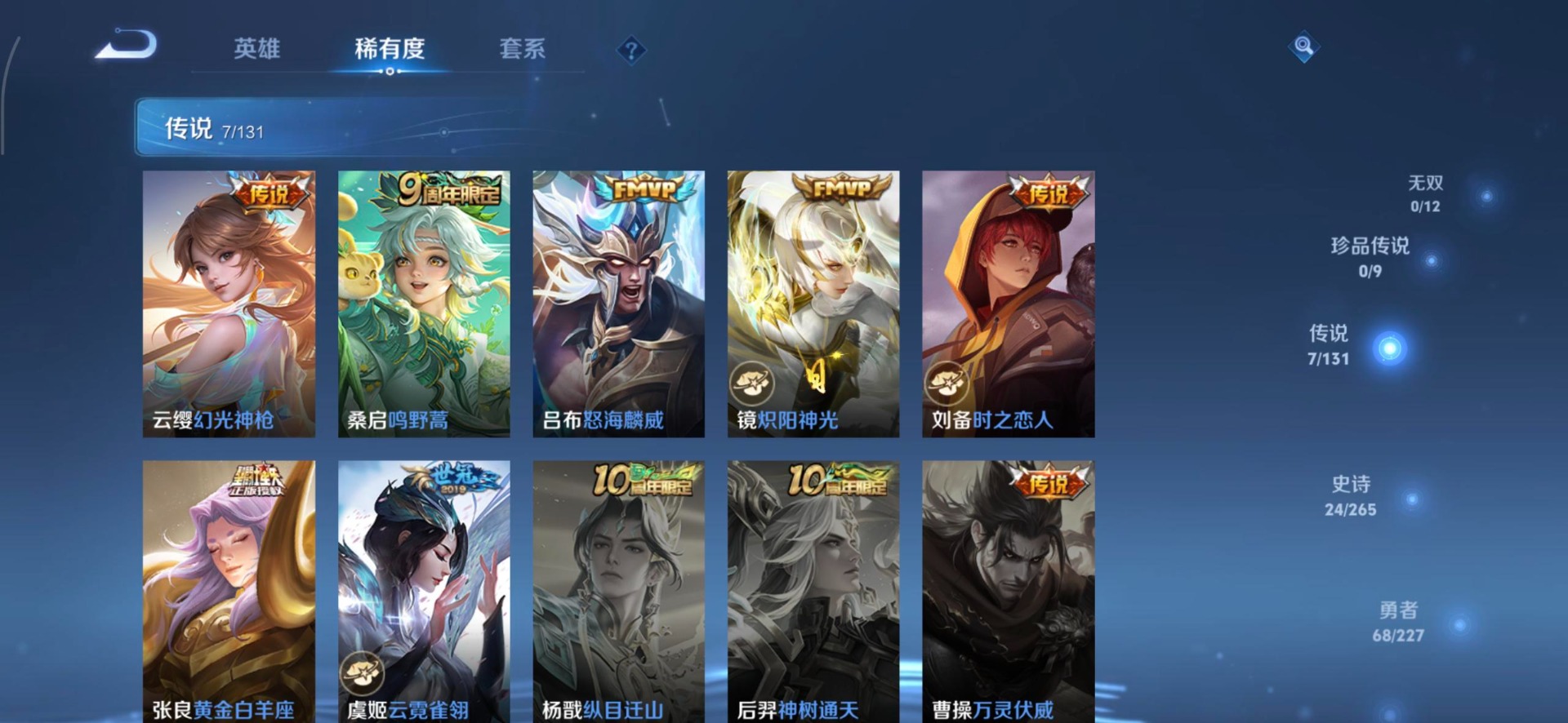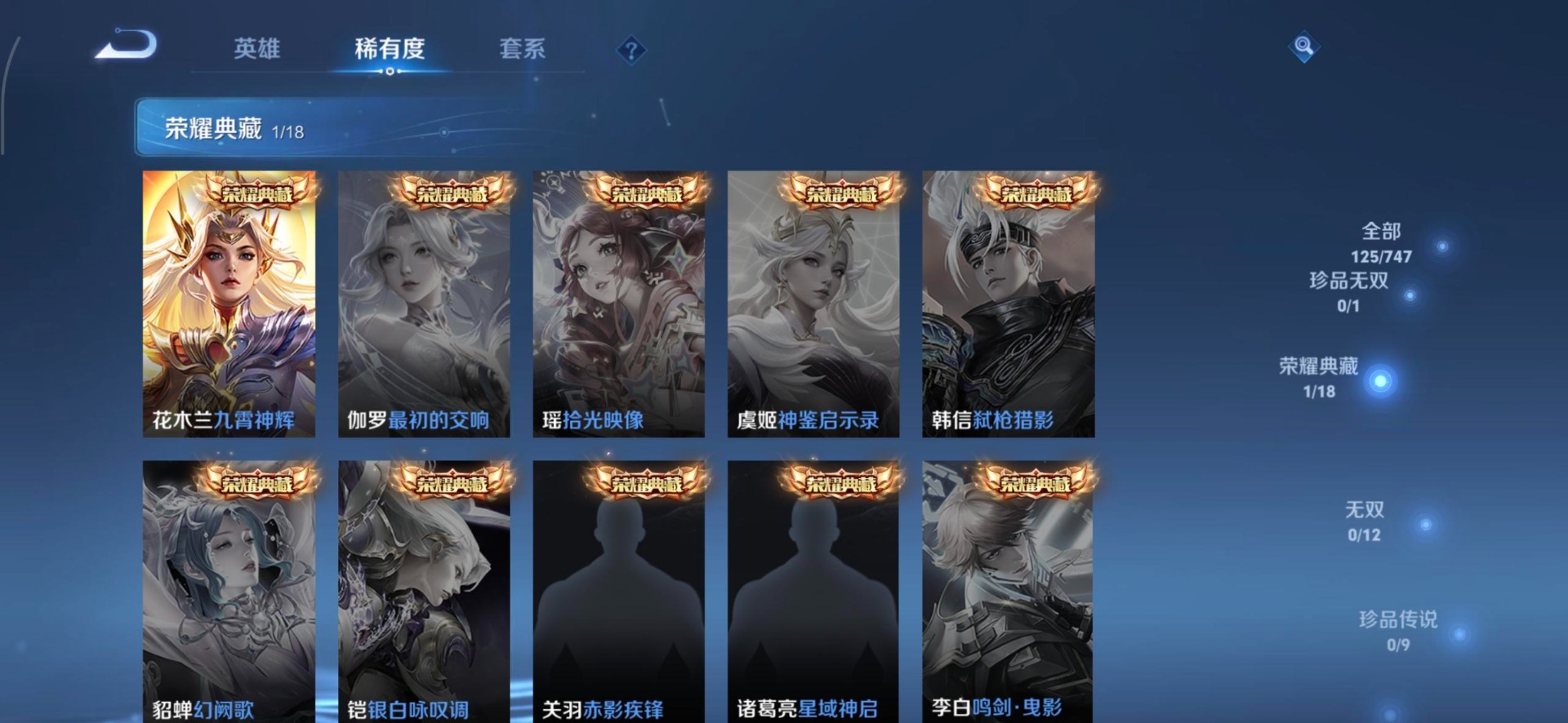 125英雄-125皮肤-v6 1典藏 7传说 125英雄 125皮肤 可修改实名 【稀有英雄】:大司命韩信韩跳跳夏洛特夏师傅艾琳橘右京橘子娜可露露鸟人不知火舞赵云金蝉唐僧戈娅 【荣耀水晶】:九霄神辉木兰典藏 【传说皮】:幻光神呛黄金白羊座云霓雀翎炽阳神光